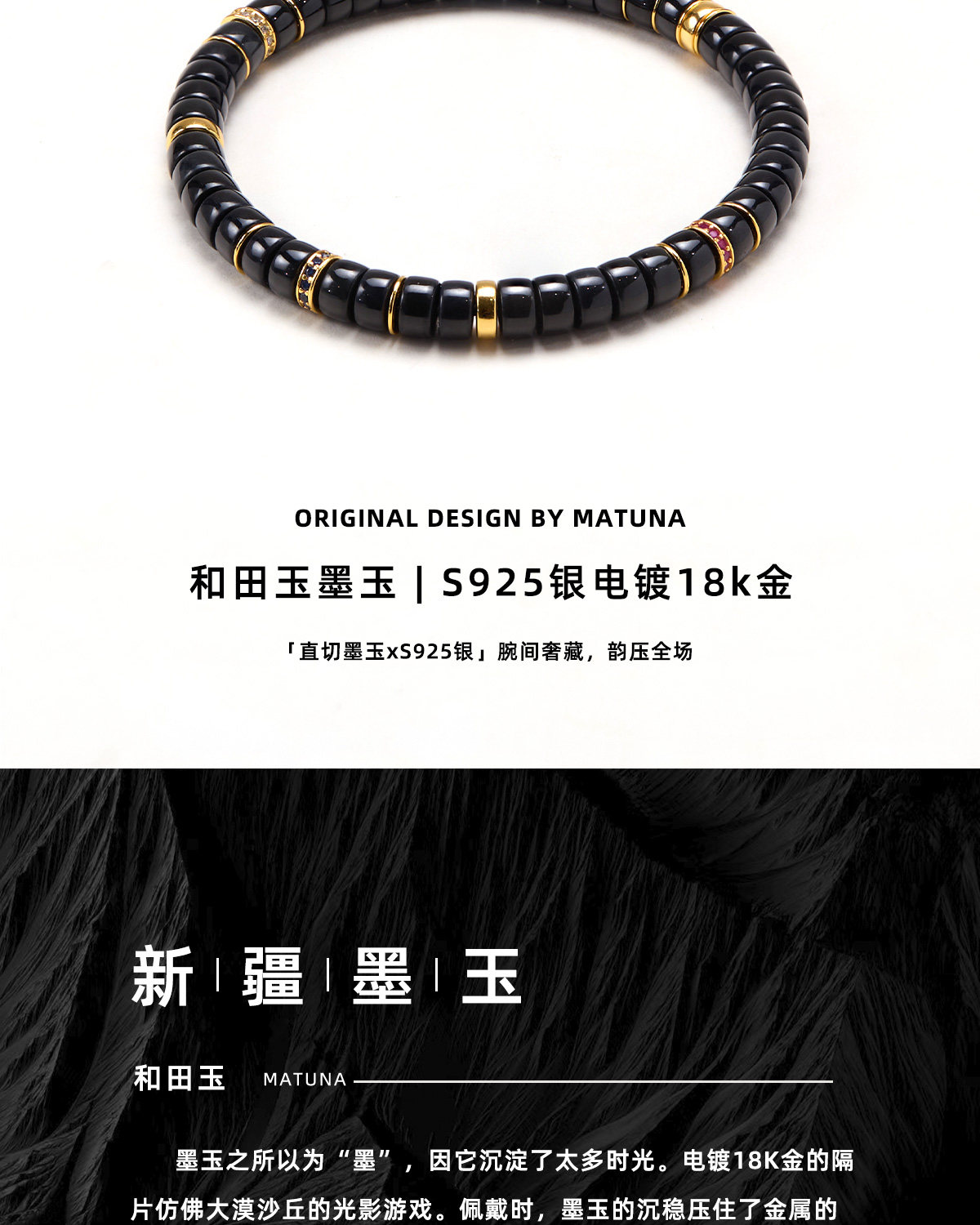 M8 Black Jade Matuna Xinjiang Hetian Ink Jade Straight Cut Bracelet with Extreme Arc Rounded Single Circle and Pure Silver Gold-Plated Bracelet