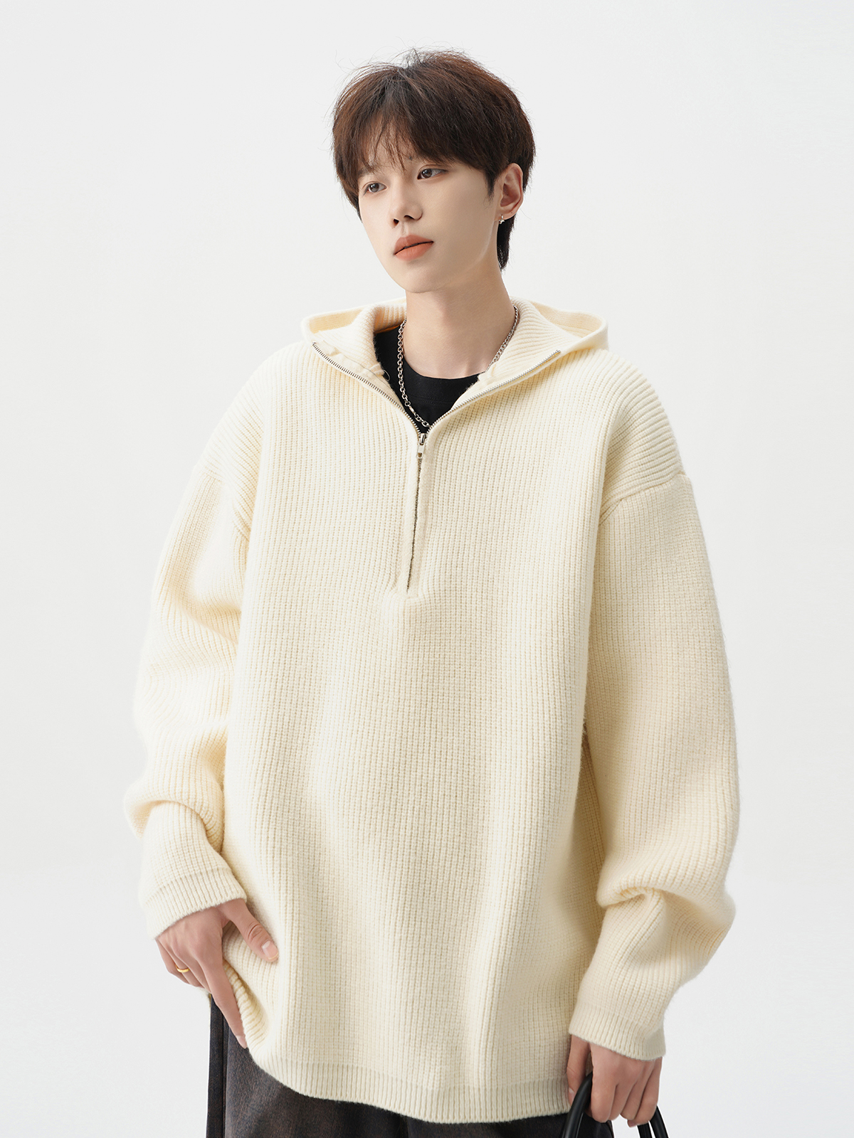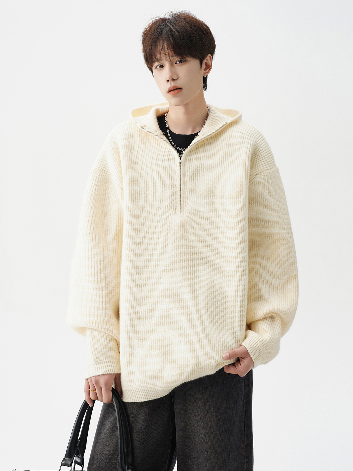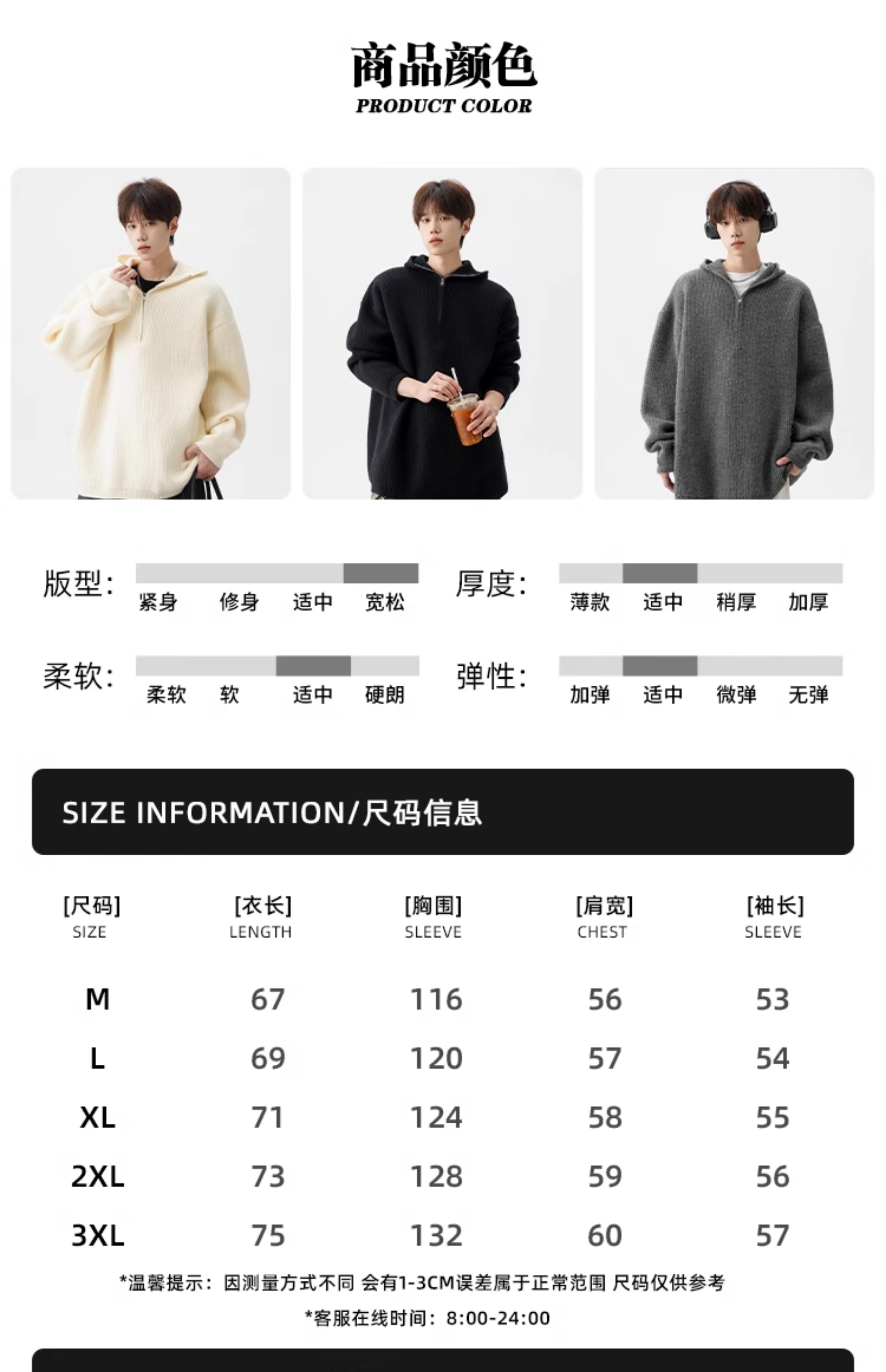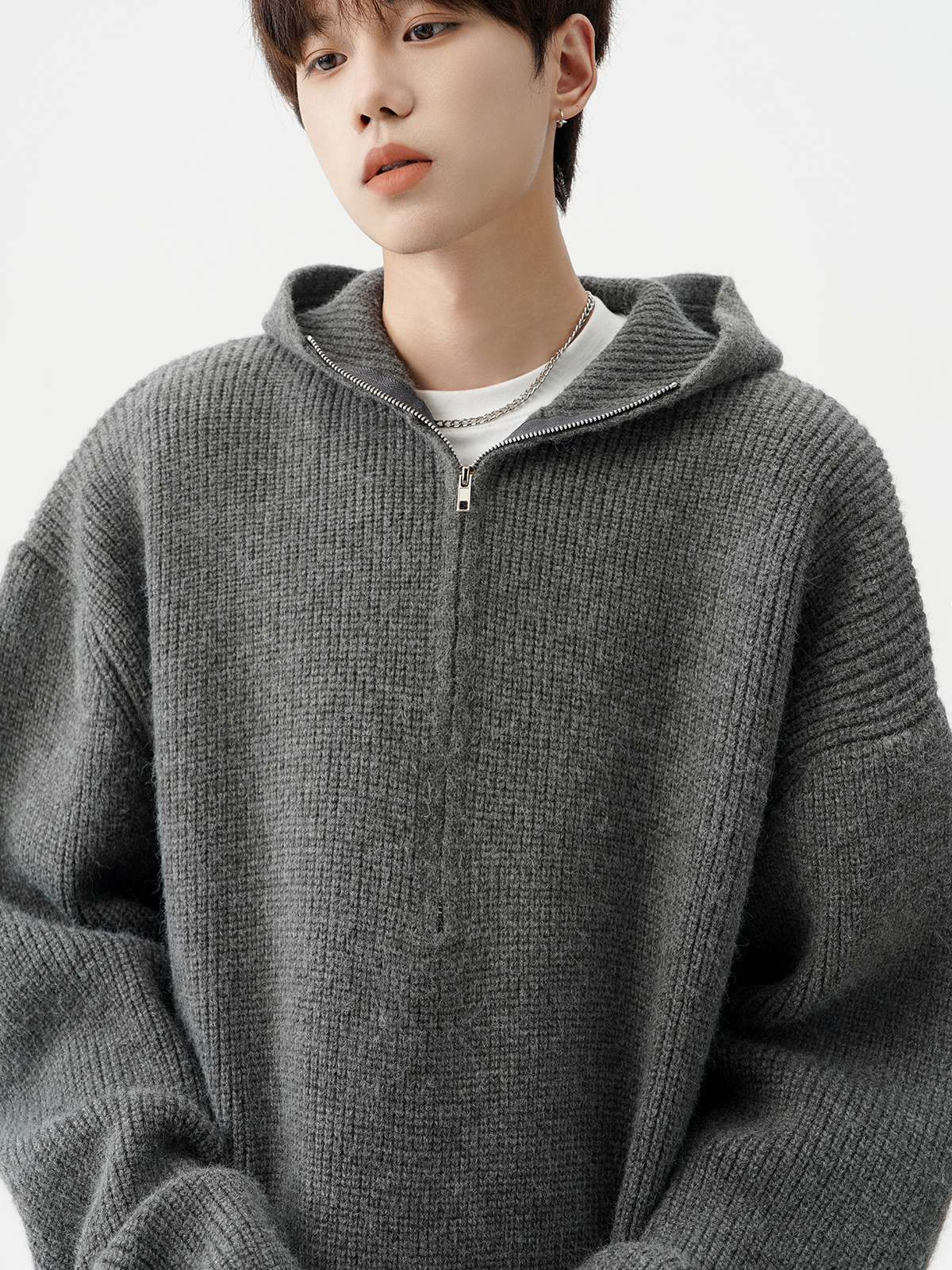Half-Zip Hooded Knit Sweater for Men, Winter Trendy Brand, Loose Fit, Cleanfit Sweater, Casual High-End Couple's Jacket