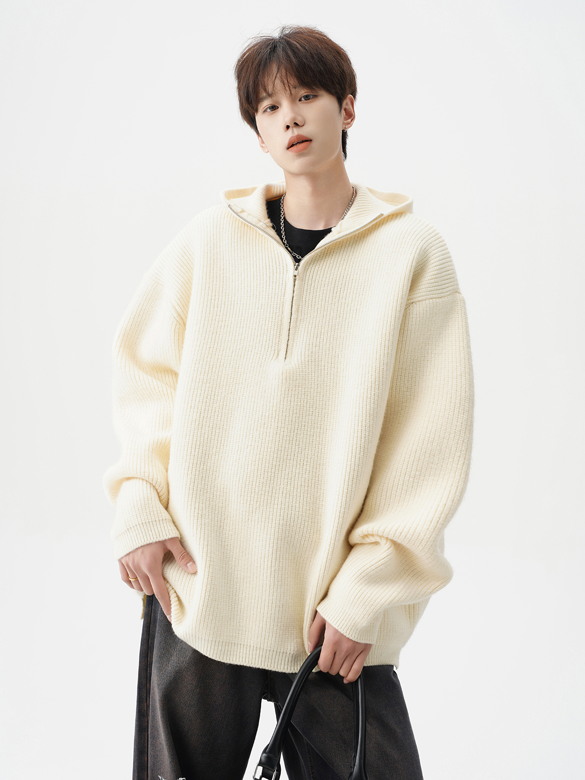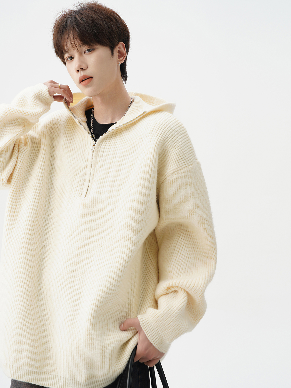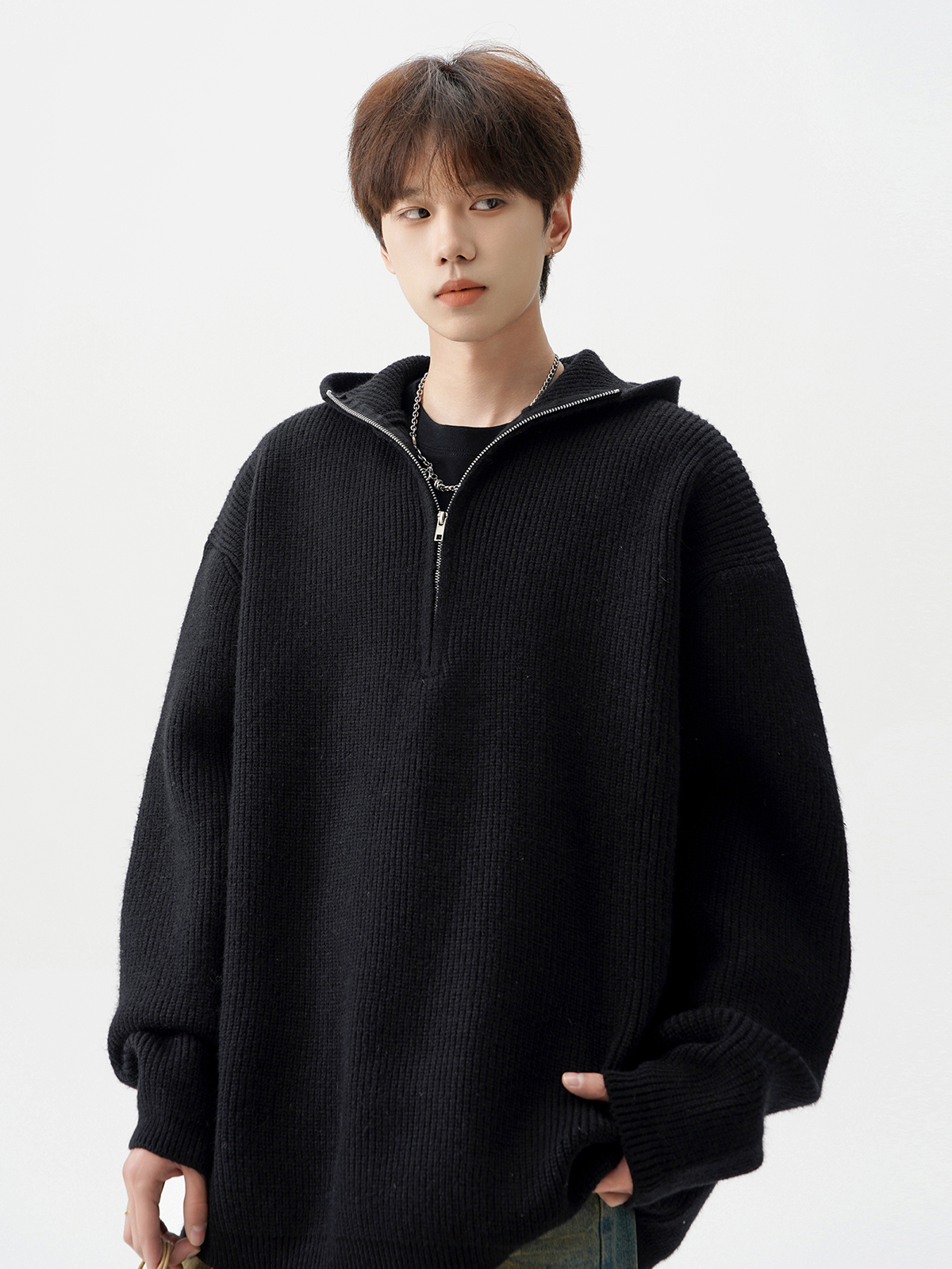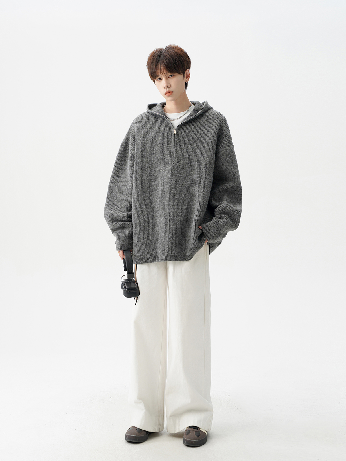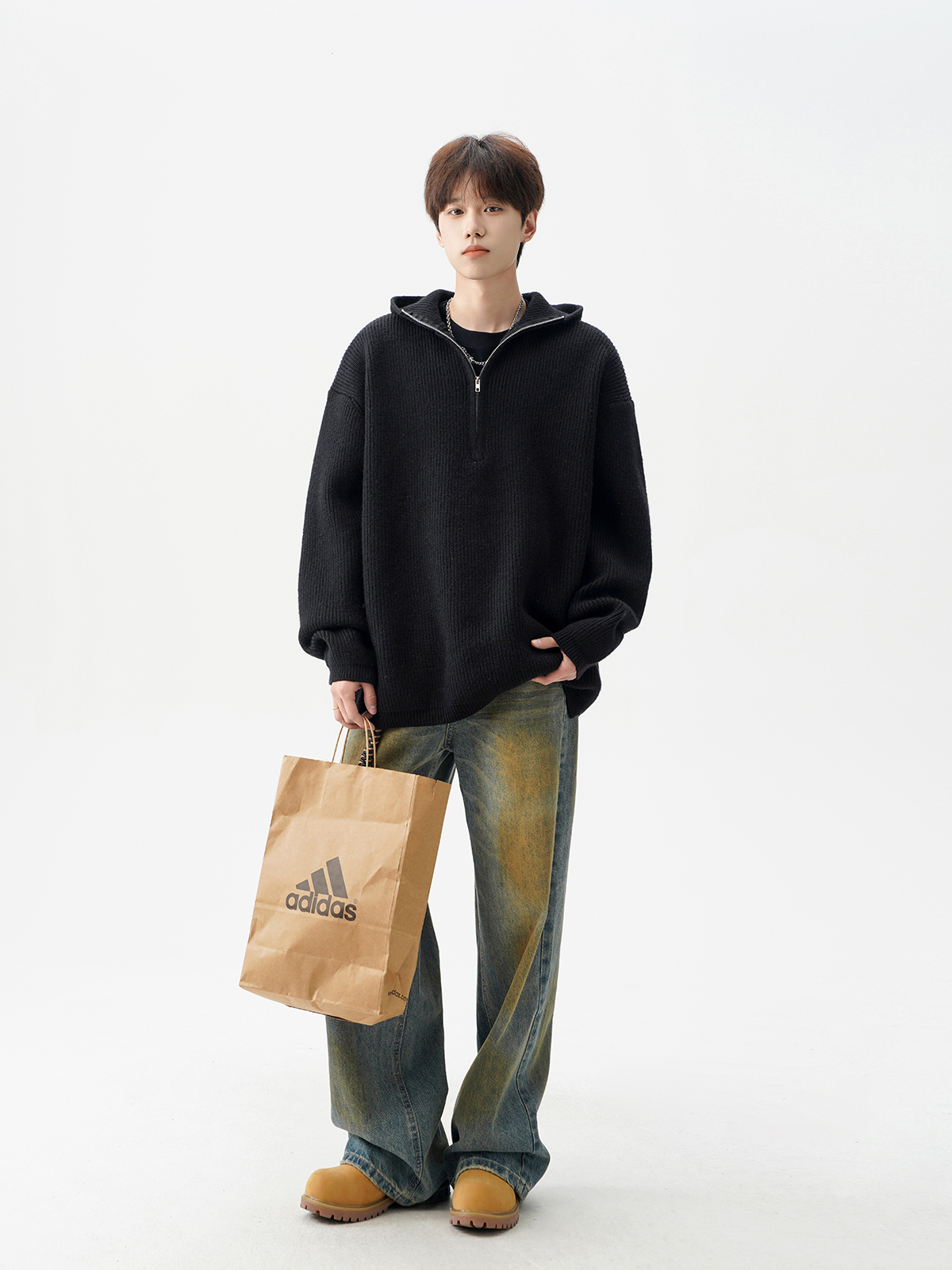 Half-Zip Hooded Knit Sweater for Men, Winter Trendy Brand, Loose Fit, Cleanfit Sweater, Casual High-End Couple's Jacket