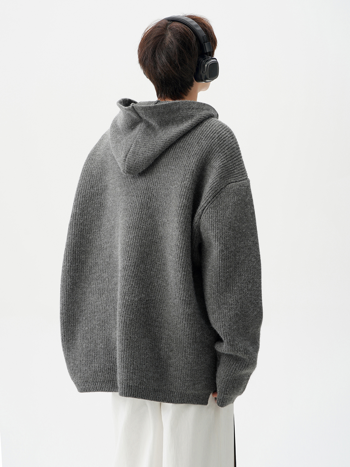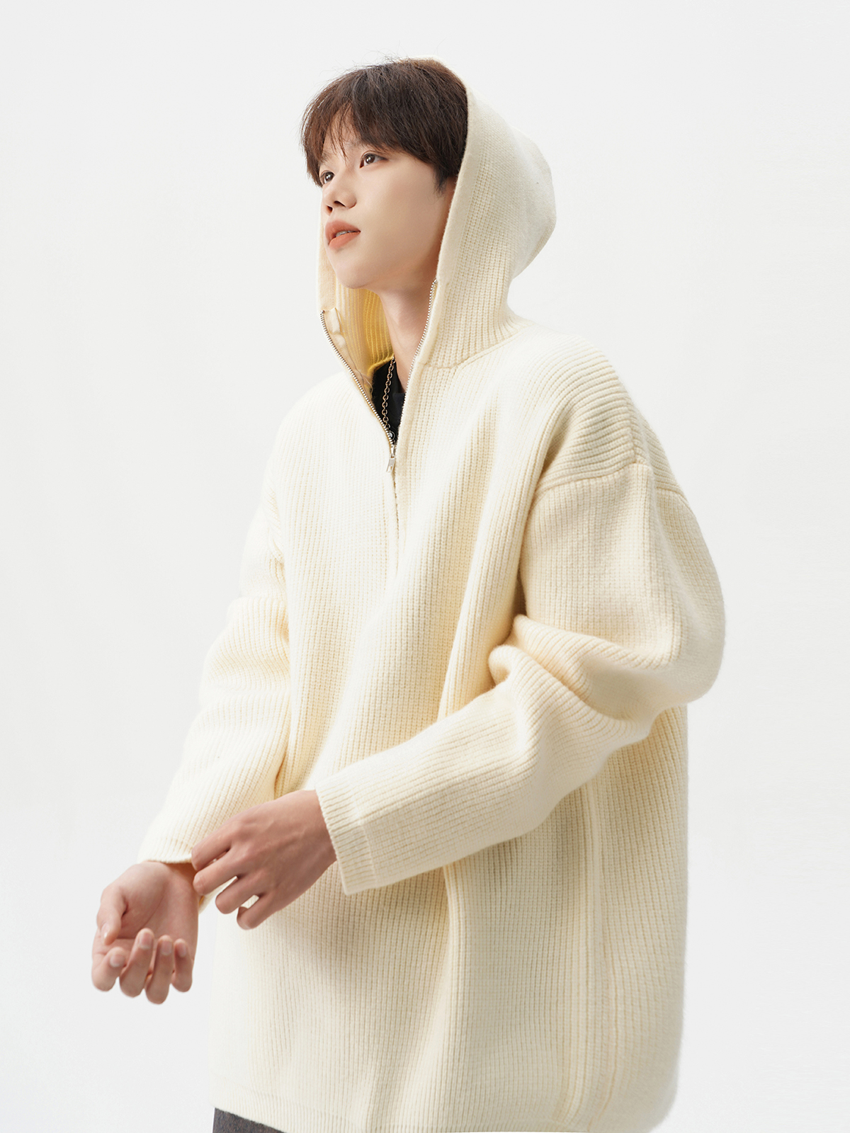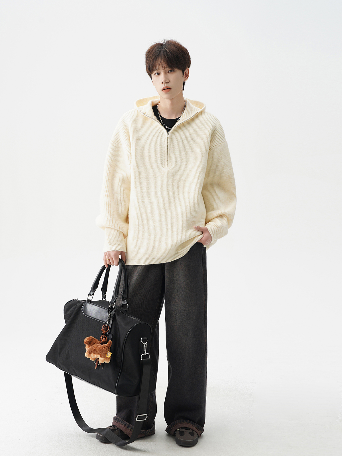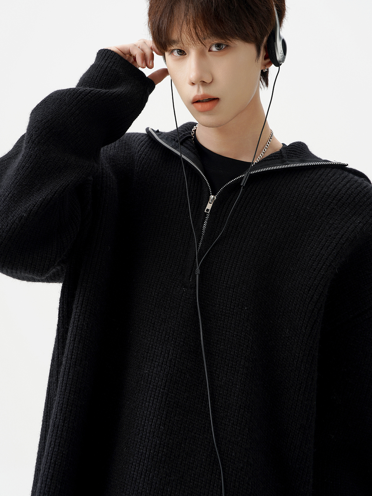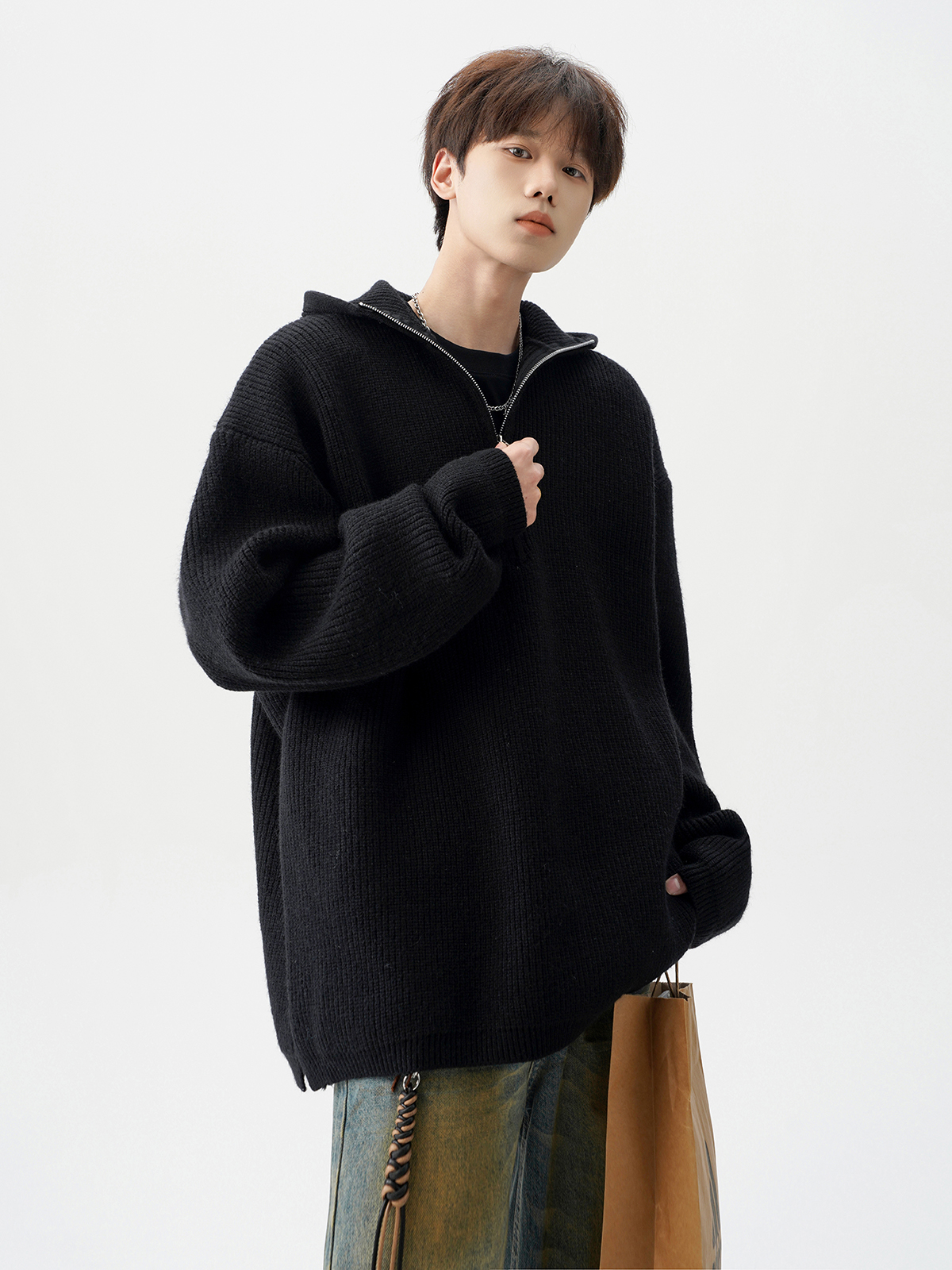 Half-Zip Hooded Knit Sweater for Men, Winter Trendy Brand, Loose Fit, Cleanfit Sweater, Casual High-End Couple's Jacket