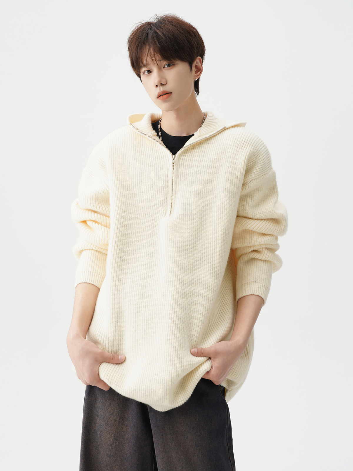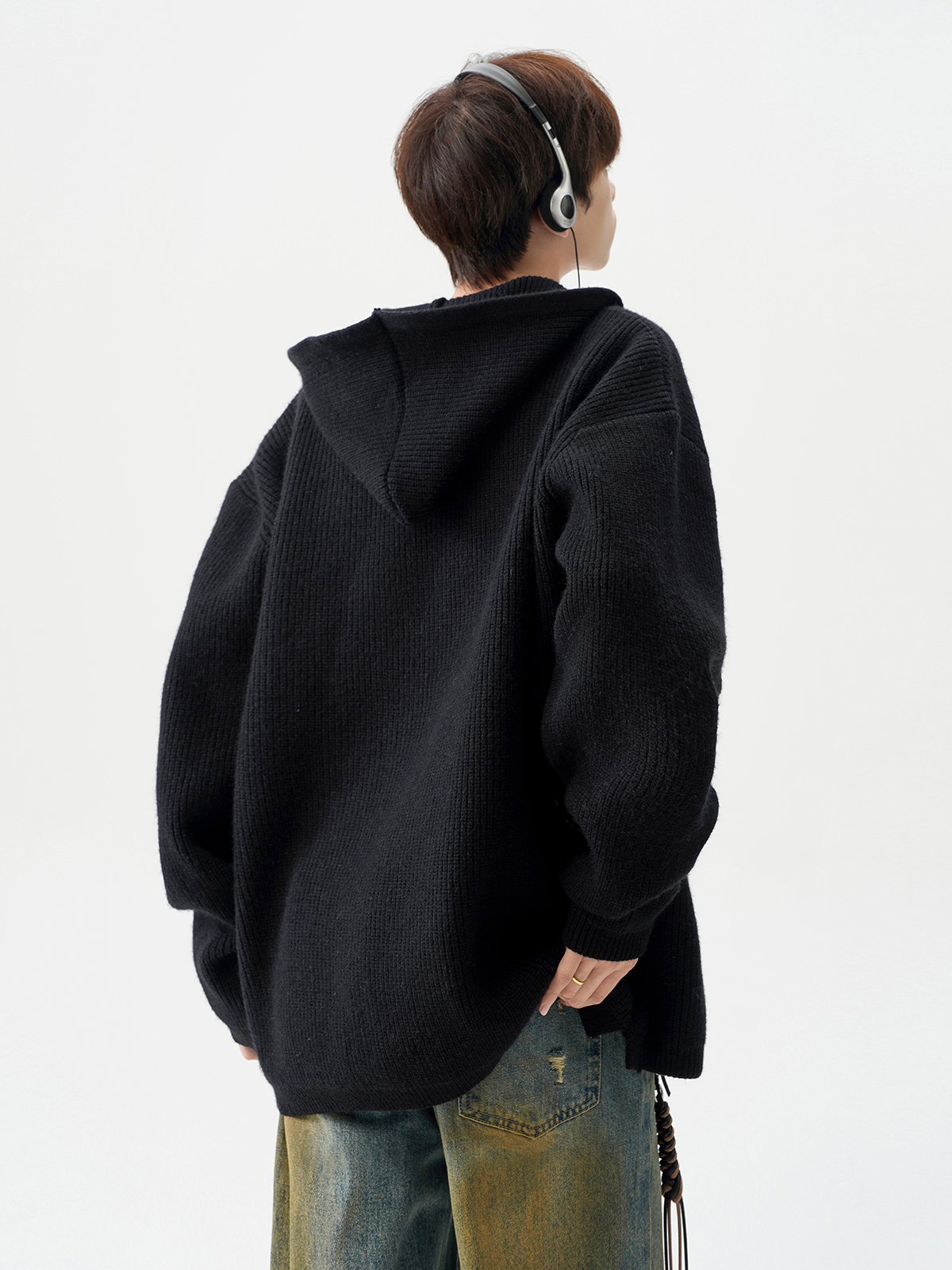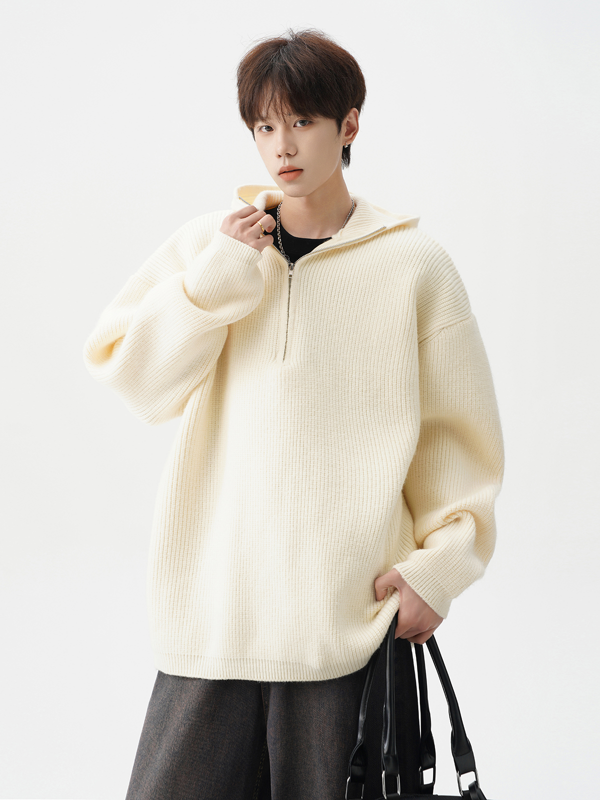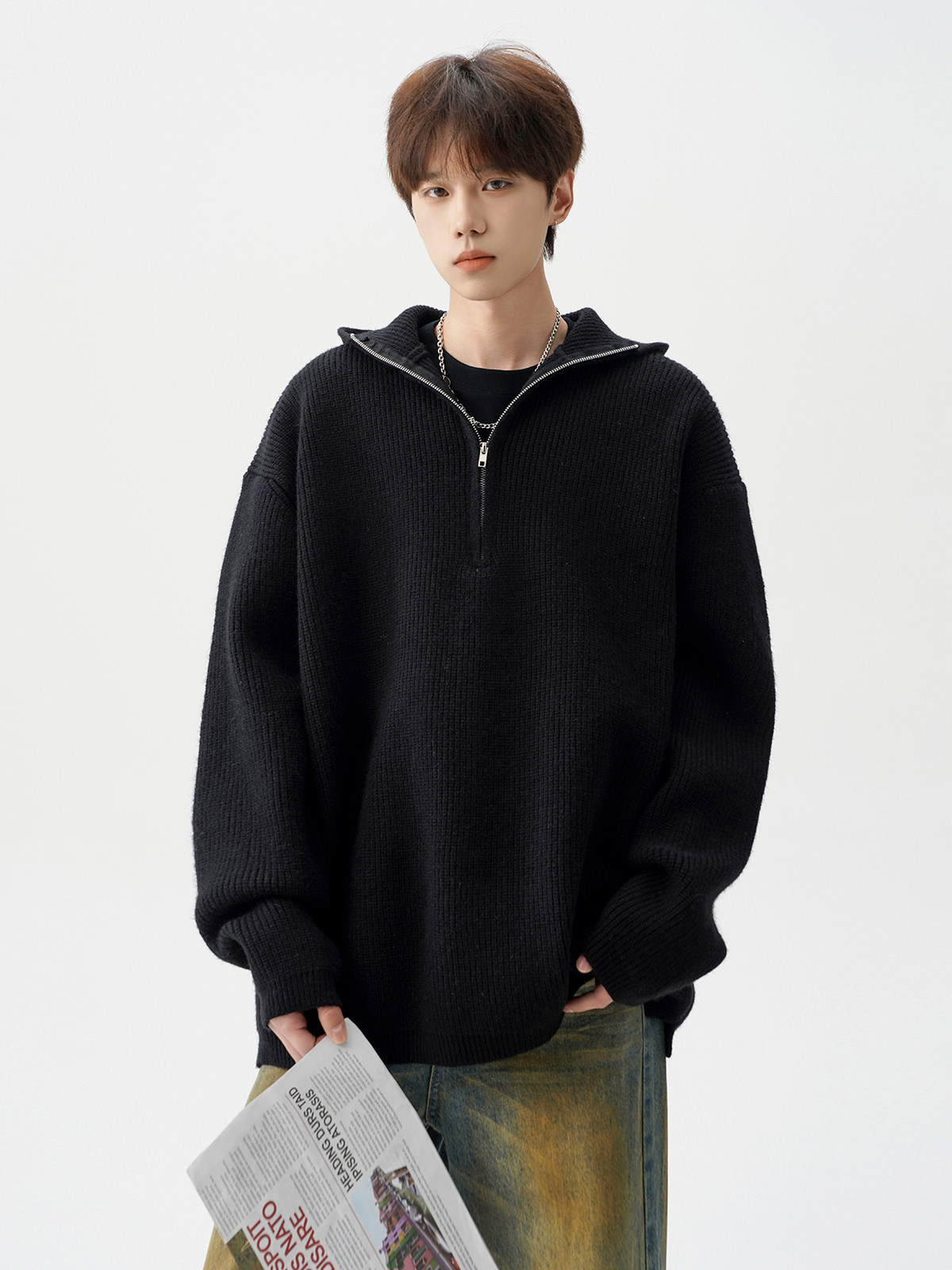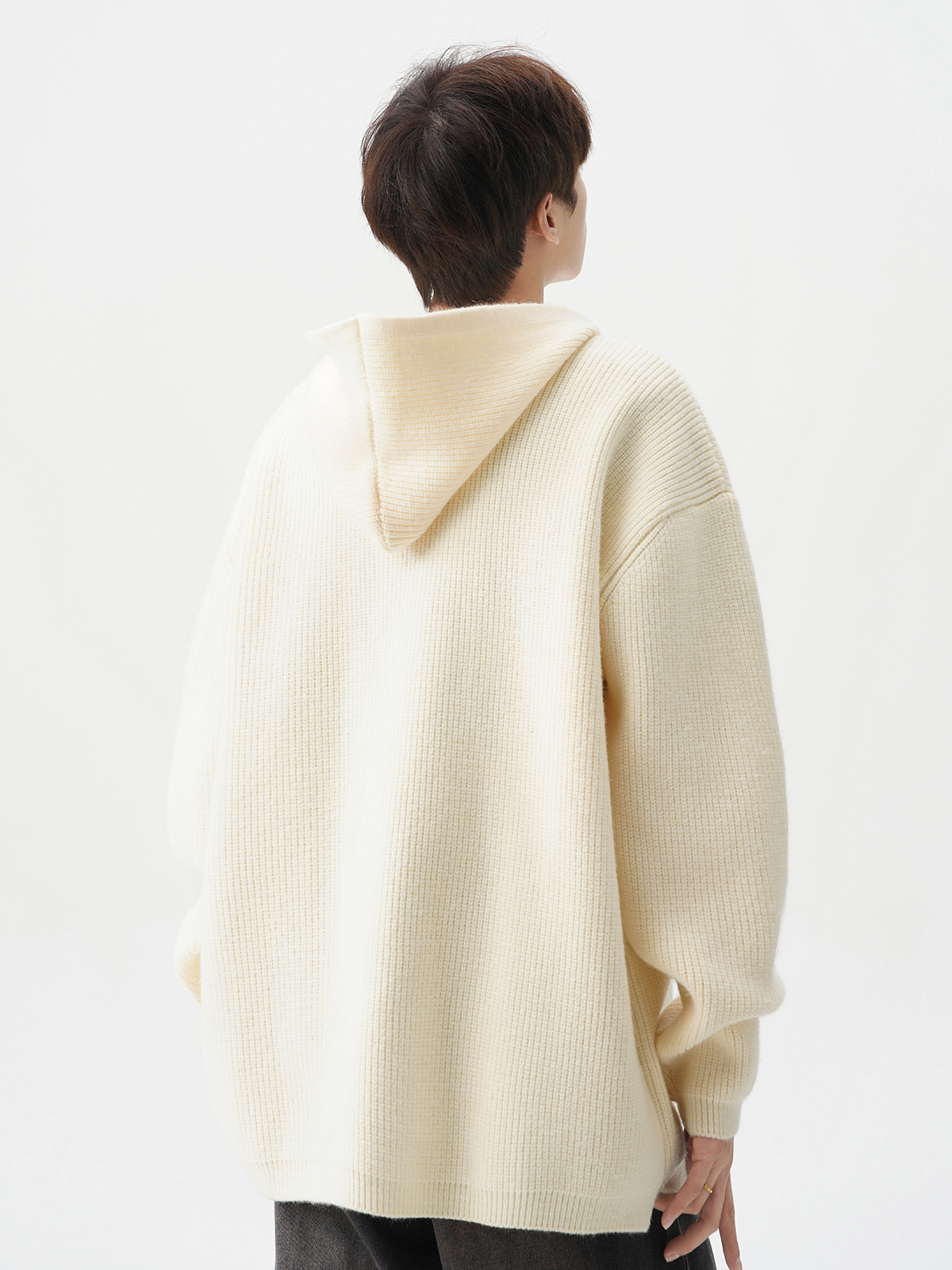 Half-Zip Hooded Knit Sweater for Men, Winter Trendy Brand, Loose Fit, Cleanfit Sweater, Casual High-End Couple's Jacket