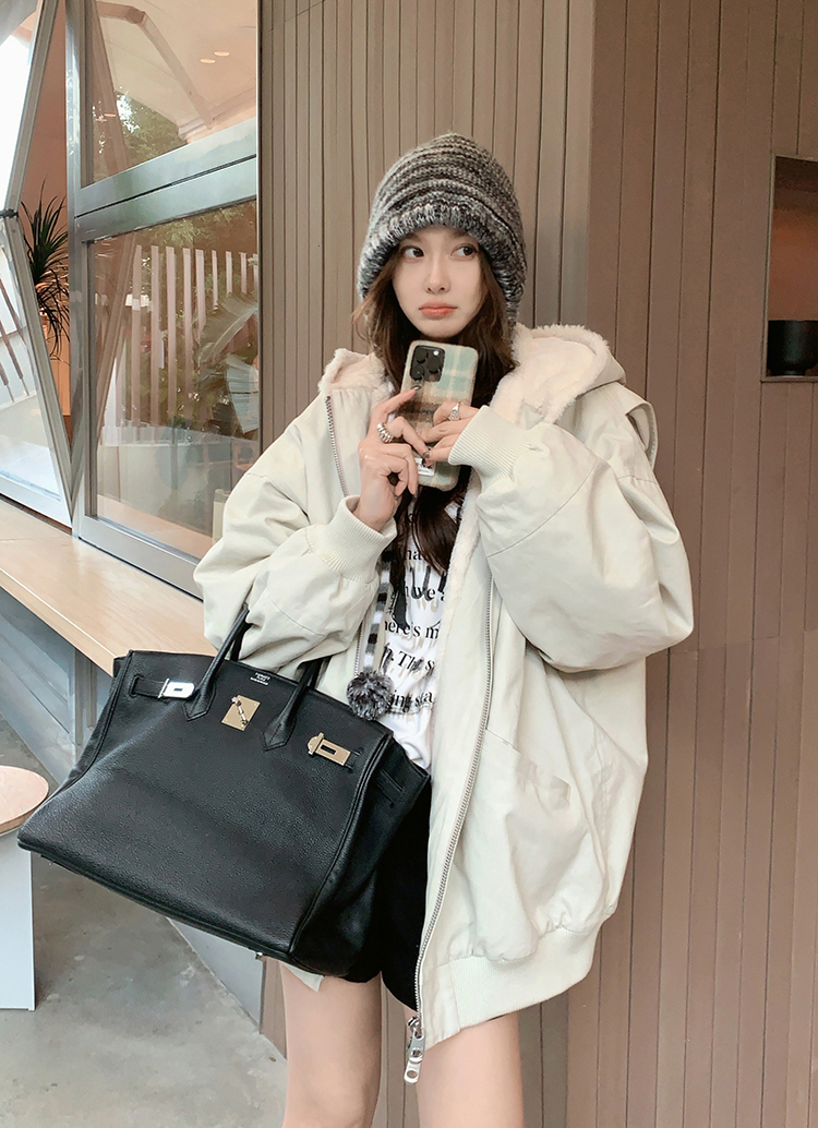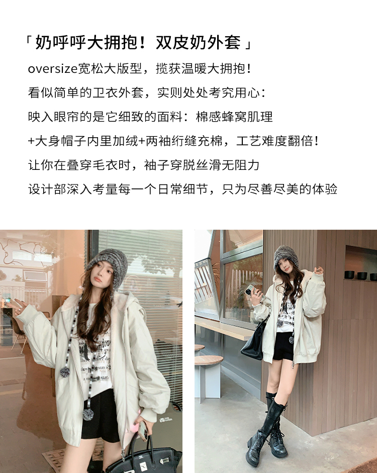 Meiyang Double-Skin Milk Jacket Cotton-Like Honeycomb Texture_Thick Fleece Warm Hooded Sweatshirt