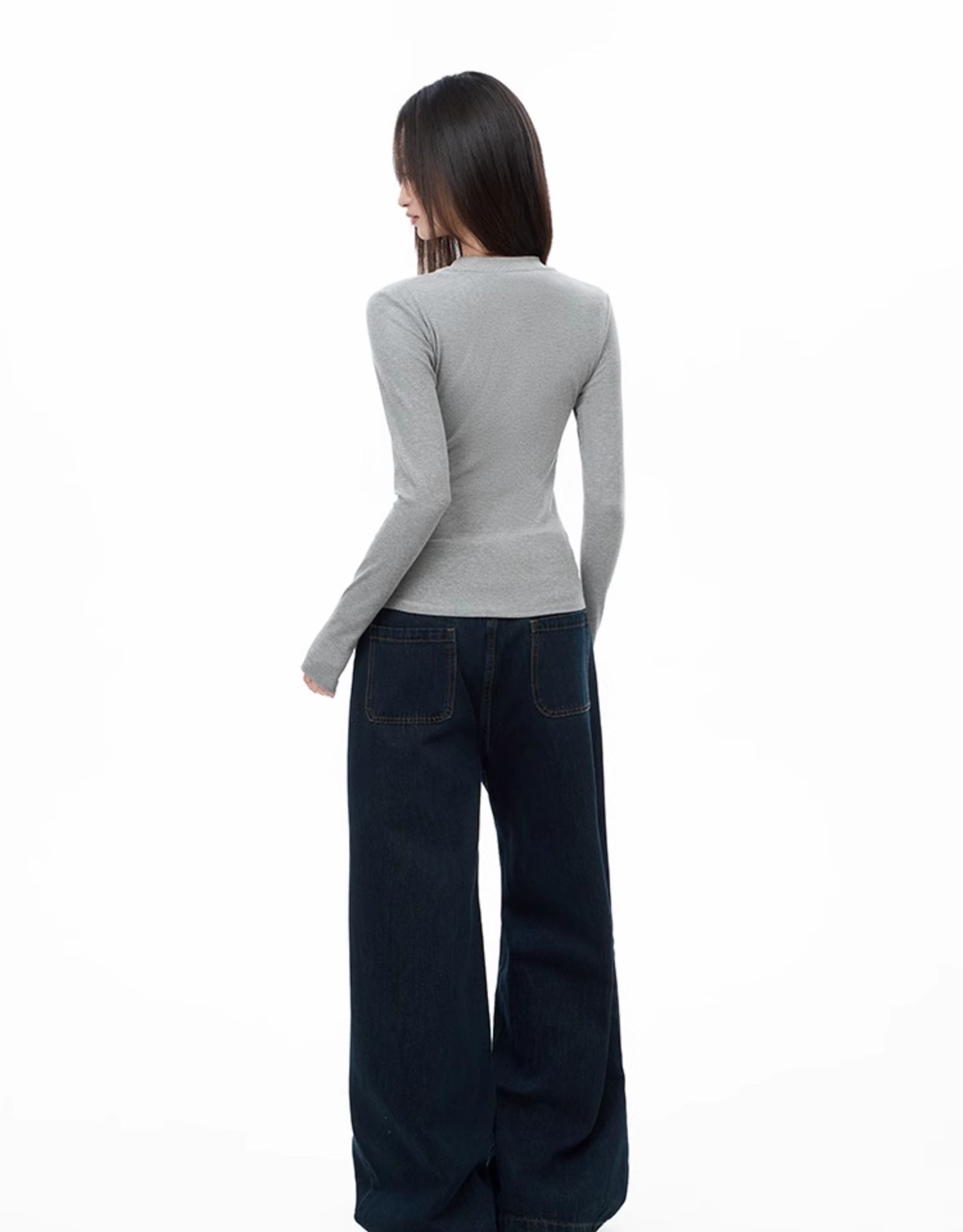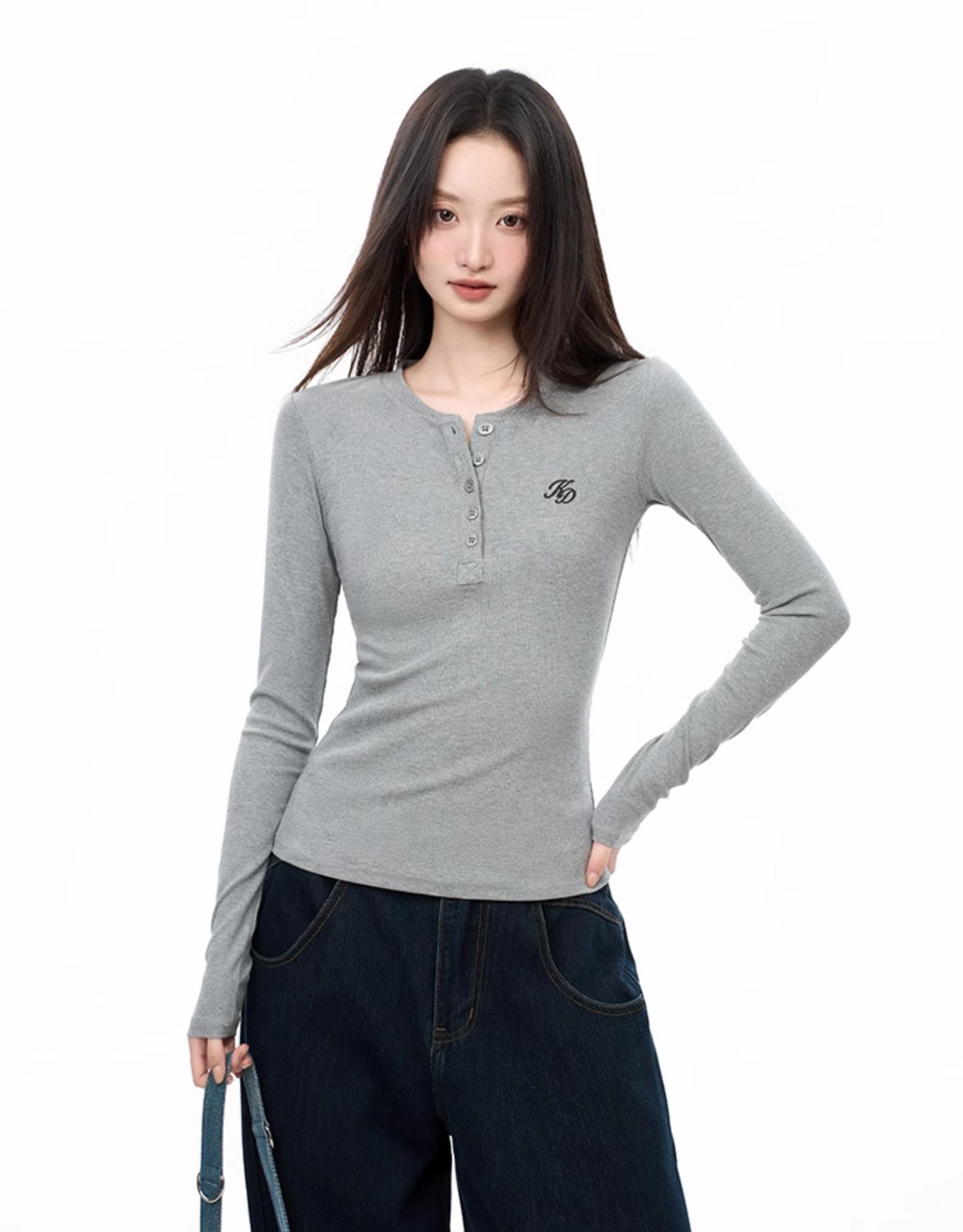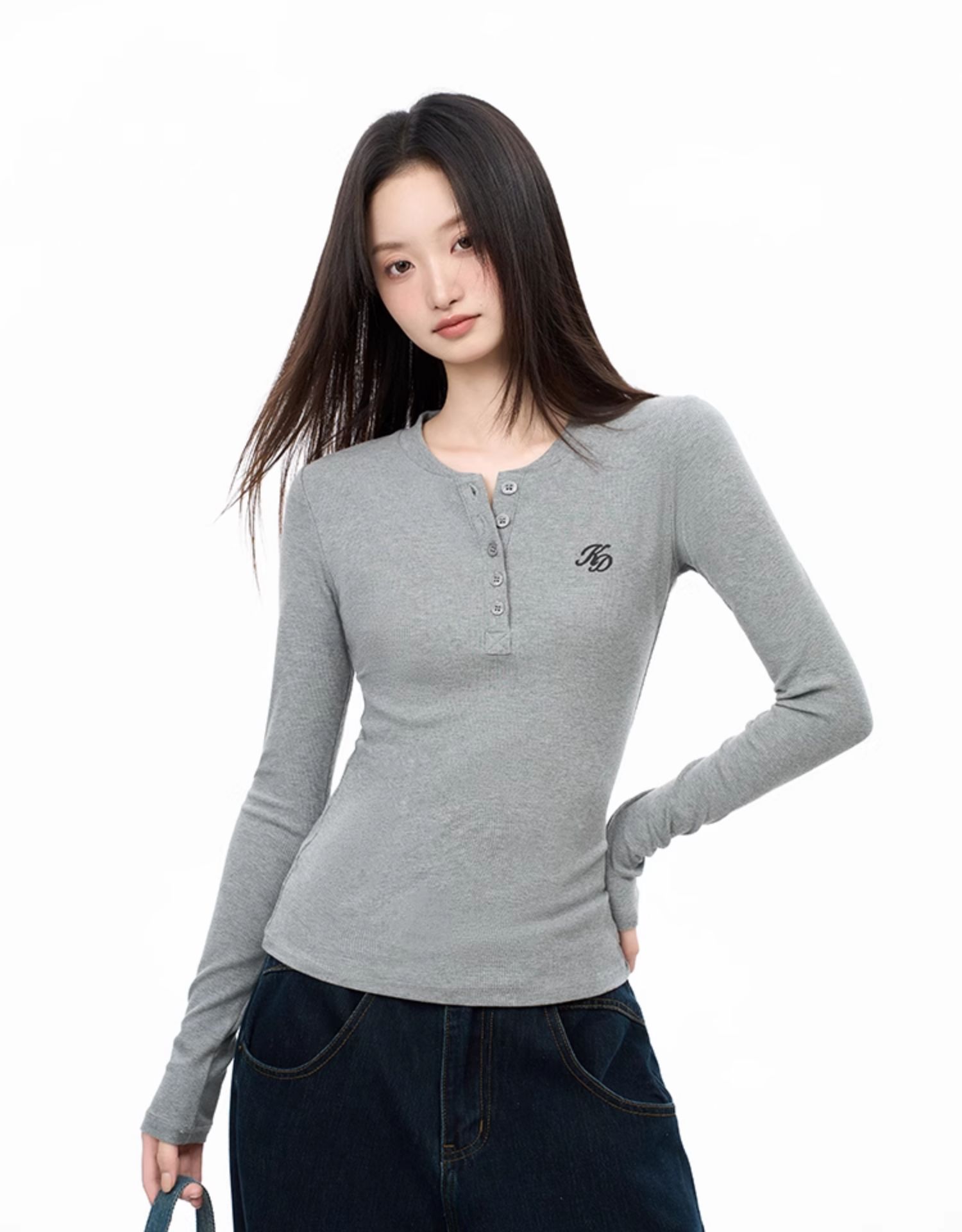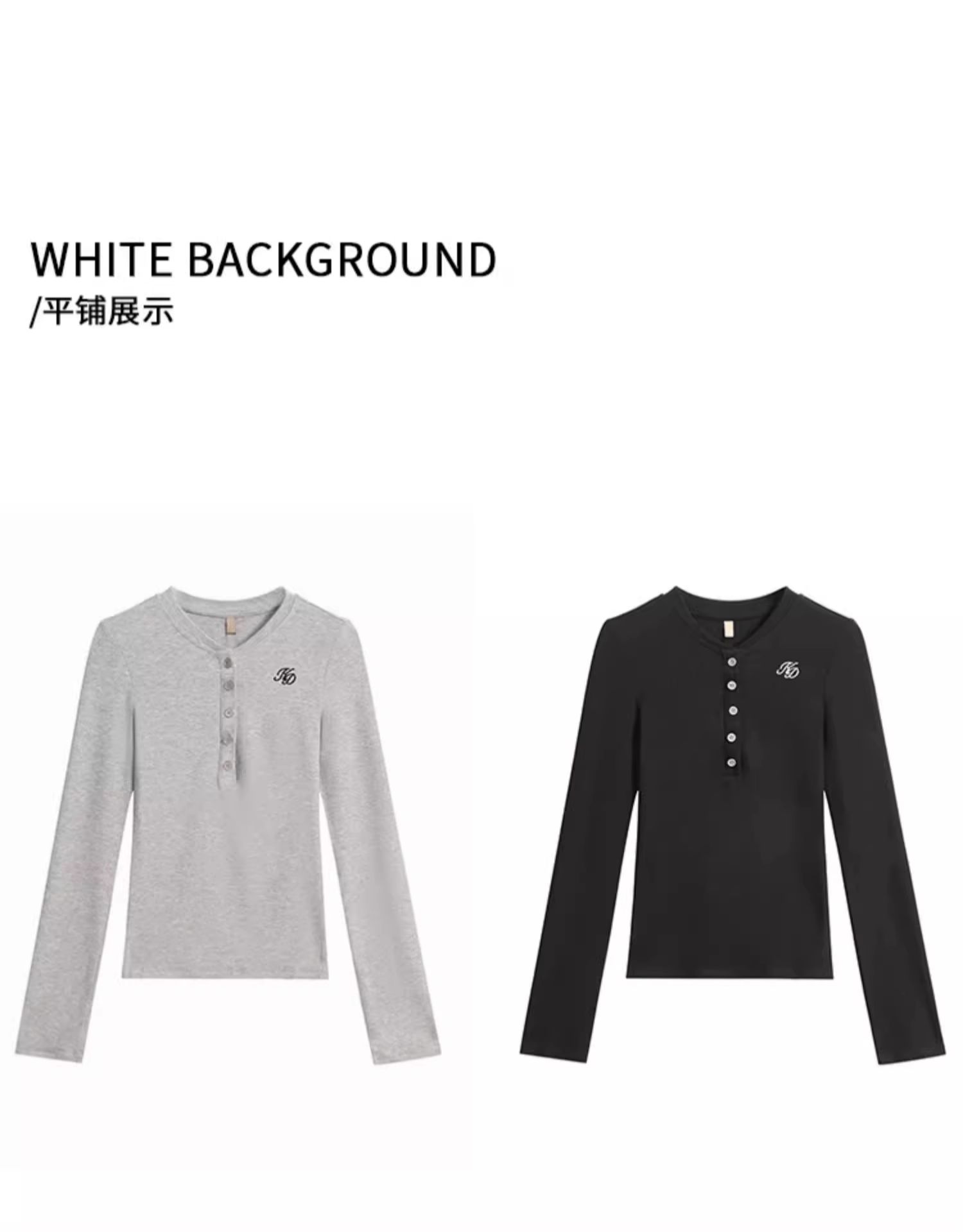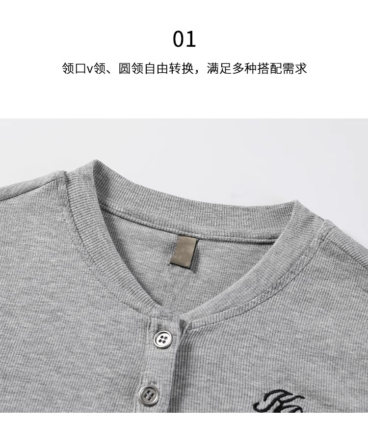 Iiiamx Gray V-Neck Fleece-Lined Slim-Fit T-Shirt Base Layer for Women 2025 Autumn Long-Sleeve Inner Wear Regular Shoulder Top