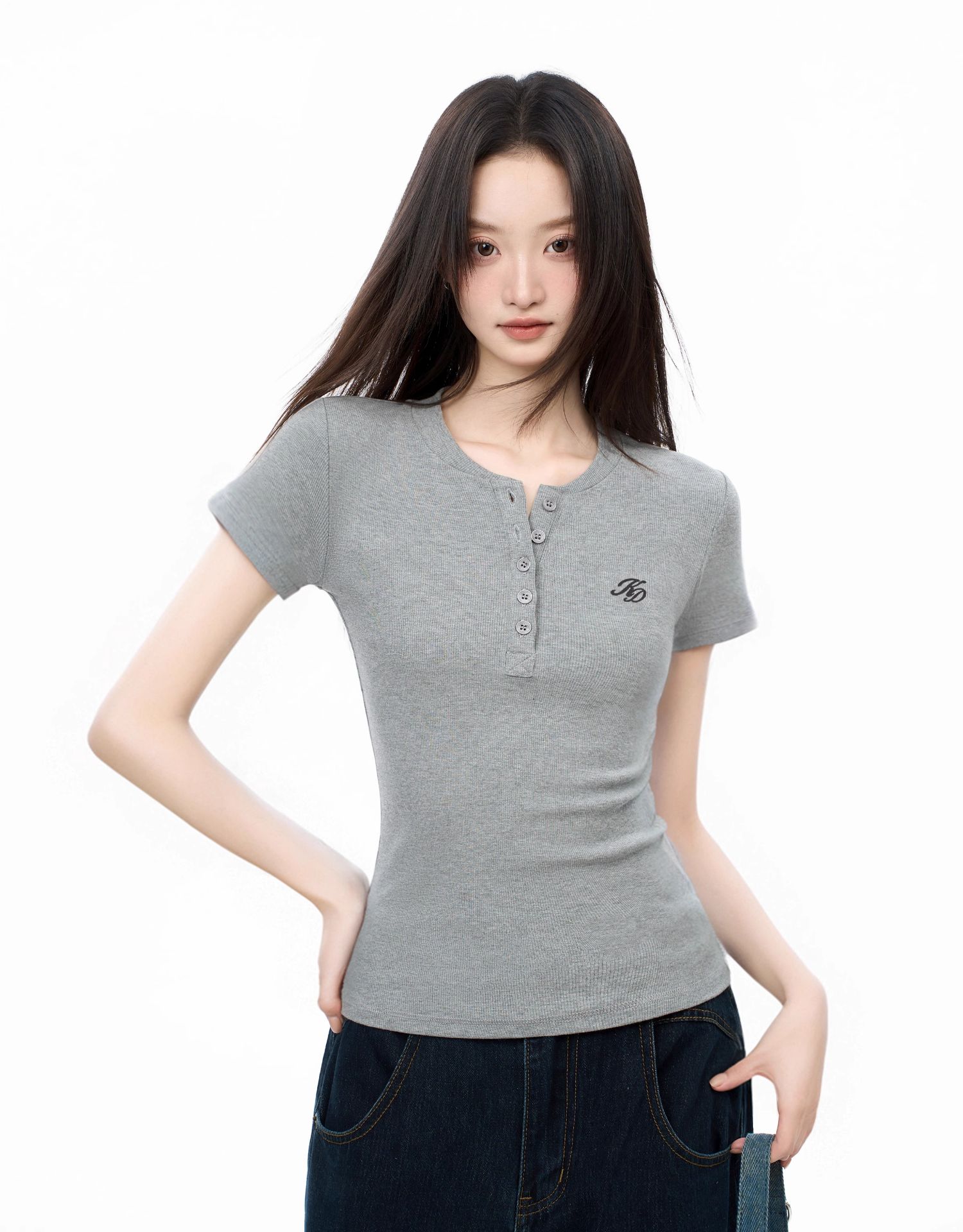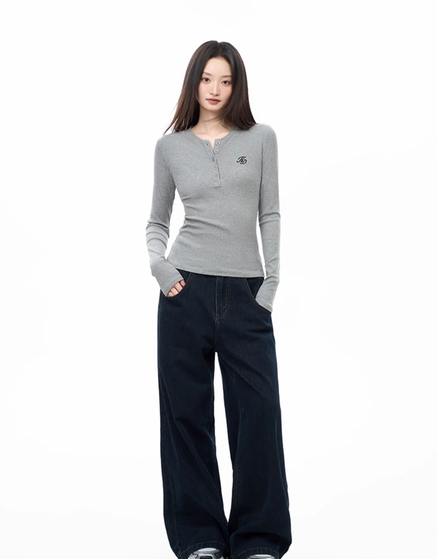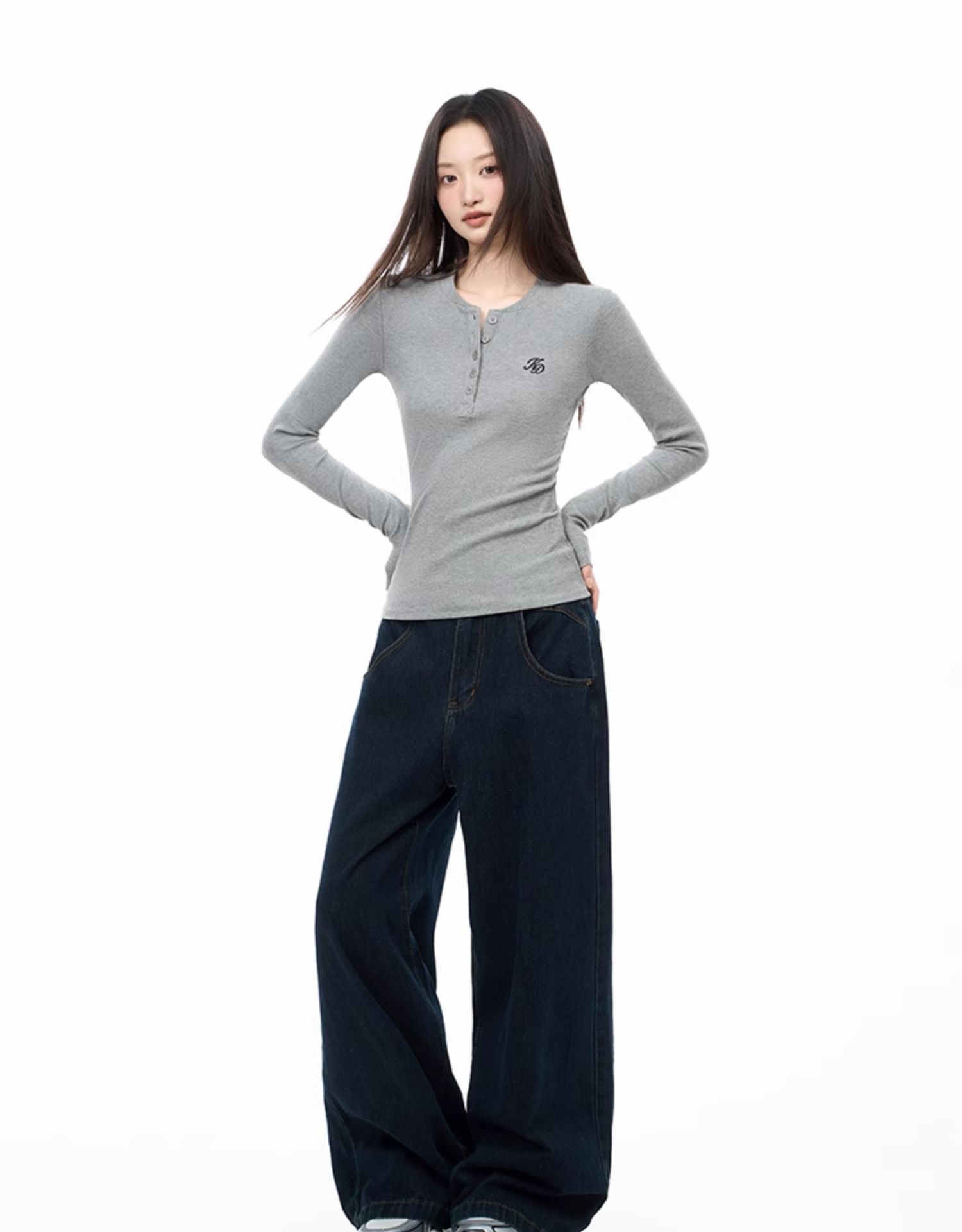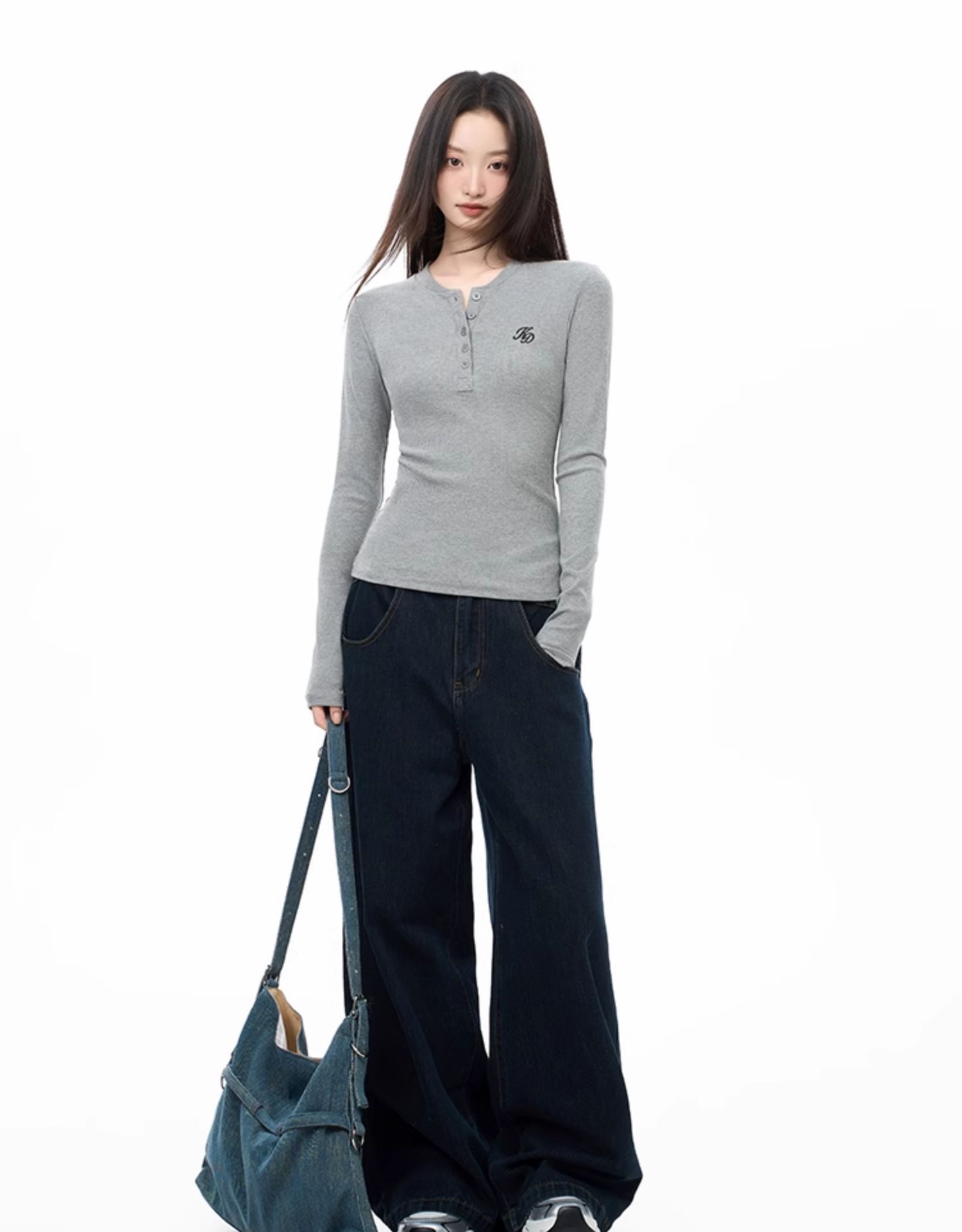 Iiiamx Gray V-Neck Fleece-Lined Slim-Fit T-Shirt Base Layer for Women 2025 Autumn Long-Sleeve Inner Wear Regular Shoulder Top