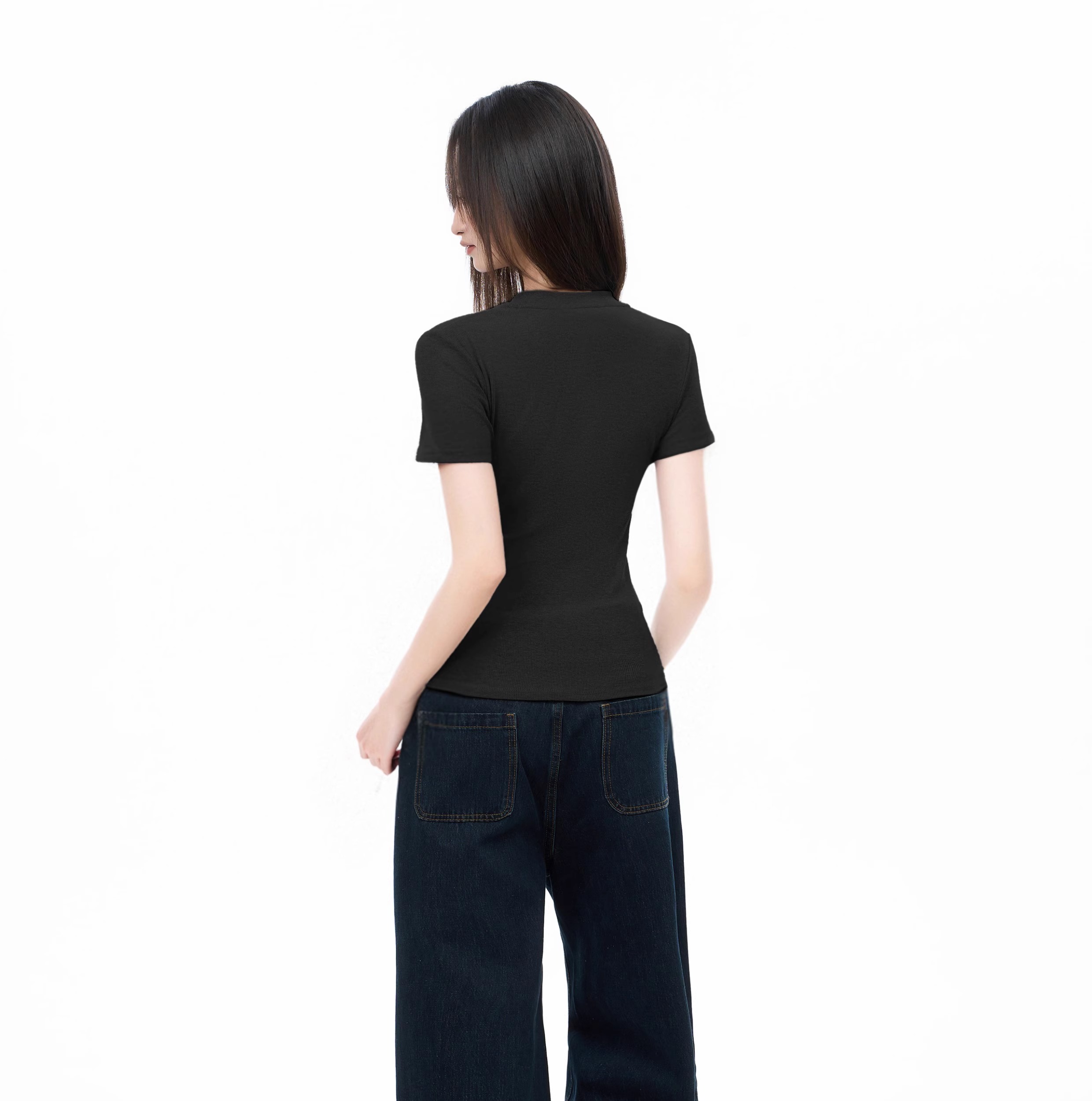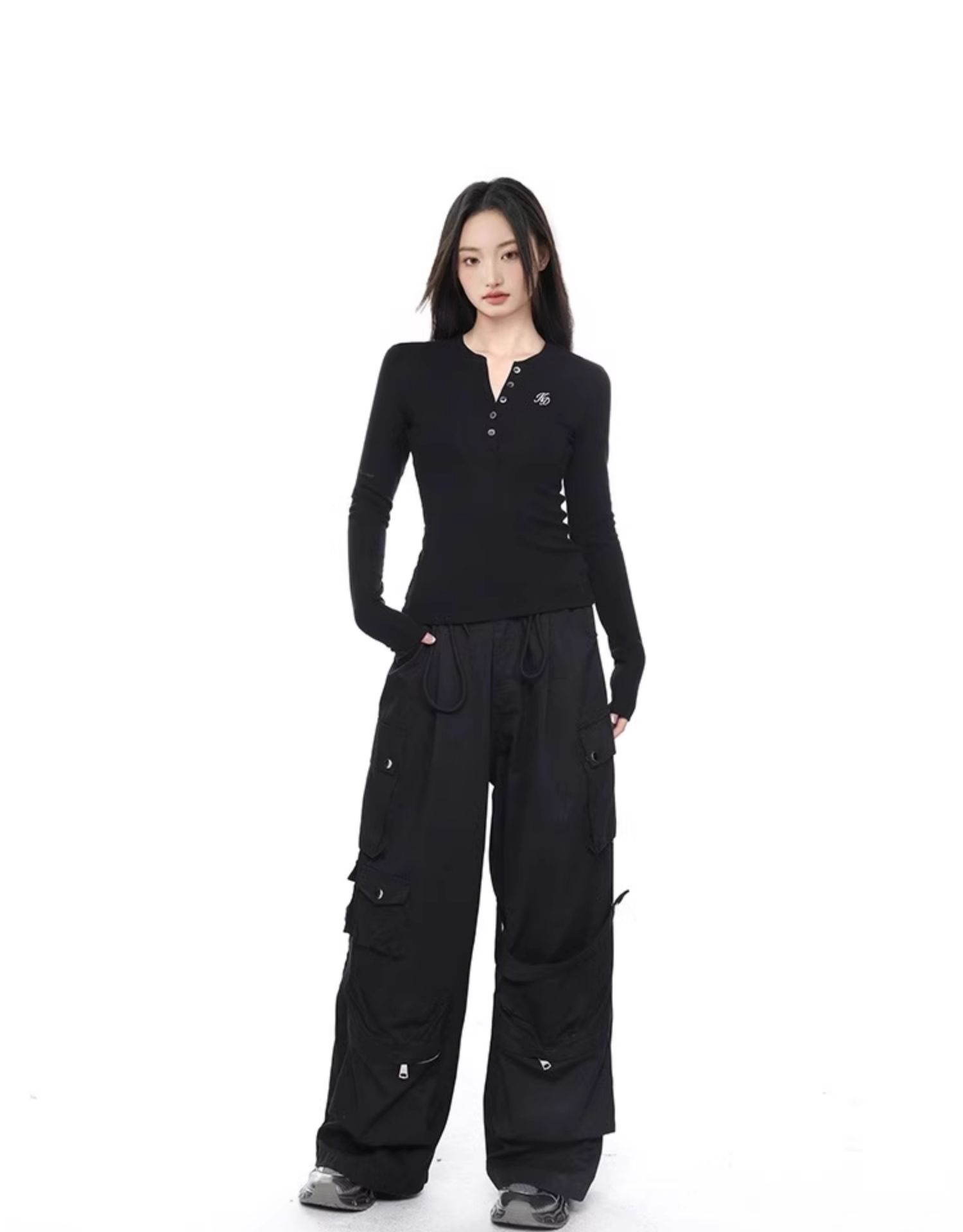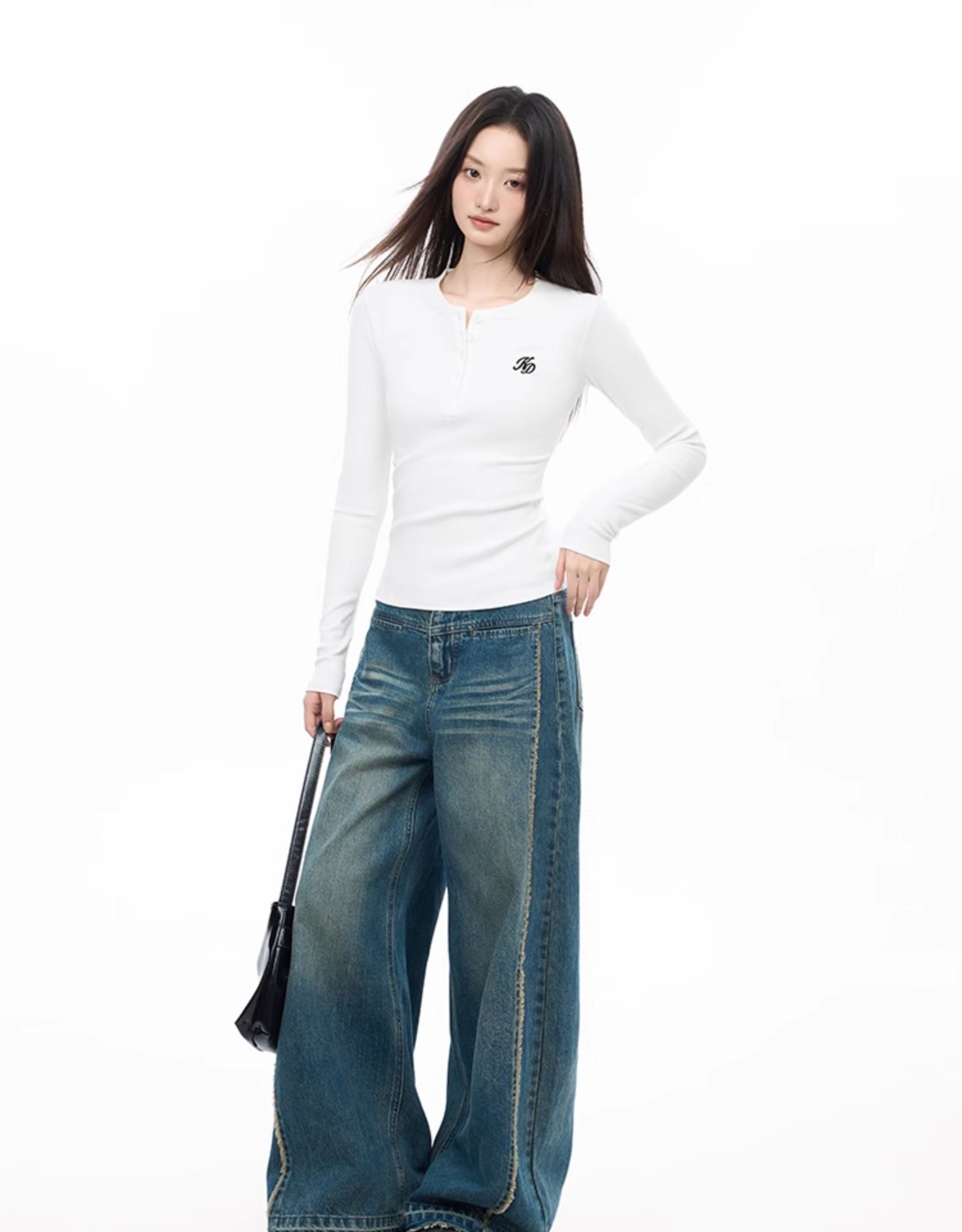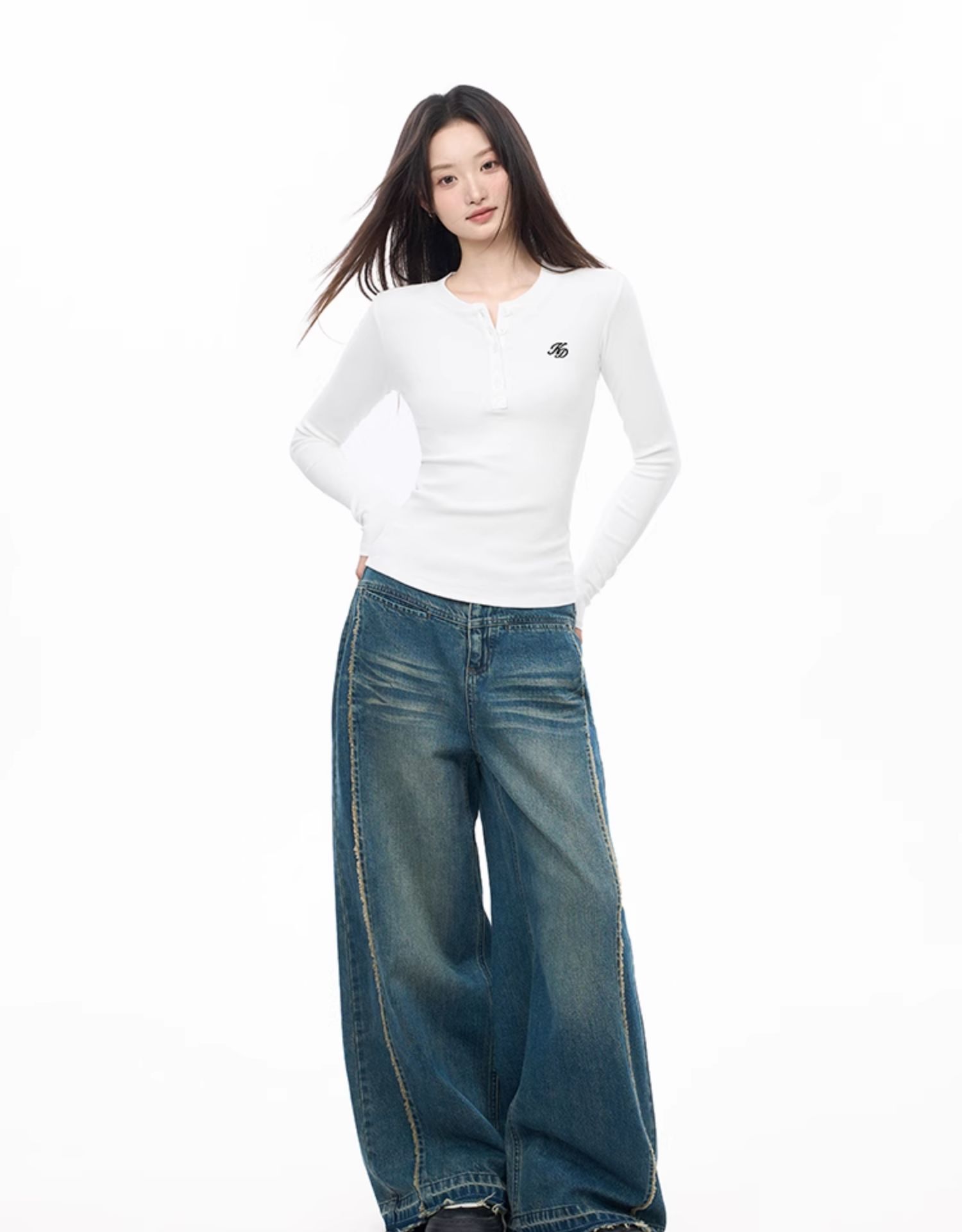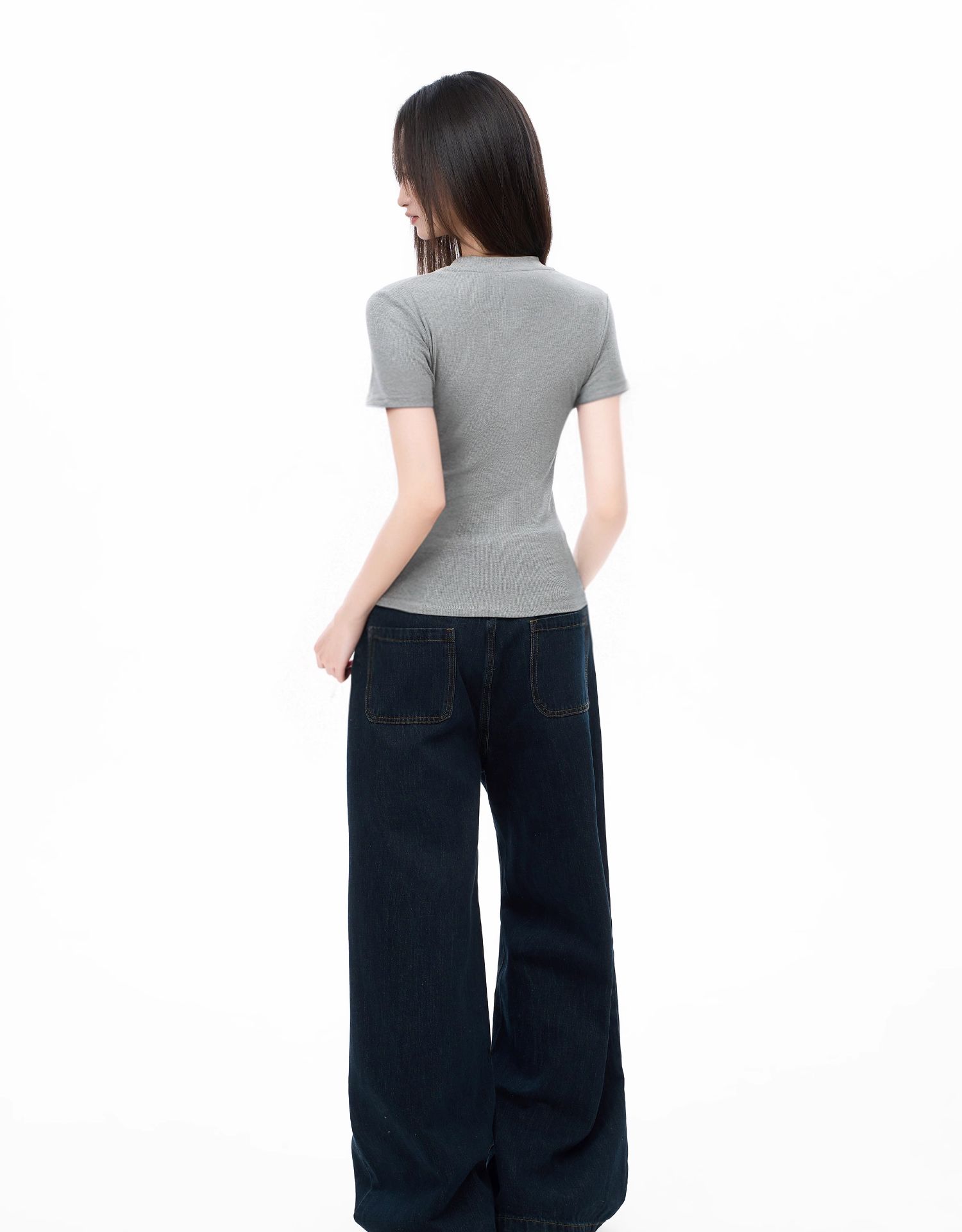 Iiiamx Gray V-Neck Fleece-Lined Slim-Fit T-Shirt Base Layer for Women 2025 Autumn Long-Sleeve Inner Wear Regular Shoulder Top