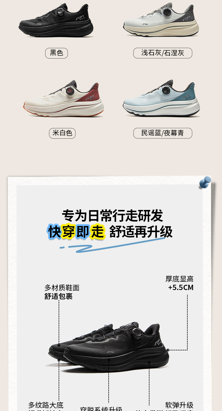 Li-Ning Soft Go Max 2 | Casual Shoes for Men, Lightweight and Soft, New Style Business Slip-On Running Sneakers
