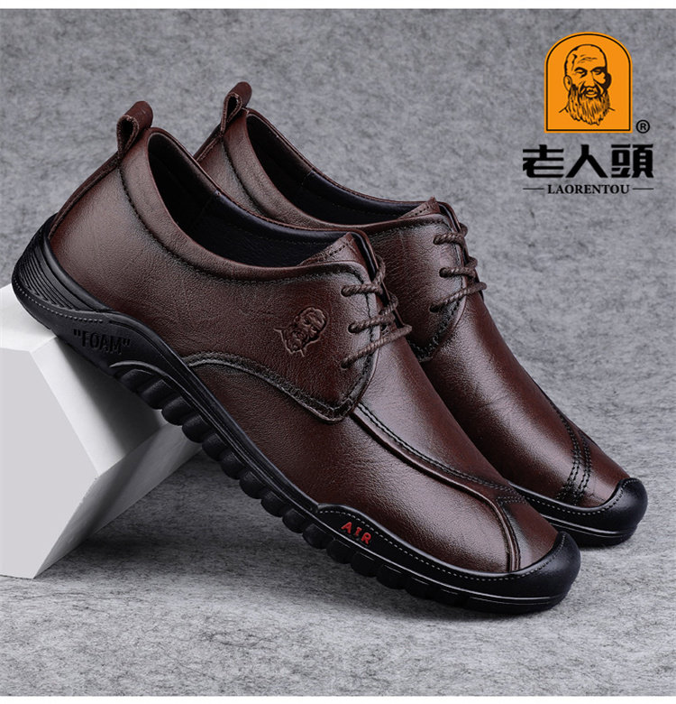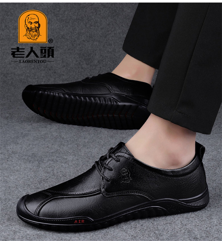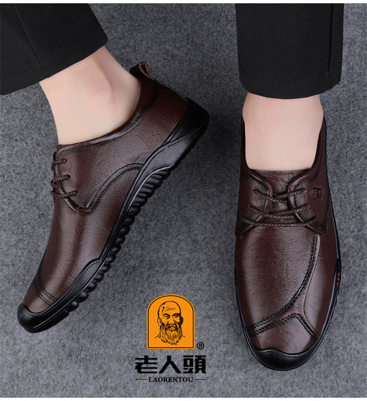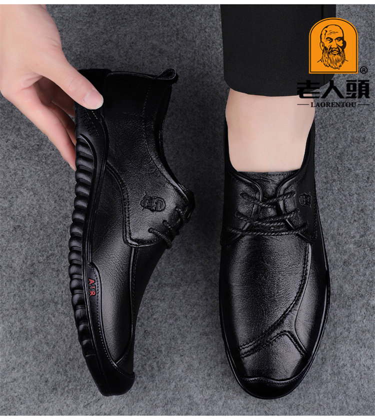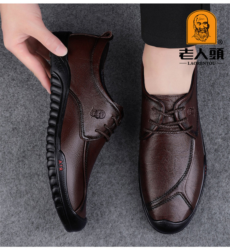 Old Man's Head Spring 2025 New Leather Shoes for Men, High-End Genuine Leather Business Soft Sole Casual Shoes, Soft Surface Breathable Men's Shoes