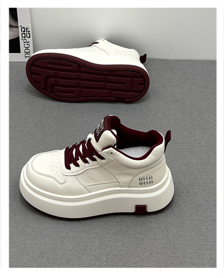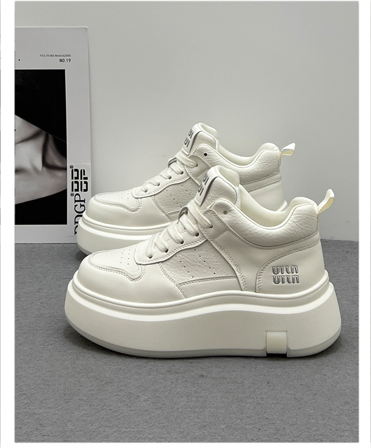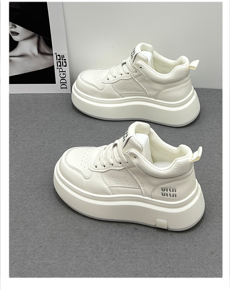 Hong Kong Genuine Leather Thick-Soled Height-Increasing White Sneakers, Fashionable High-Top Shoes with Fleece Lining for Women, Versatile Casual Sneakers for Spring and Autumn 2025