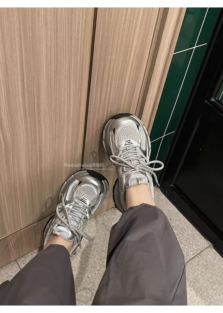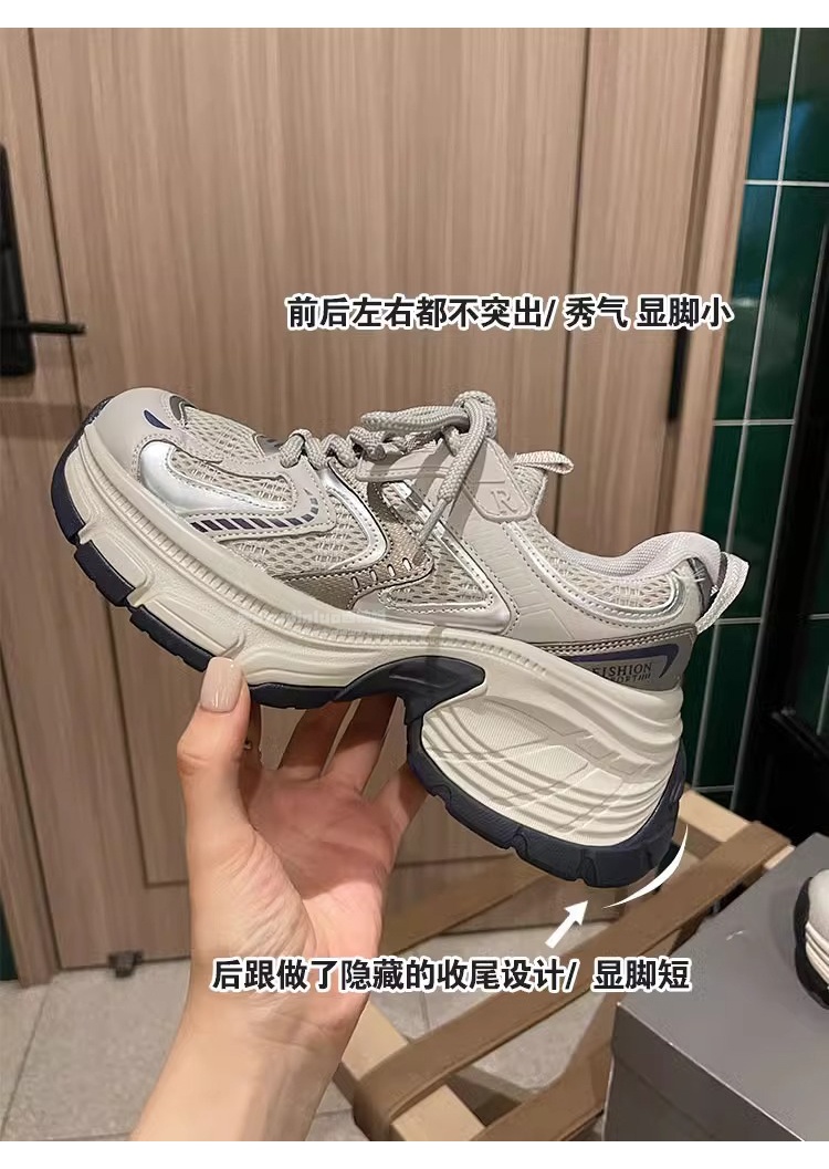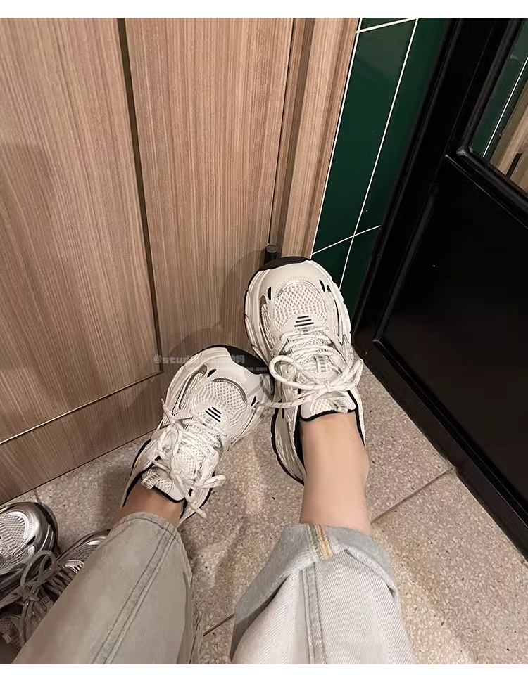 Hong Kong Thick-Soled Sneakers for Women 2025 Spring and Autumn Popular Style for Petite Individuals Versatile Height-Increasing Casual Shoes Non-Slip Sole Dad Shoes