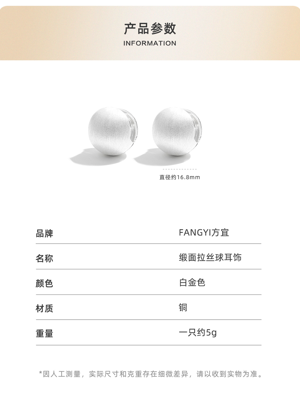 Fang Yi Satin Brushed Ball Earrings Gentle and High-End Versatile Ear Clips Fy033