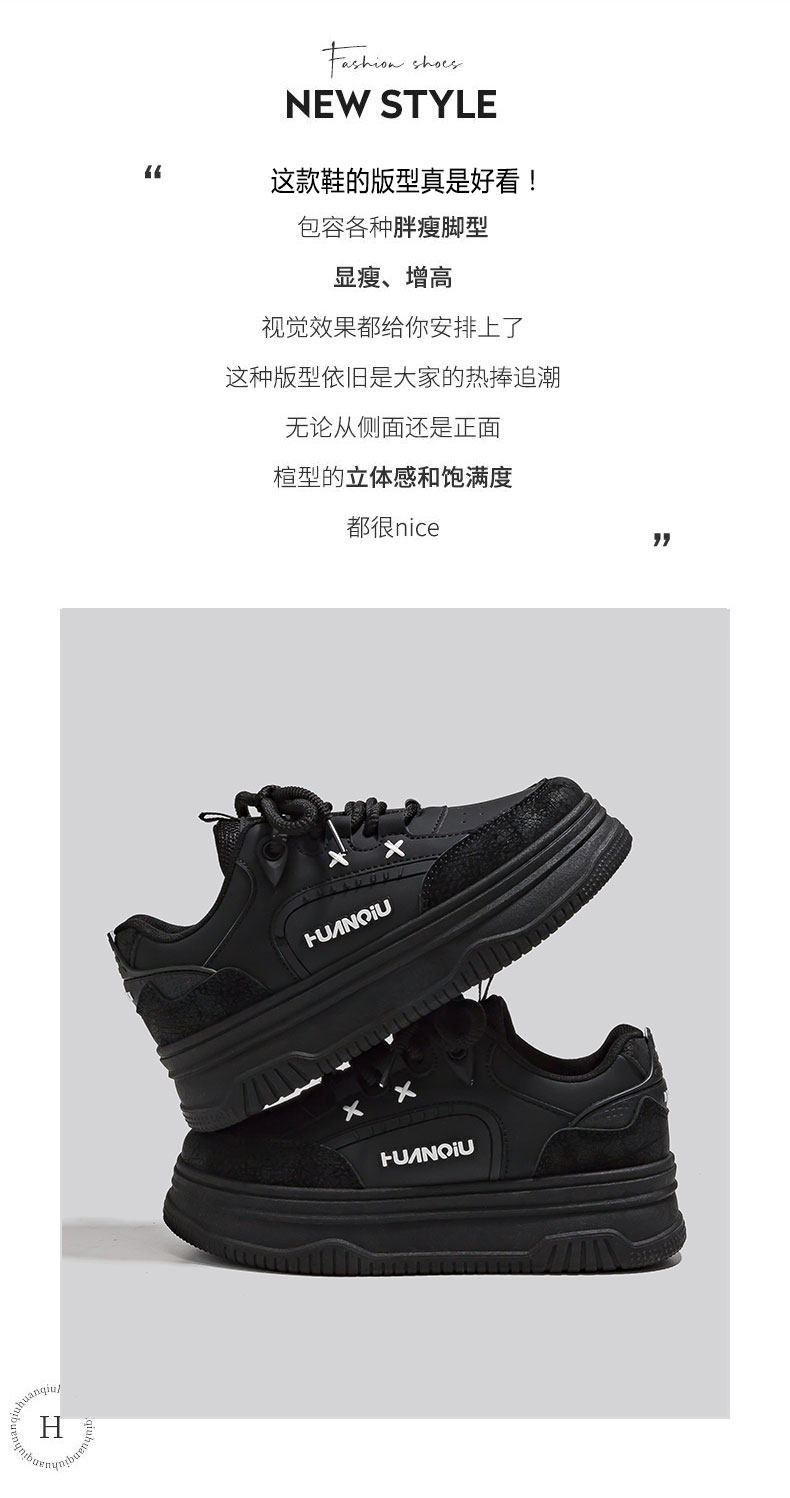Genuine Official Global Brand High-Quality Thick-Soled Sneakers for Women, Versatile White Shoes, Spring Height-Increasing Lightweight Black Shoes
