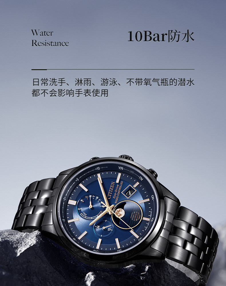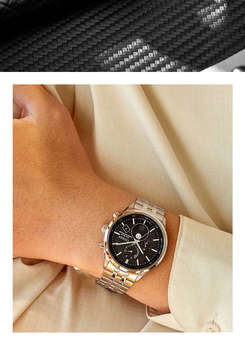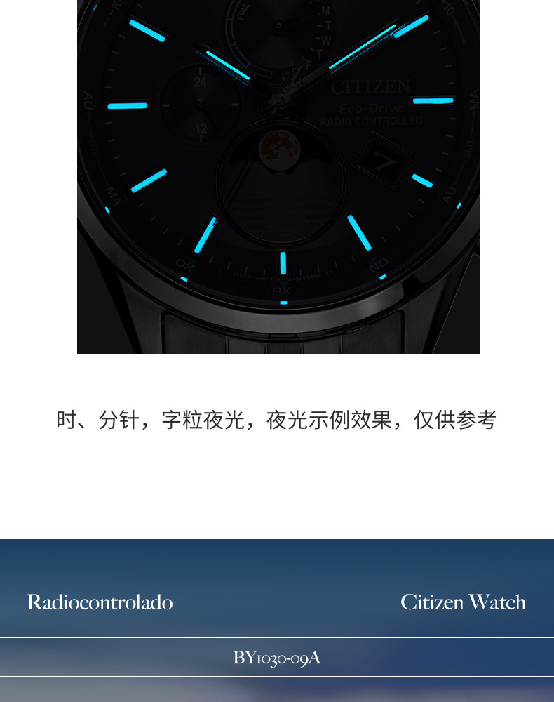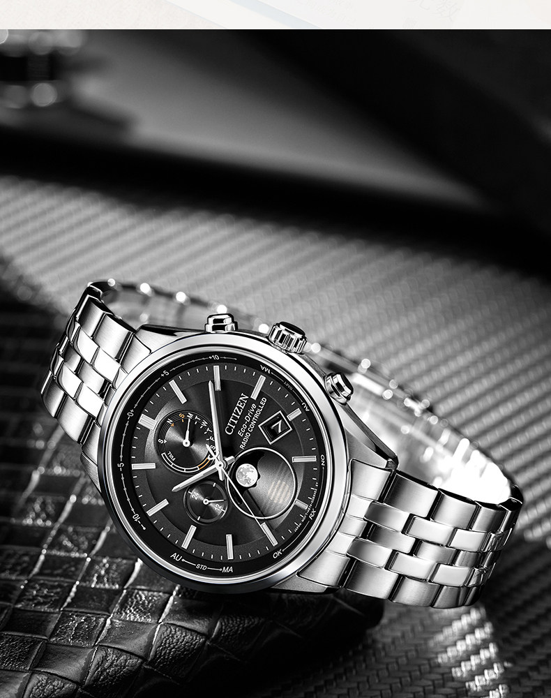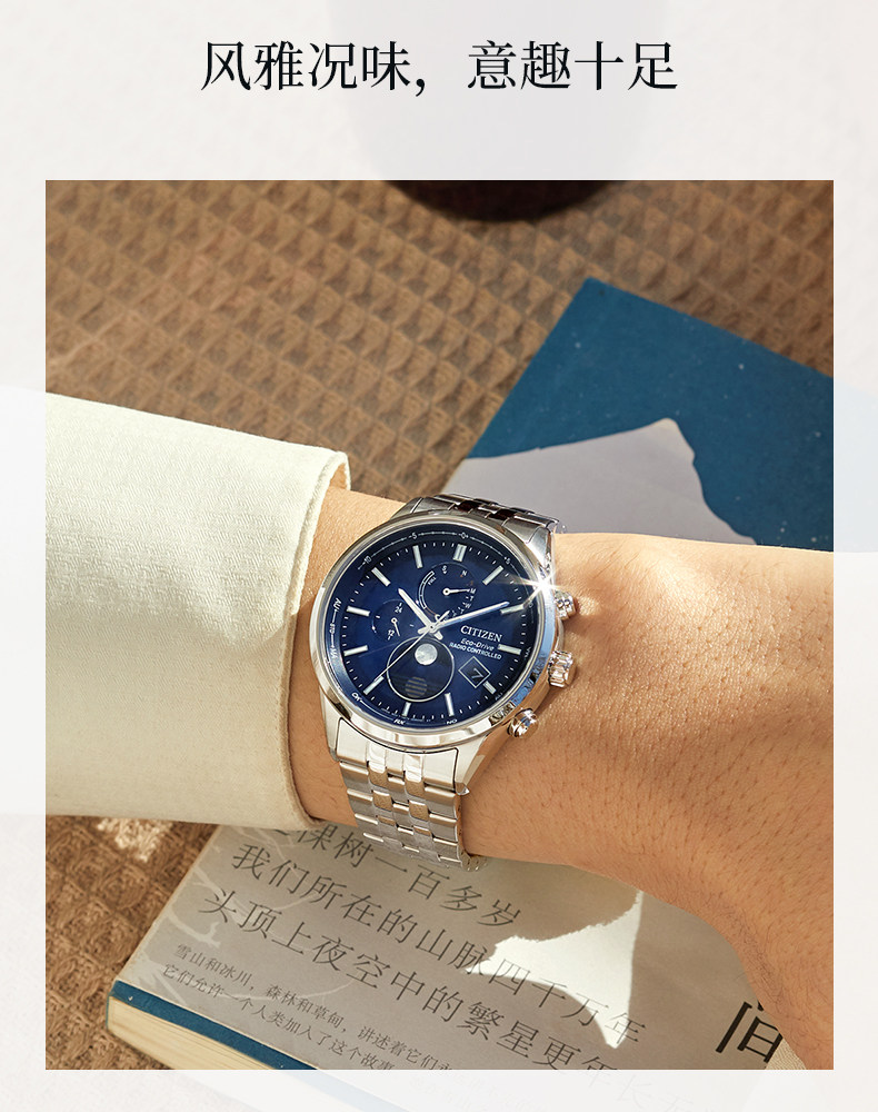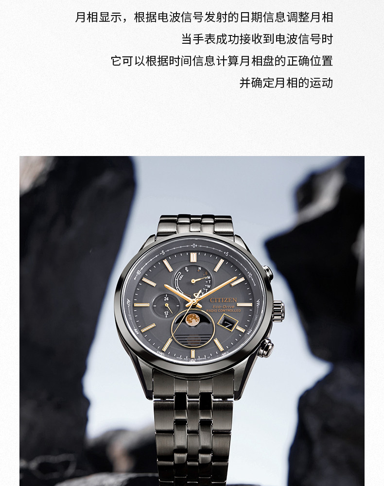 Citizen Official Flagship Store Eco-Drive Moon Phase Watch Radio-Controlled Chronograph Steel Band Fashion Men's Watch By1030