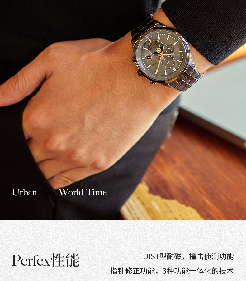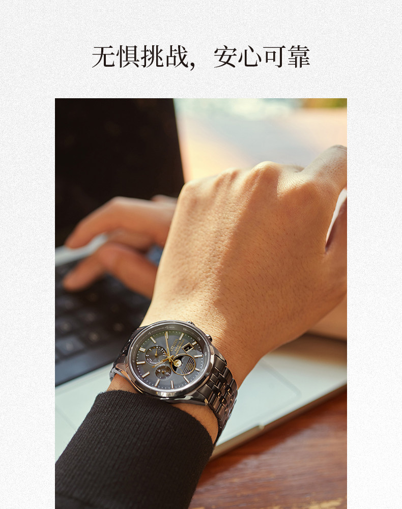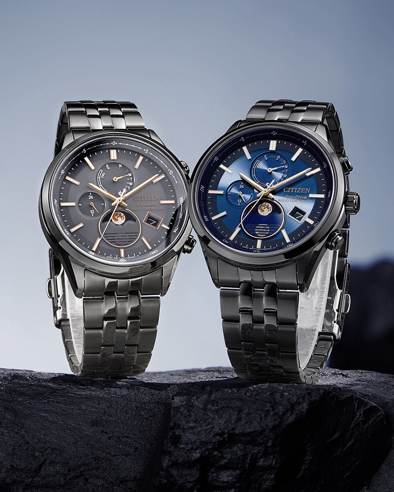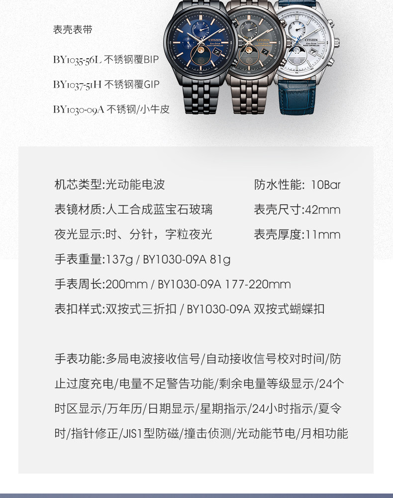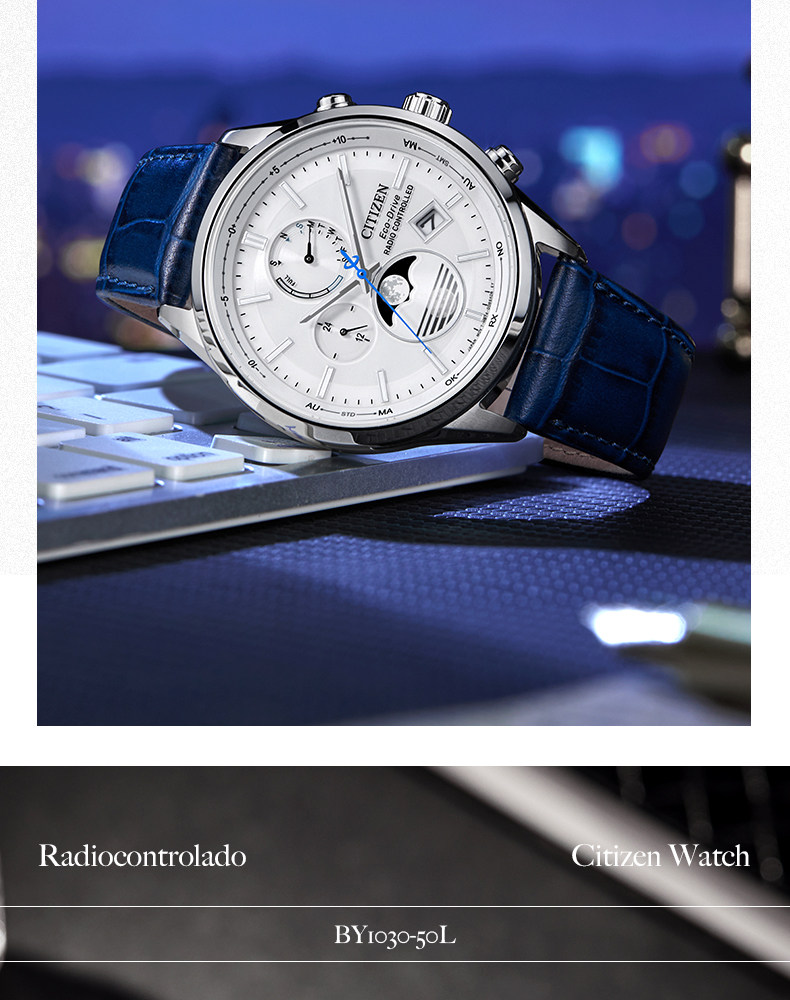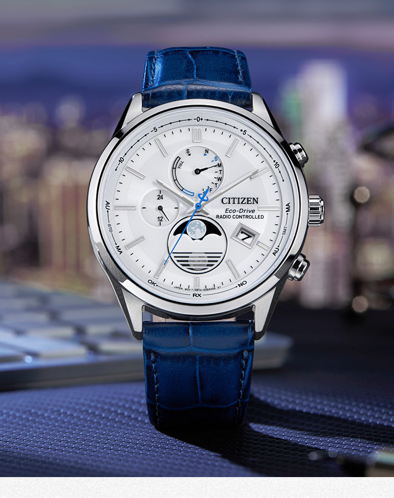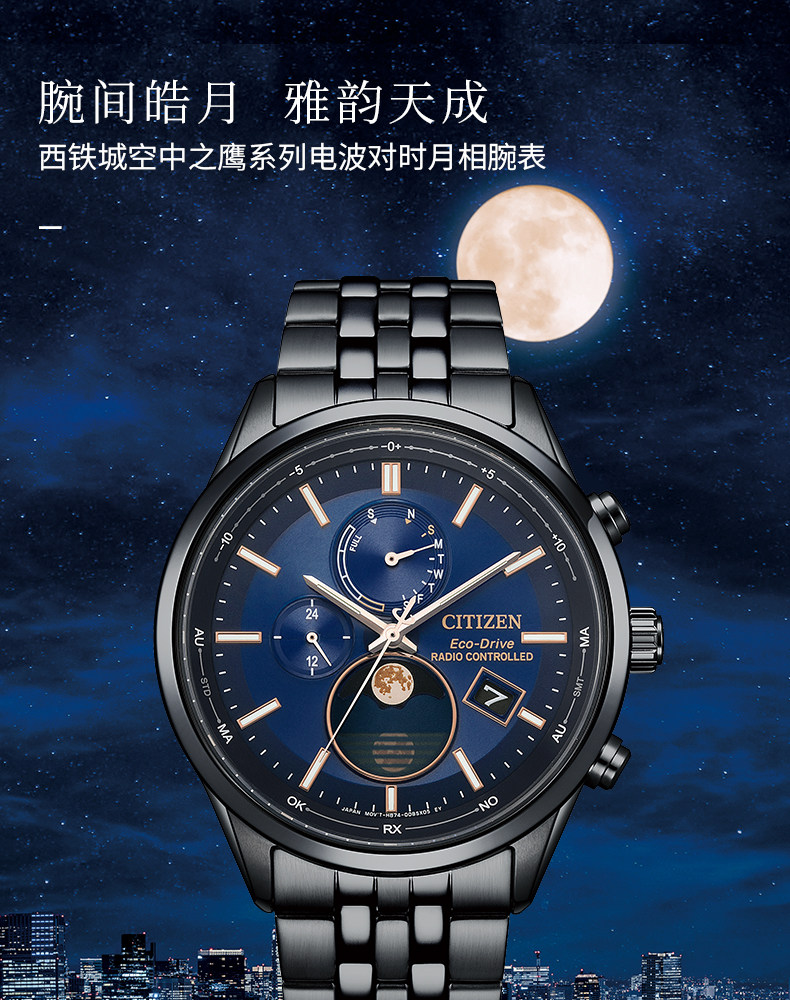 Citizen Official Flagship Store Eco-Drive Moon Phase Watch Radio-Controlled Chronograph Steel Band Fashion Men's Watch By1030