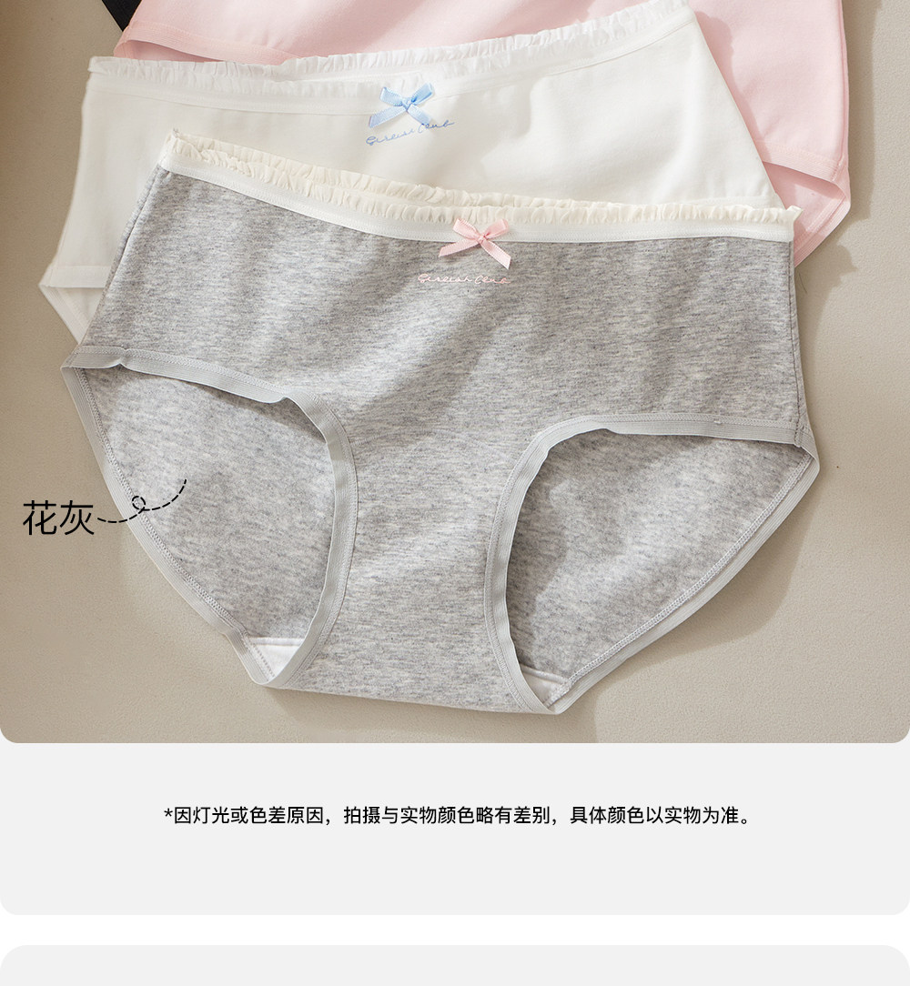 Women's Underwear, 100% Pure Cotton, Antibacterial, Extended Crotch, 2026 Xinjiang Cotton, Sweet Triangle Panties with Bow for Girls