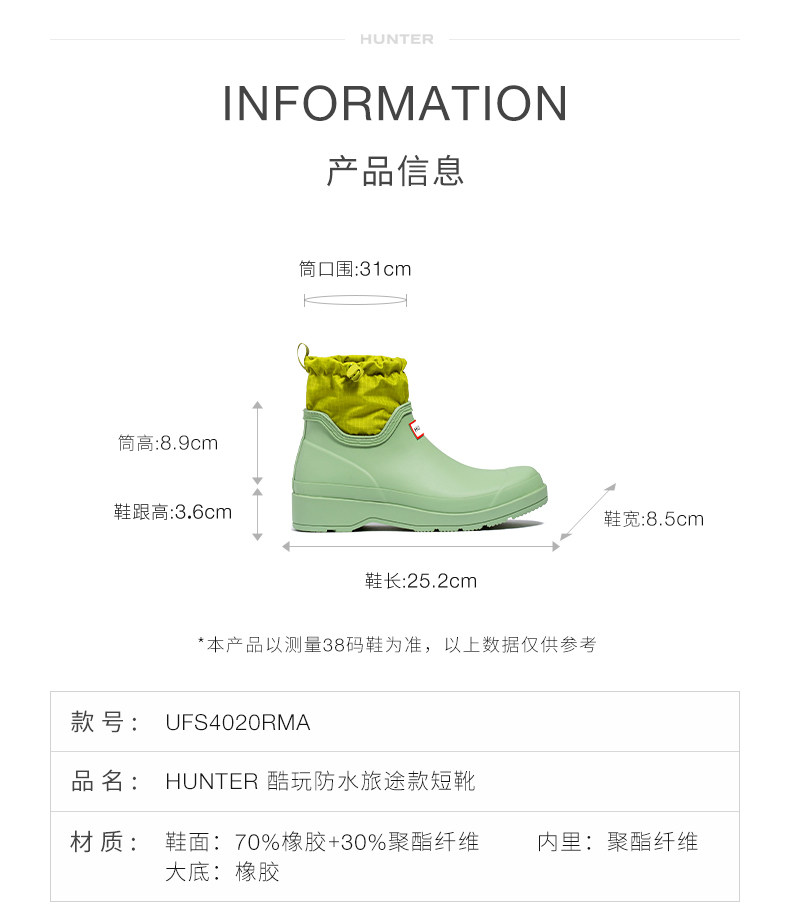 Hunter Unisex Cool Rain Boots Short Boots Couple Style Outdoor Camping Waterproof Non-Slip Travel Rain Boots