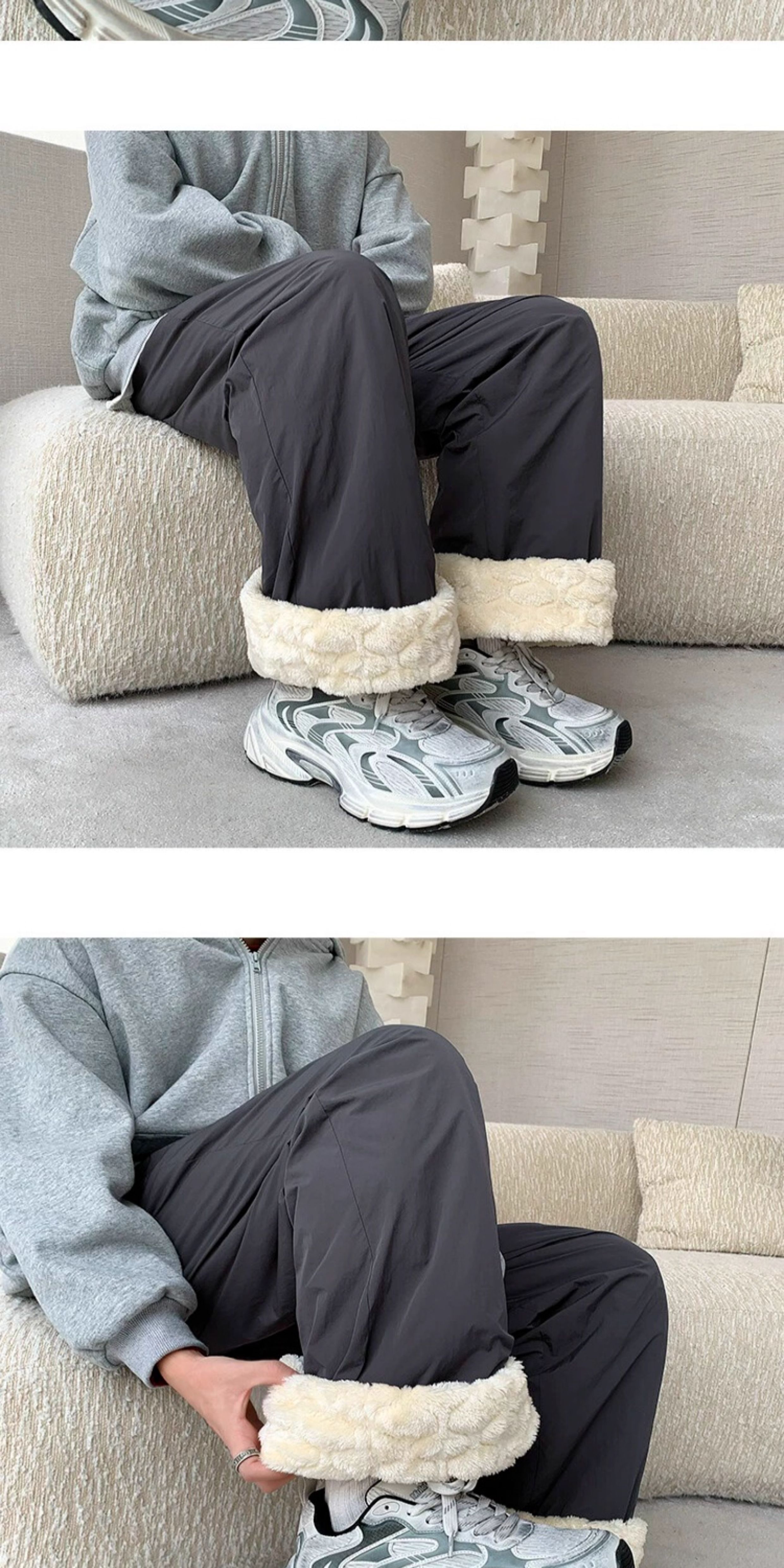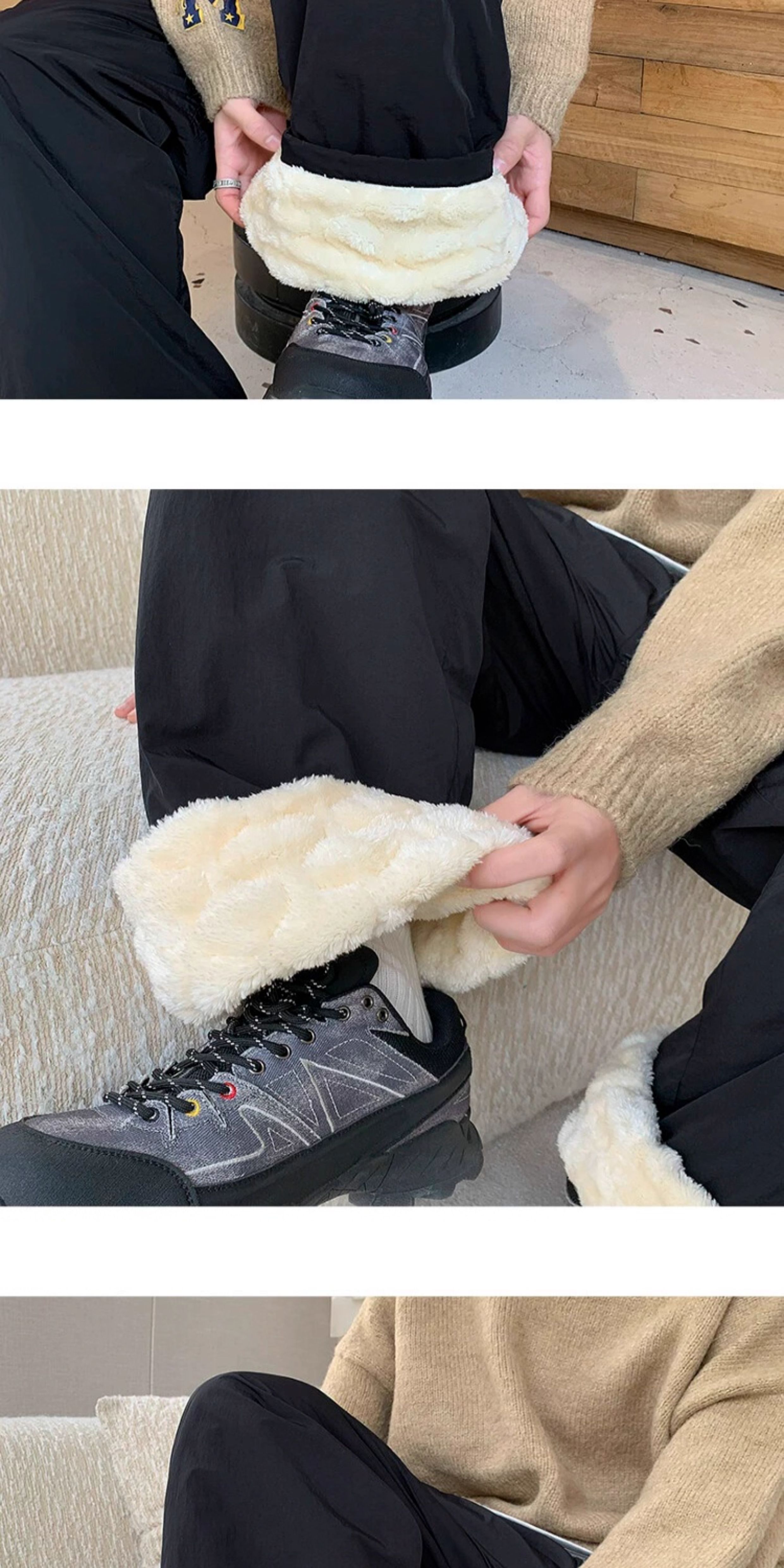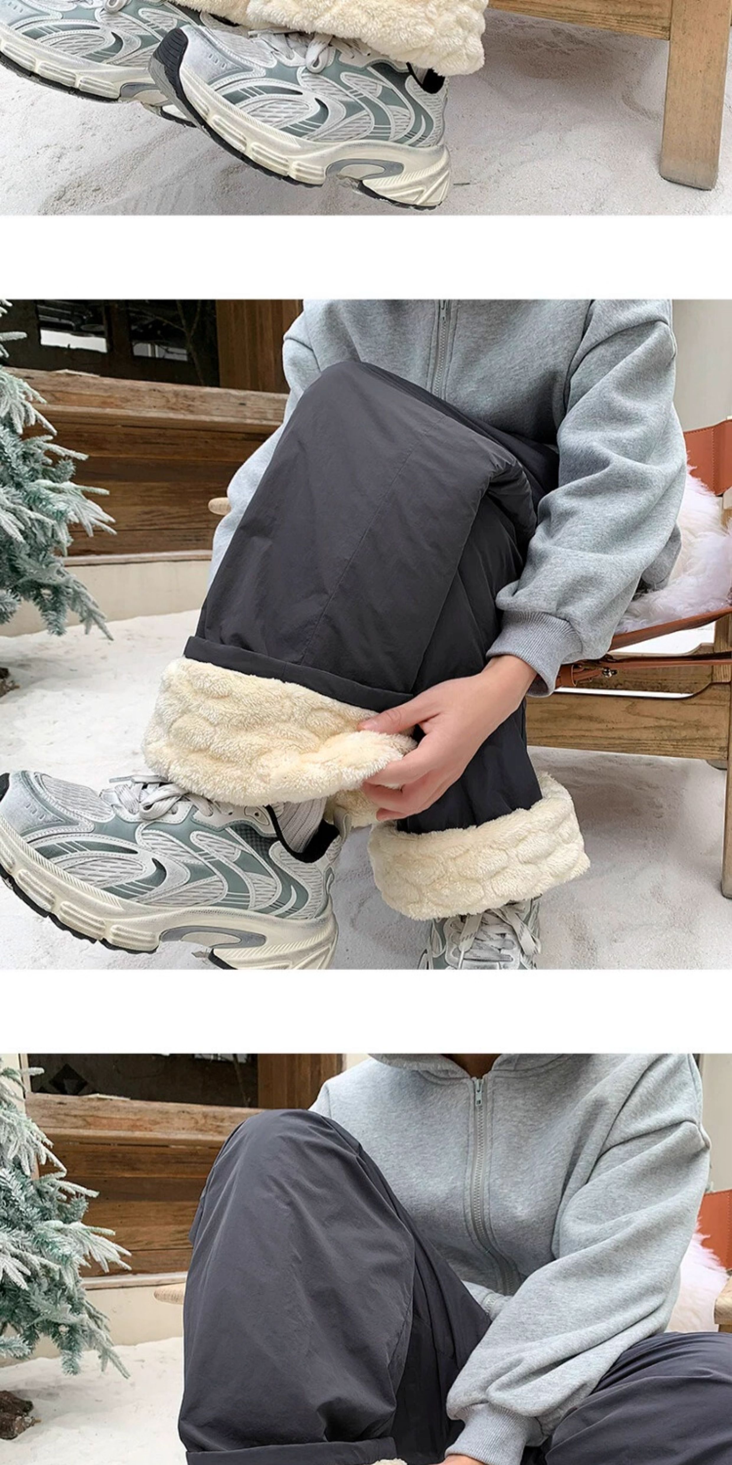 Northeast minus 40 degrees cotton pants women's winter Outwear Fleece-lined thick lamb wool pants Mohe cold windproof down pants