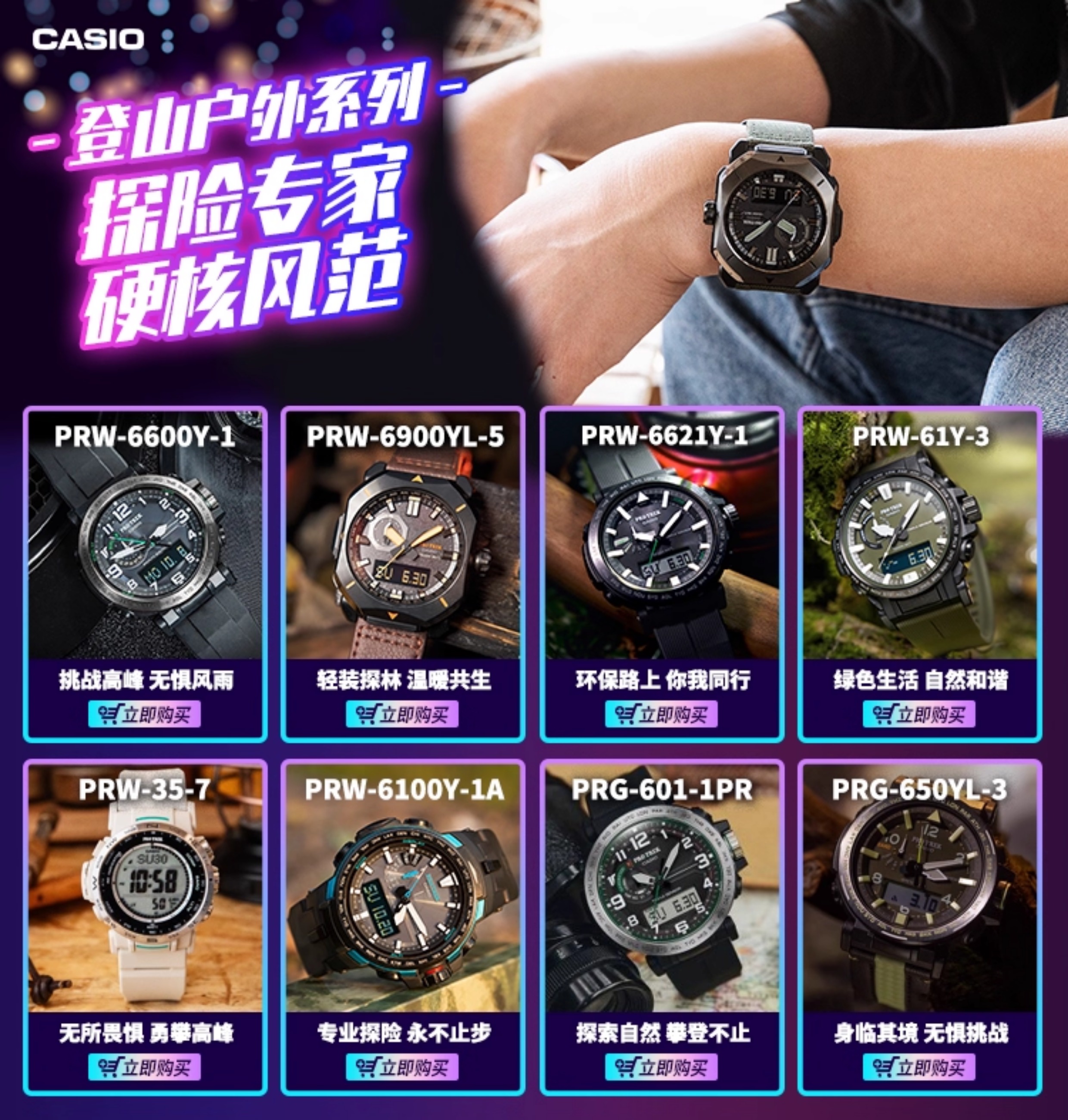 Casio Watch for Men, Baishan Limited Edition Black Warrior, Mountaineering Outdoor Hiking, Rotatable Dial, Gift Prj-B001