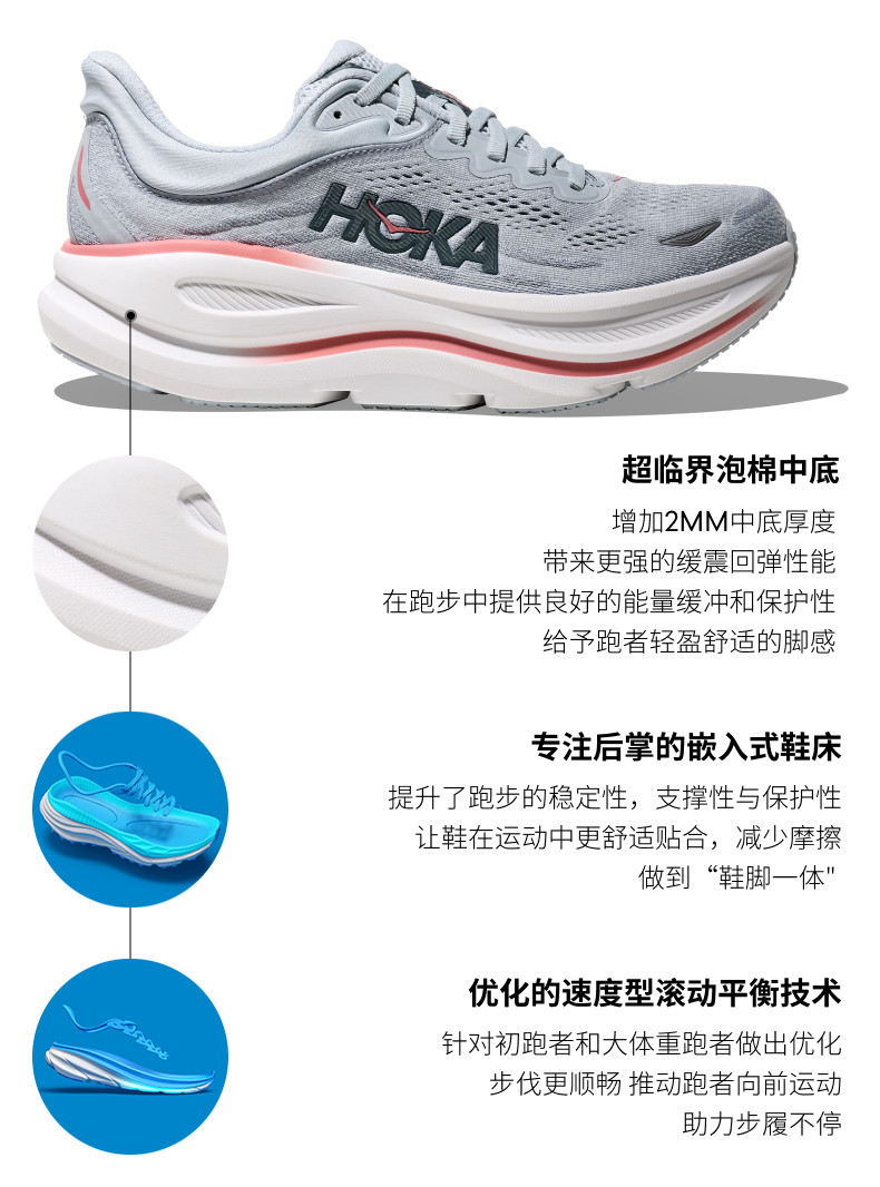 Hoka's New Women's Spring Bondi 9 Road Running Shoes Bondi 9 Are Lightweight, Comfortable, Cushioning, and Non-Slip