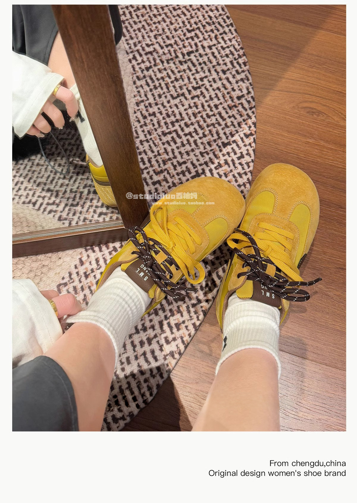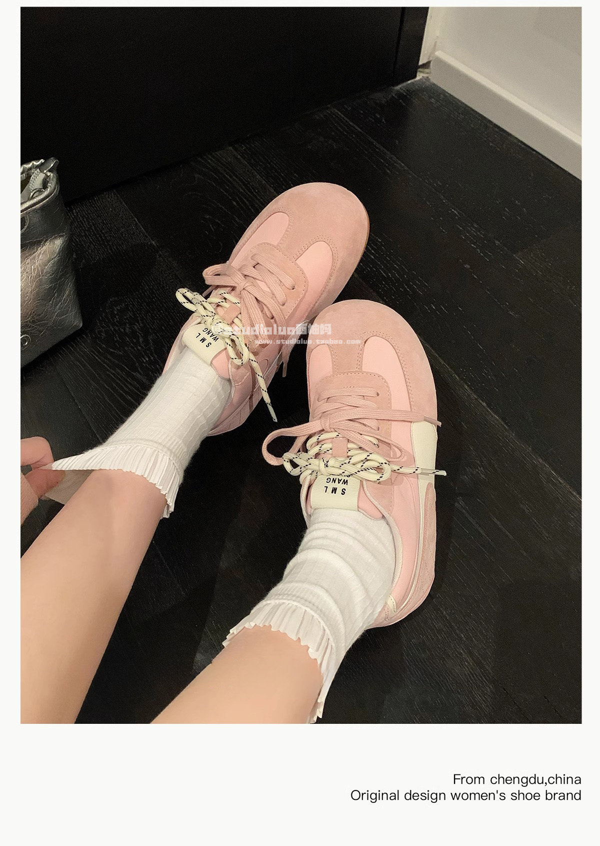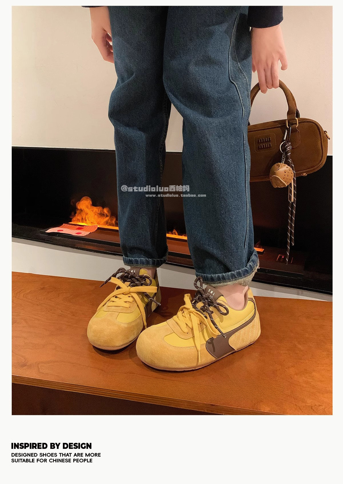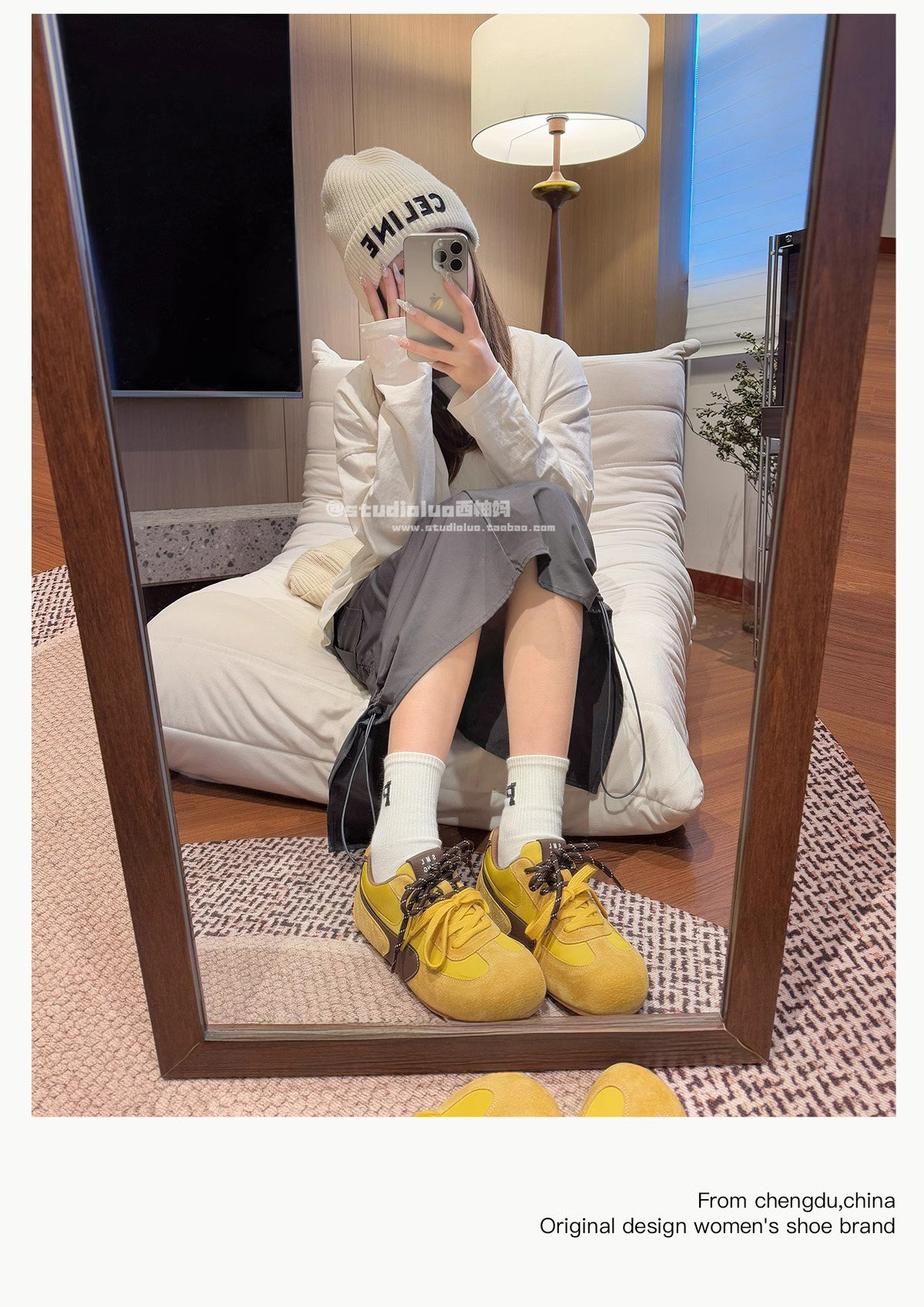 Hong Kong Retro Soft-Soled Casual Shoes for Women 2026 Spring and Autumn Candy-Colored Mango Toe German Training Shoes Double Laces Fleece-Lined Cotton Shoes
