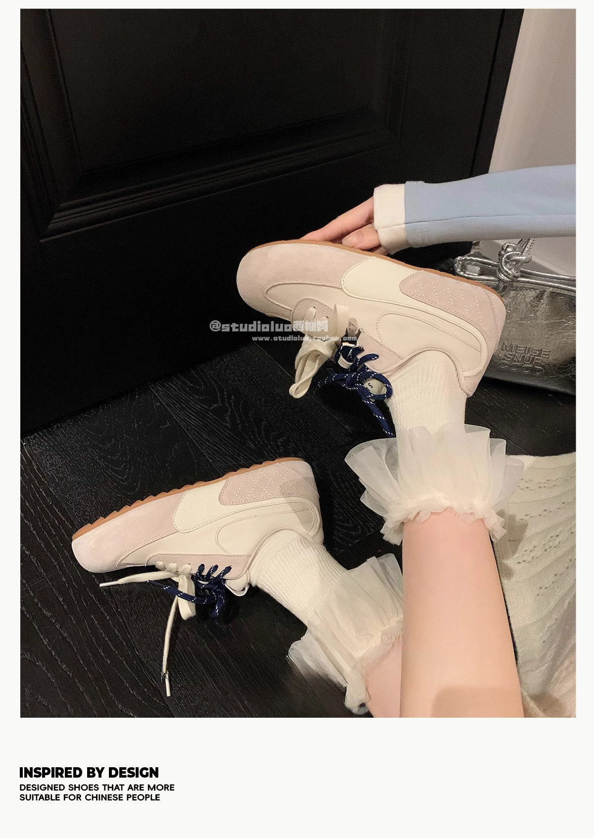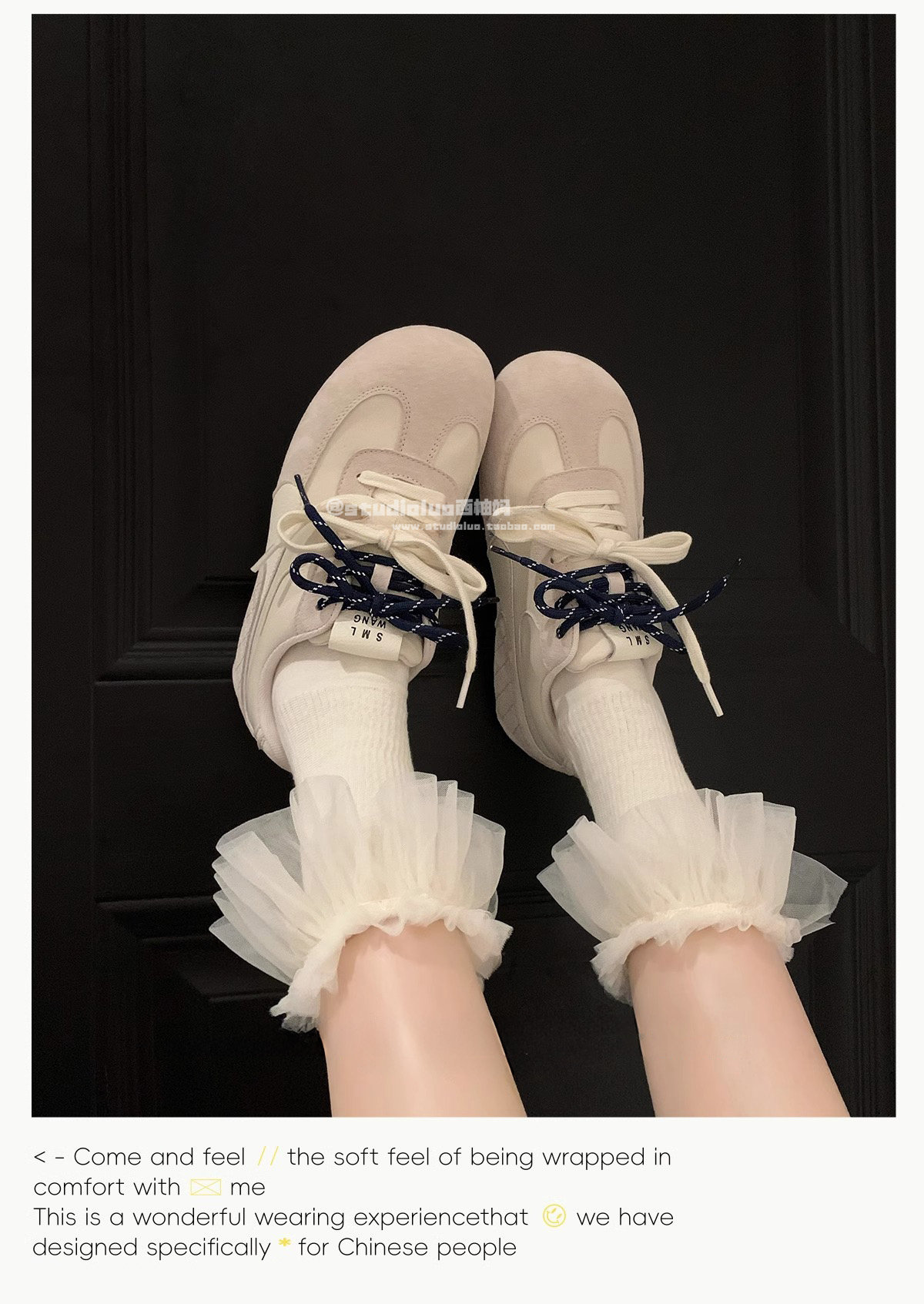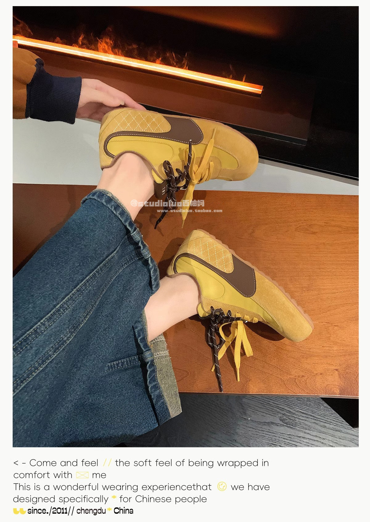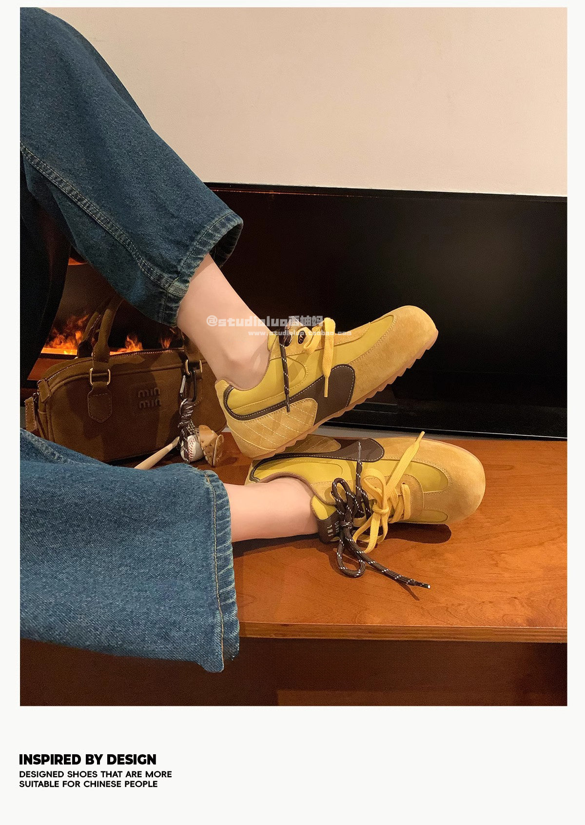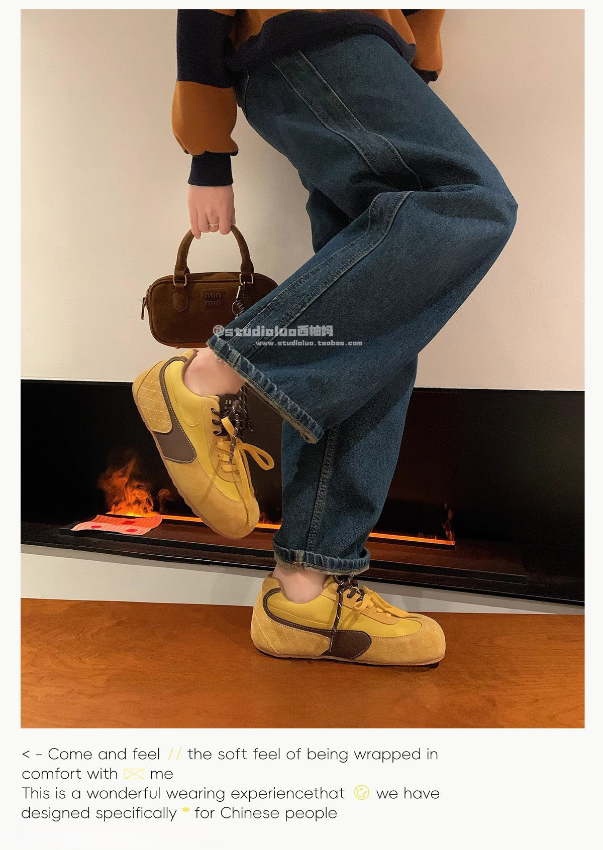 Hong Kong Retro Soft-Soled Casual Shoes for Women 2026 Spring and Autumn Candy-Colored Mango Toe German Training Shoes Double Laces Fleece-Lined Cotton Shoes
