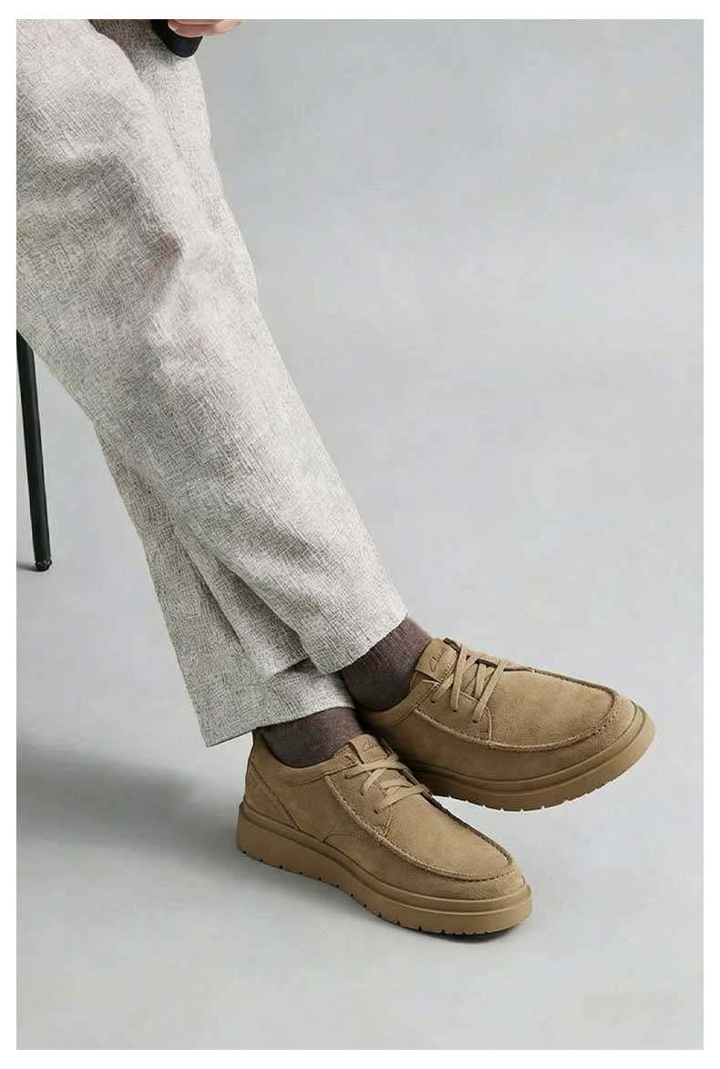 Clarks Poldenmoc Men's Shoes Spring Fashion British Style Lightweight Thick-Soled Old Money Style Casual Leather Shoes for Men