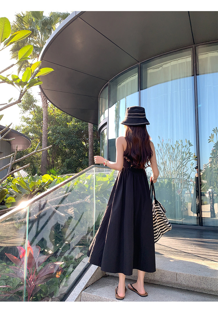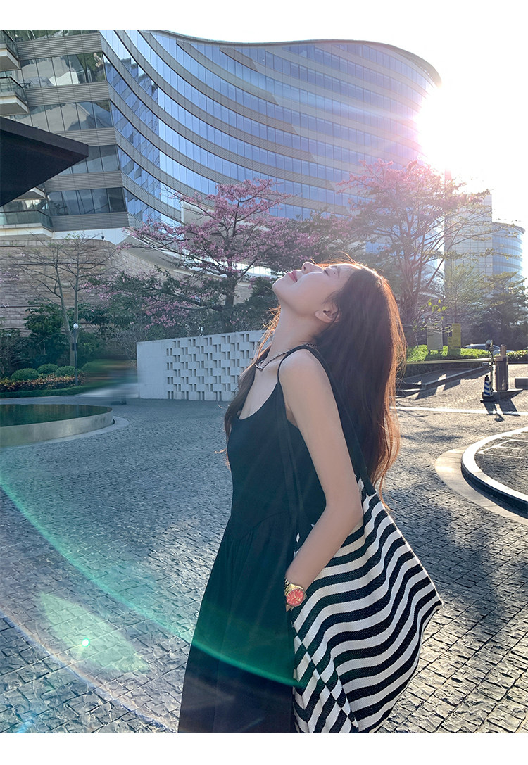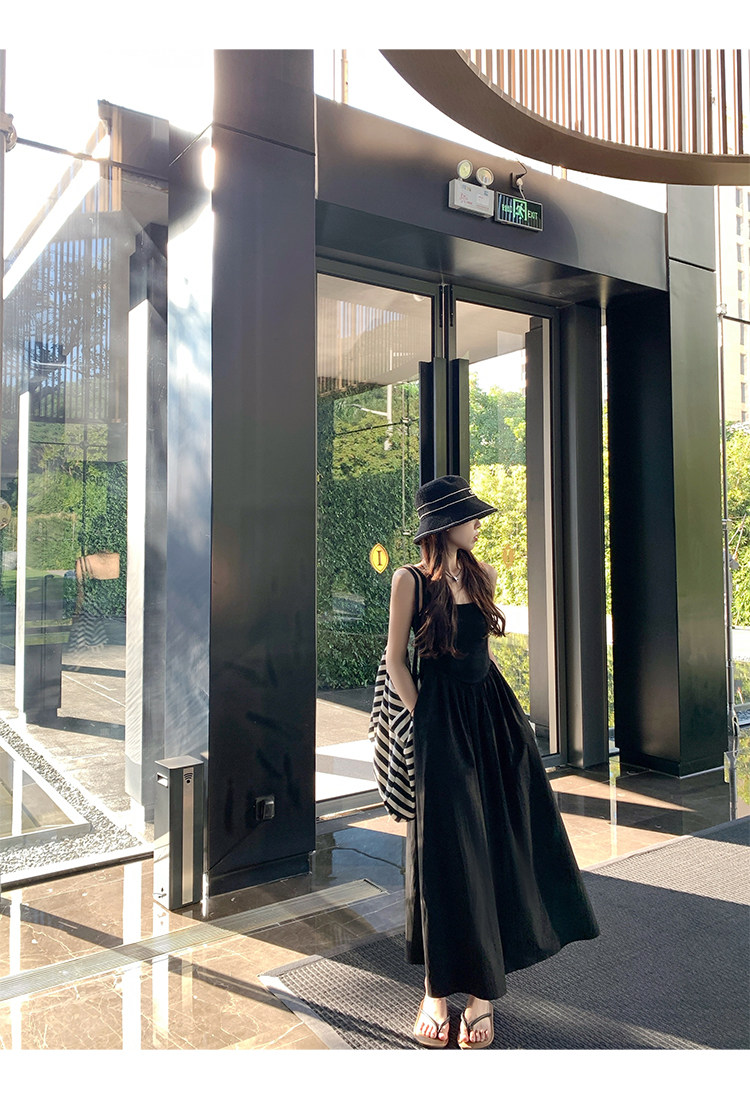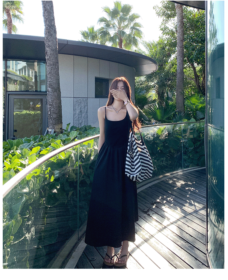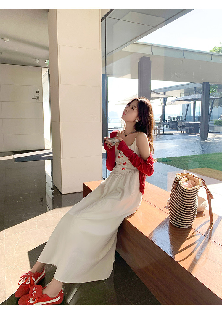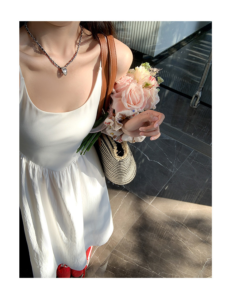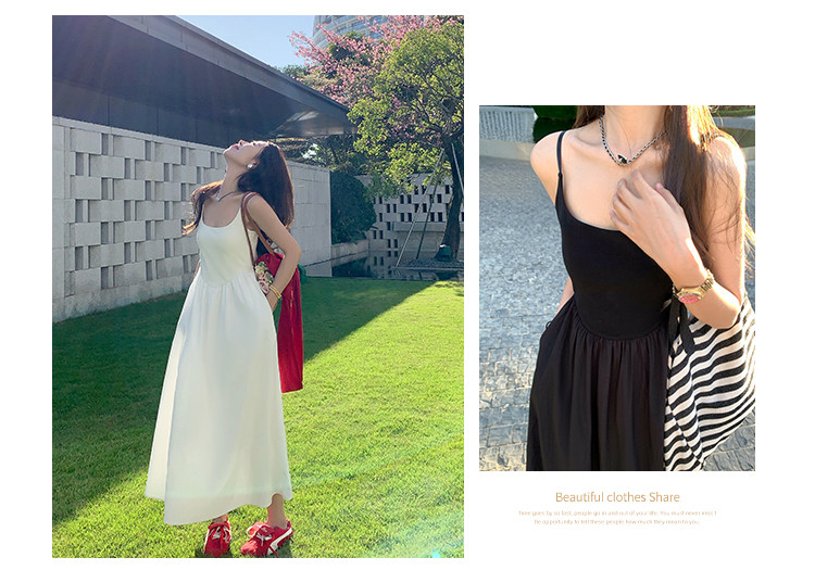 Zeng Xiaoxian High-End White Spaghetti Strap Dress for Women, Summer Beach Vacation Long Dress Set