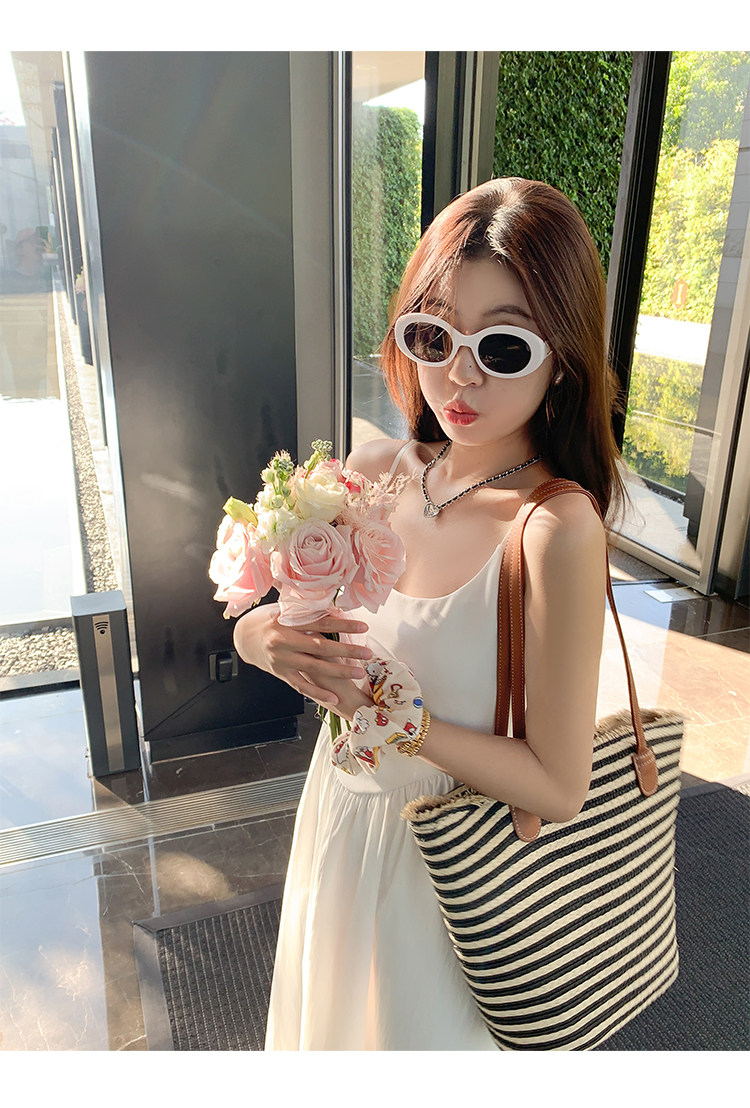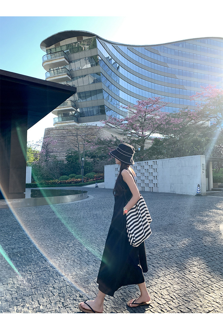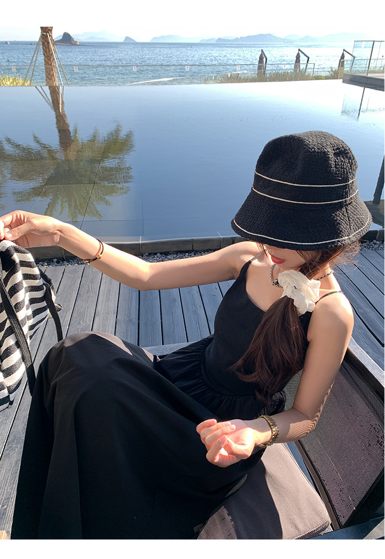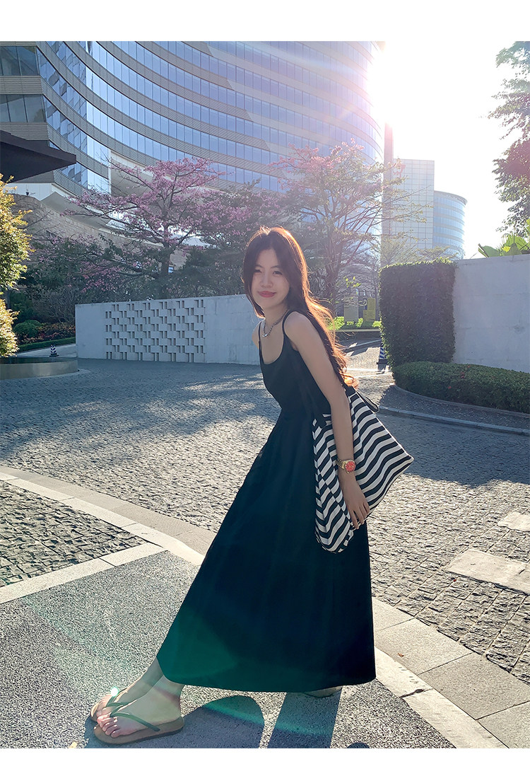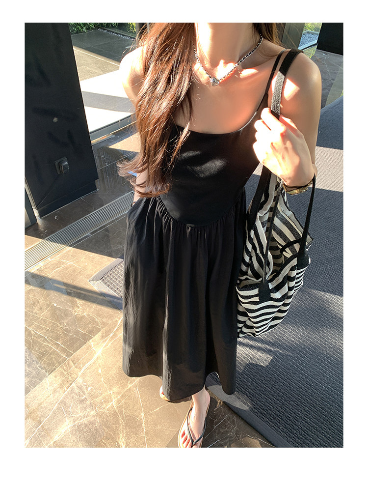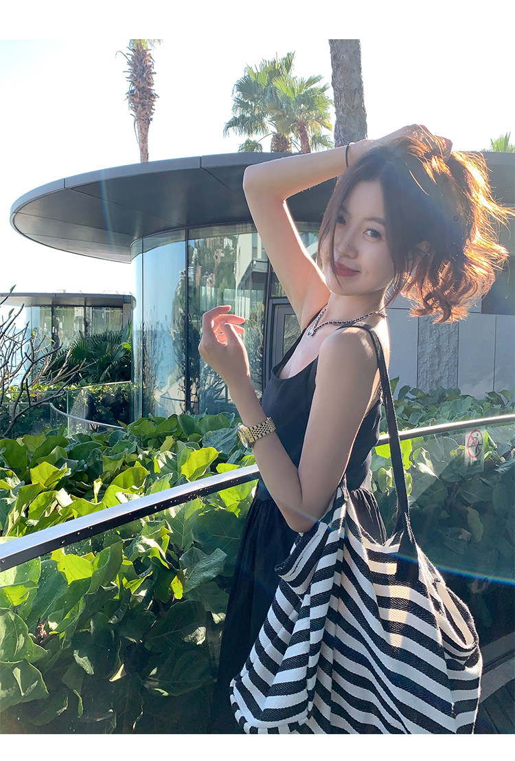 Zeng Xiaoxian High-End White Spaghetti Strap Dress for Women, Summer Beach Vacation Long Dress Set