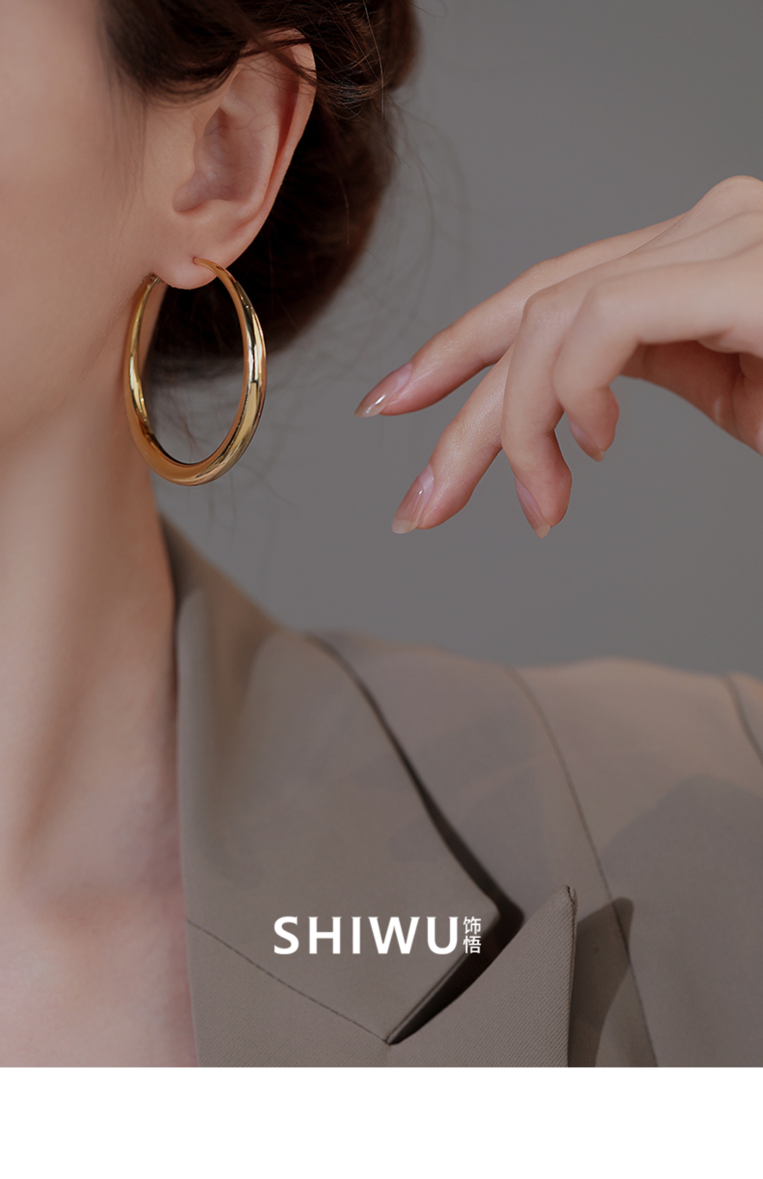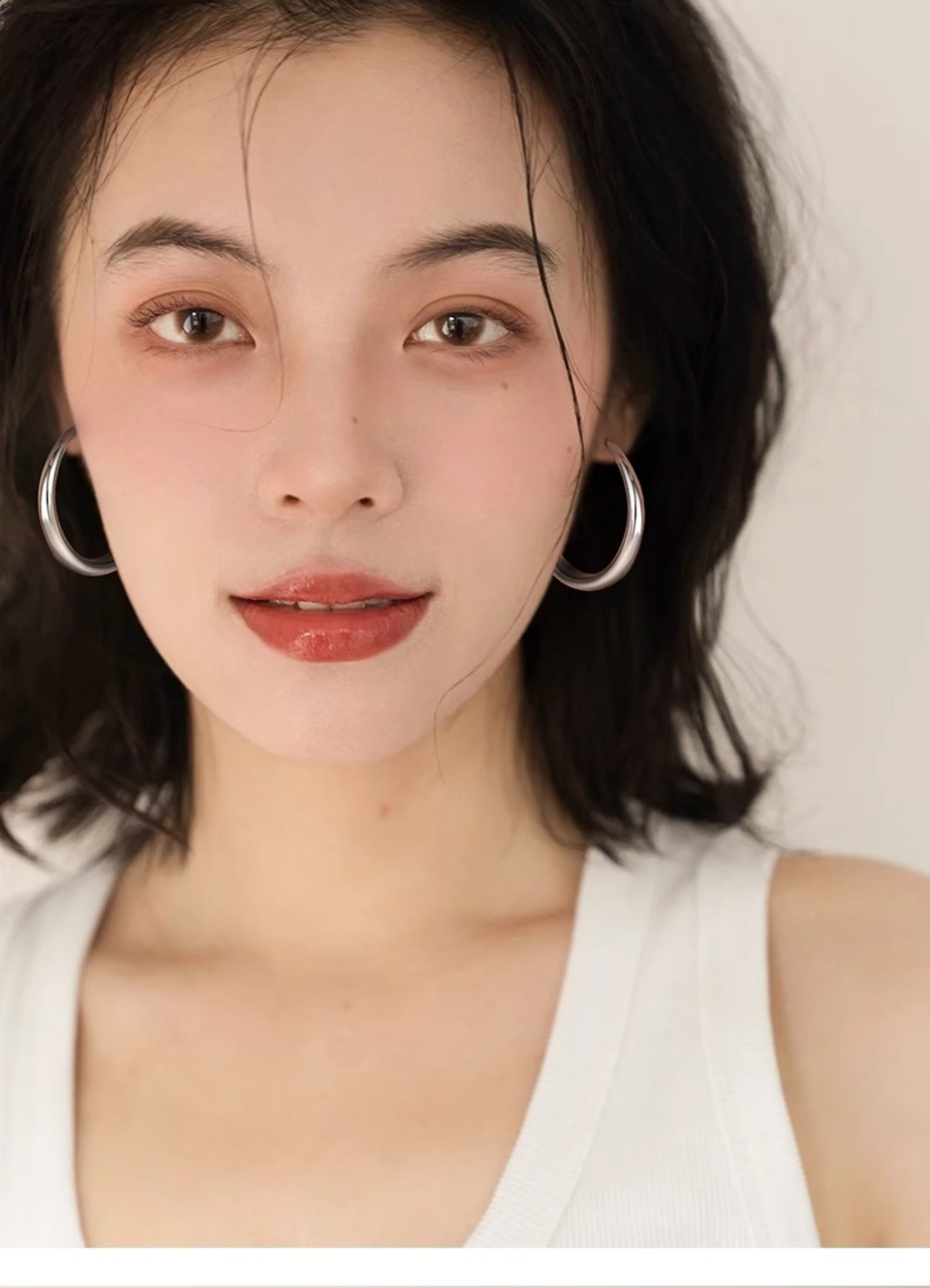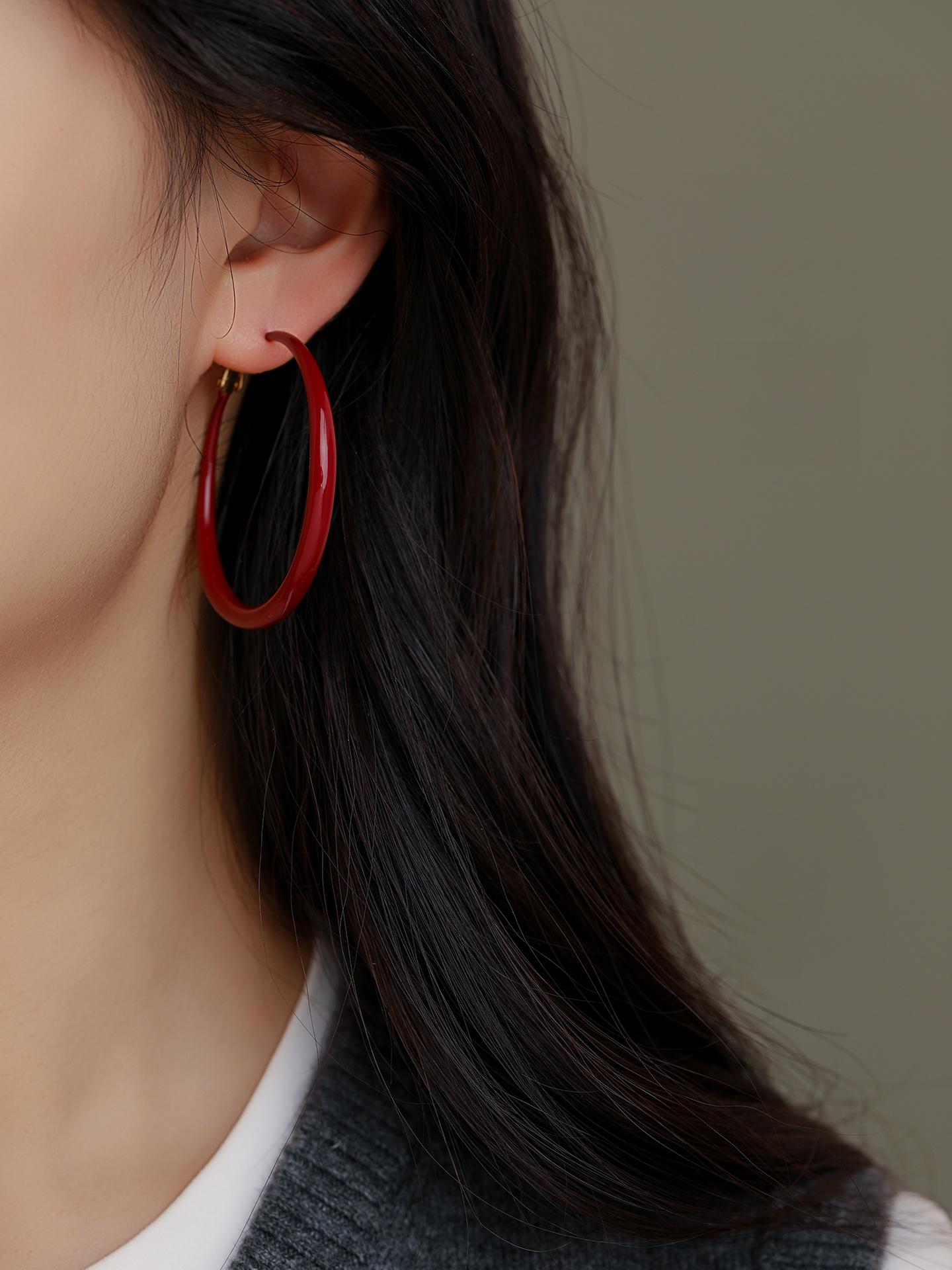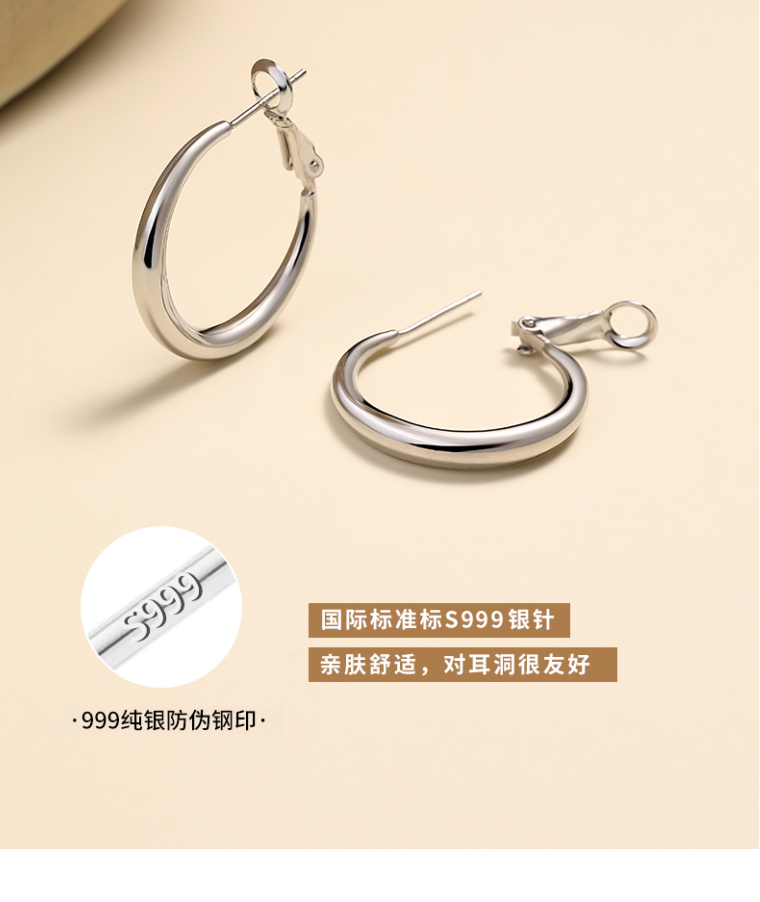 999 Pure Silver Earrings Hoop Large Circle Autumn and Winter Red Earrings Women's Hoop Earrings High-End Light Luxury Plain Hoop Ear Clips