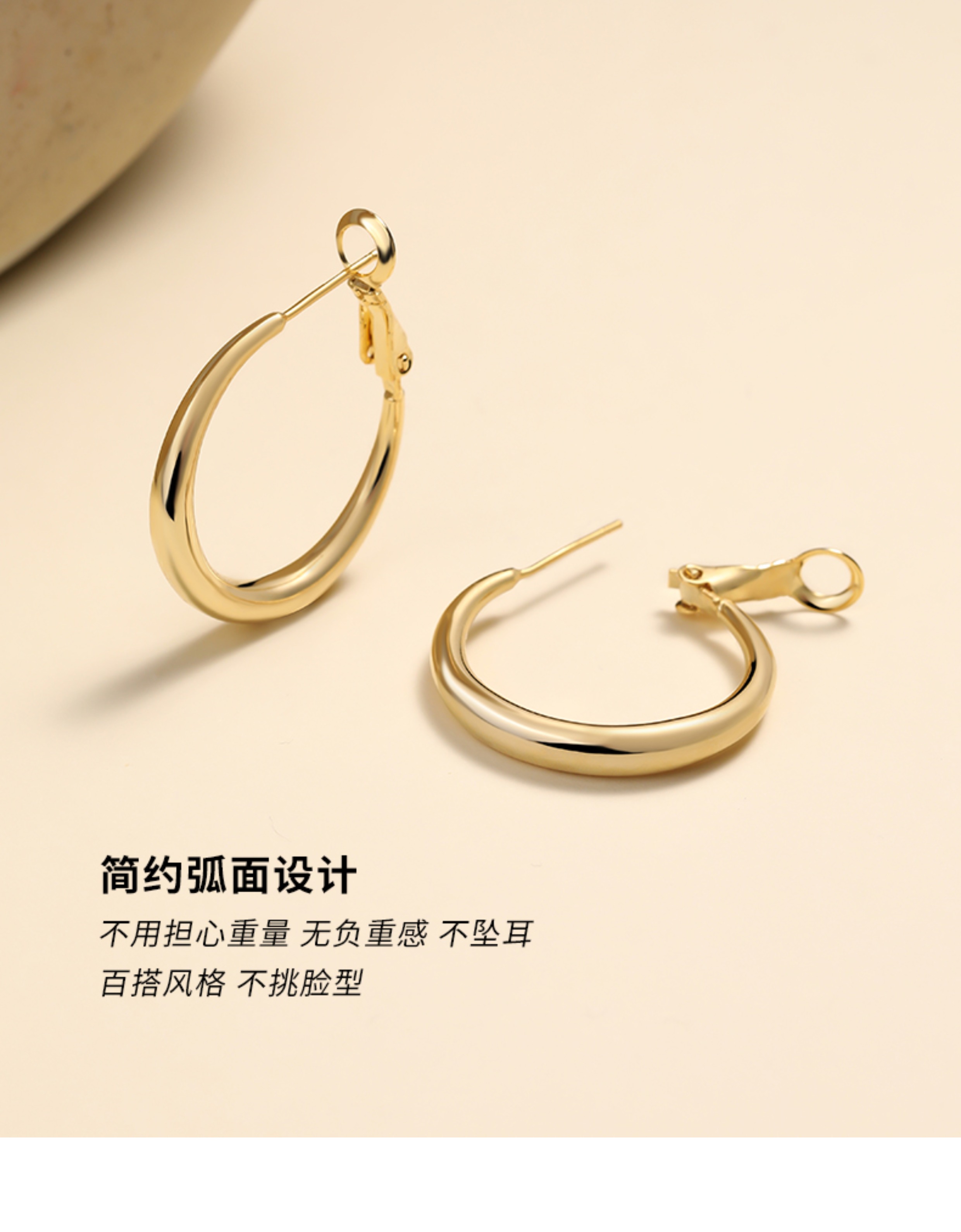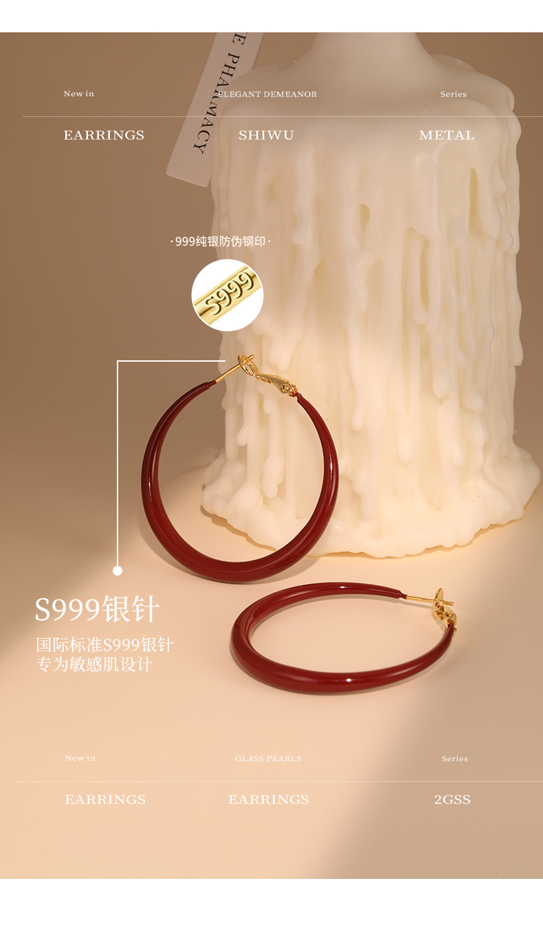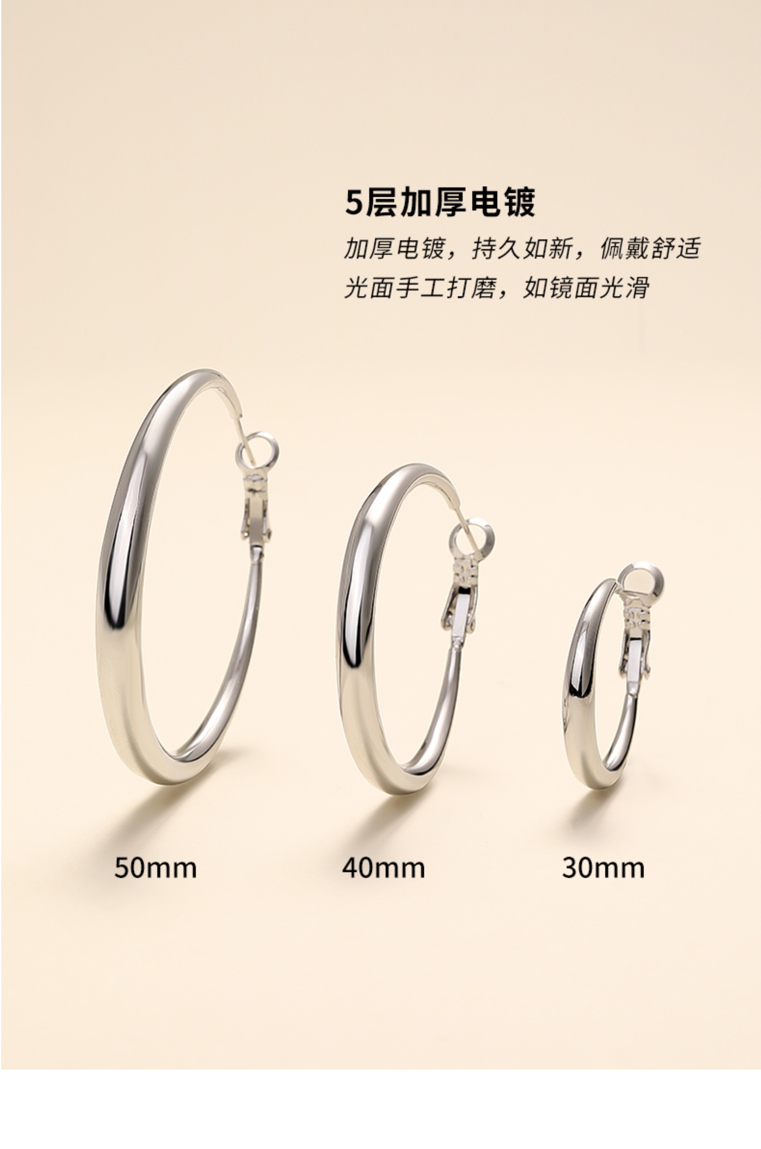 999 Pure Silver Earrings Hoop Large Circle Autumn and Winter Red Earrings Women's Hoop Earrings High-End Light Luxury Plain Hoop Ear Clips
