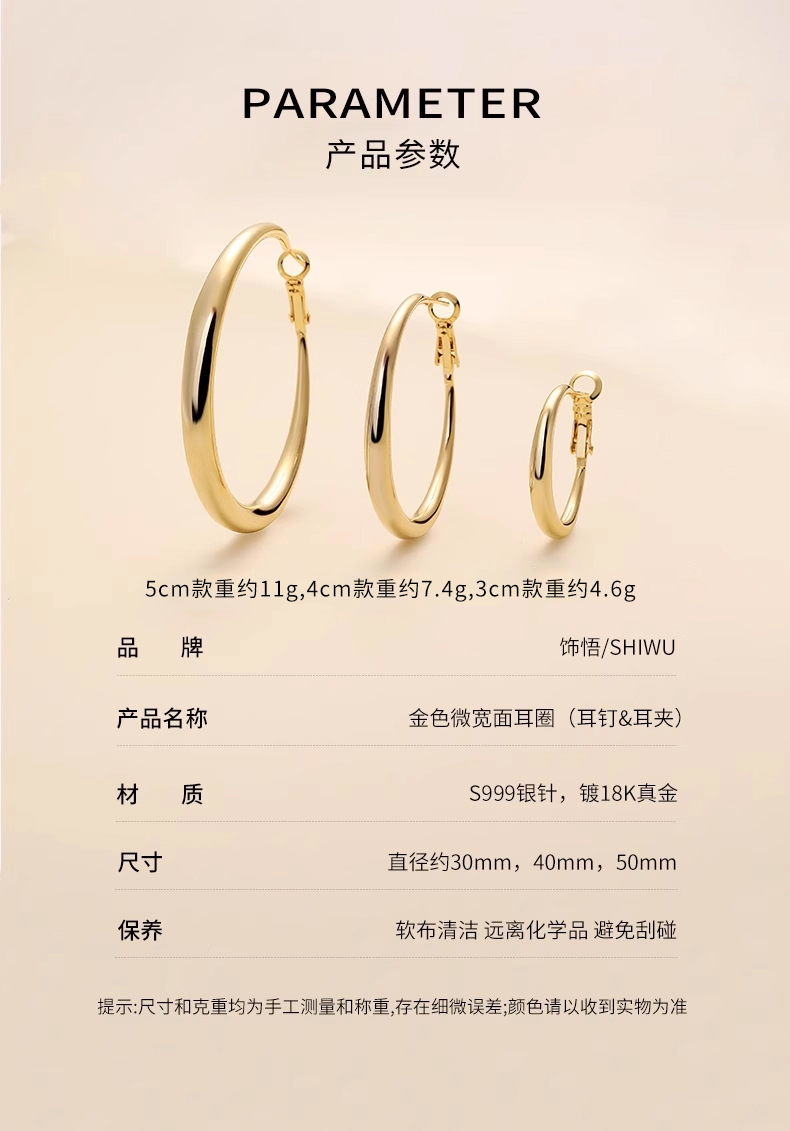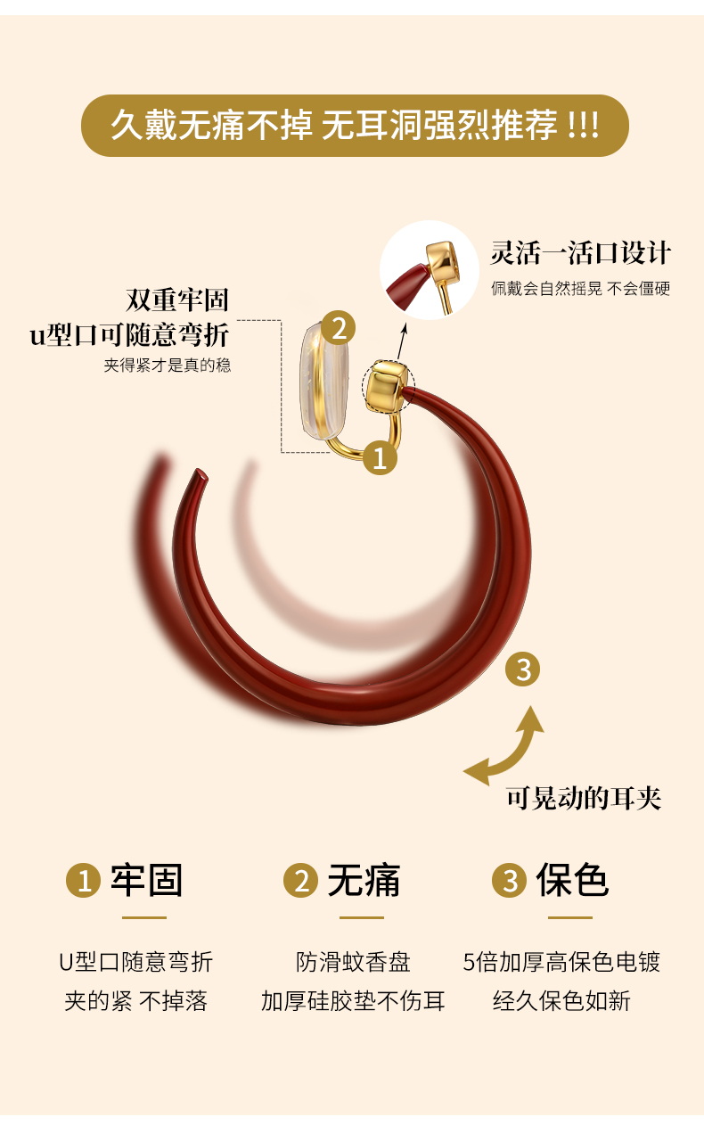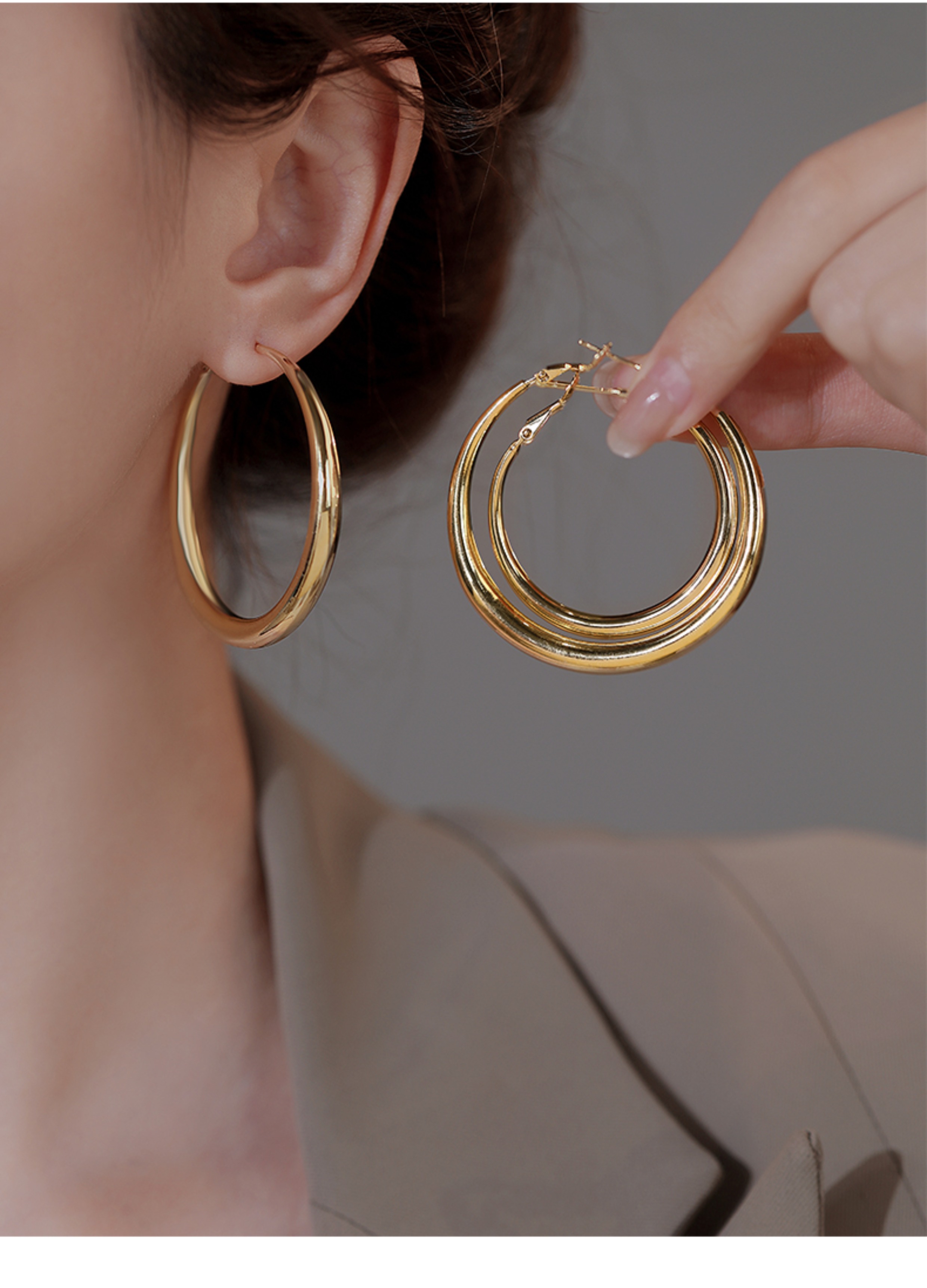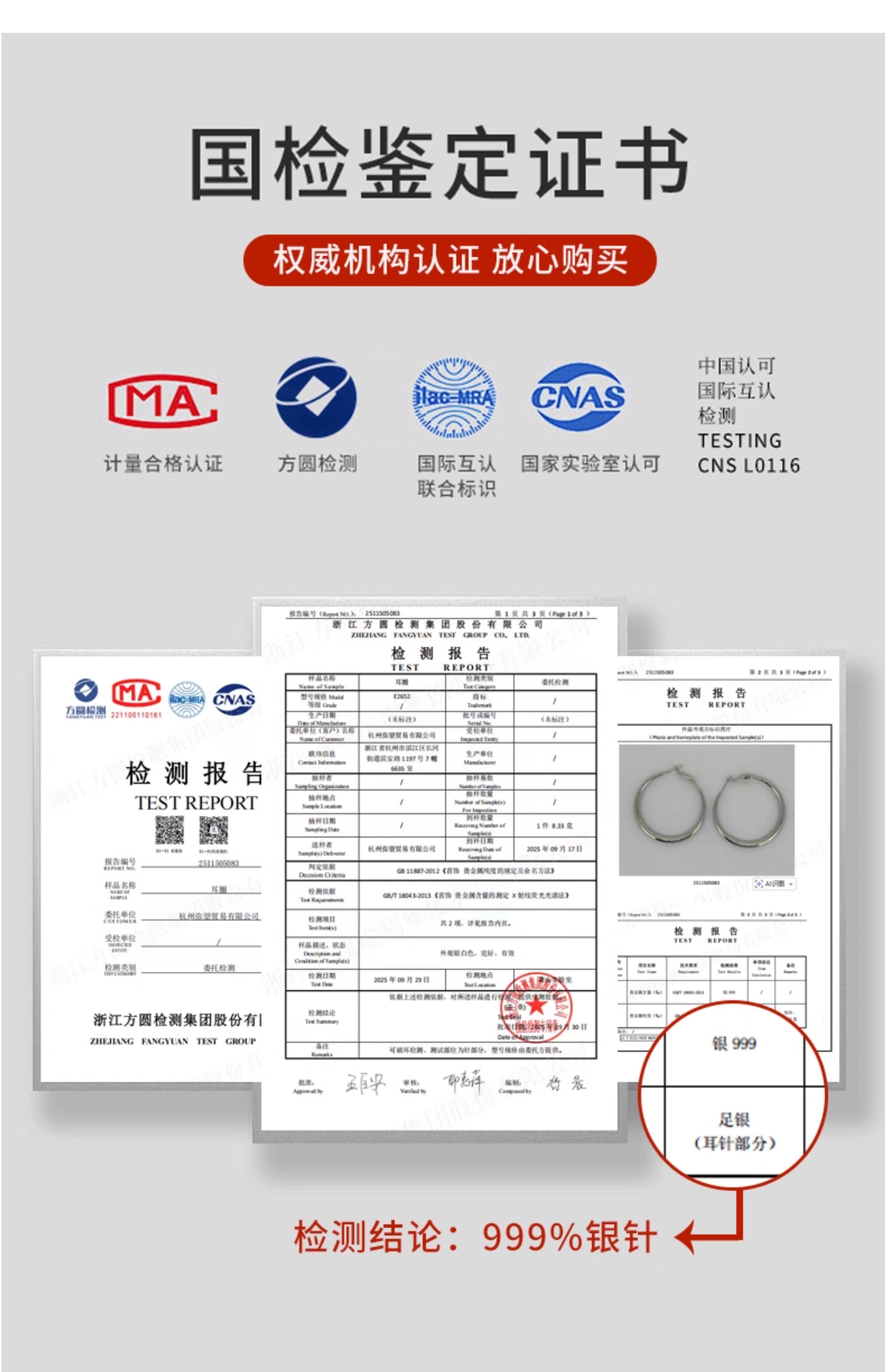 999 Pure Silver Earrings Hoop Large Circle Autumn and Winter Red Earrings Women's Hoop Earrings High-End Light Luxury Plain Hoop Ear Clips