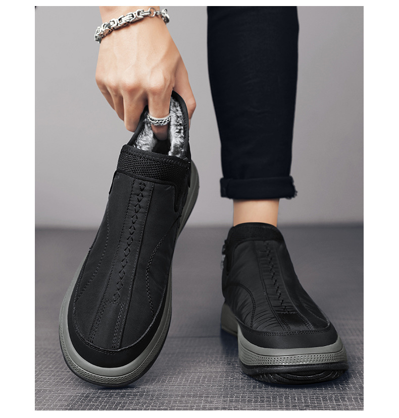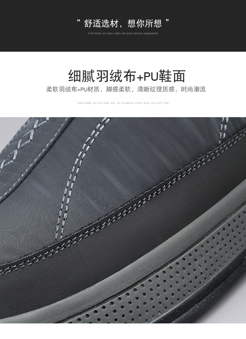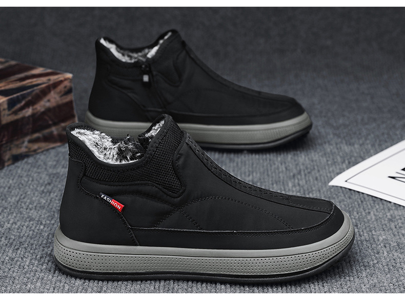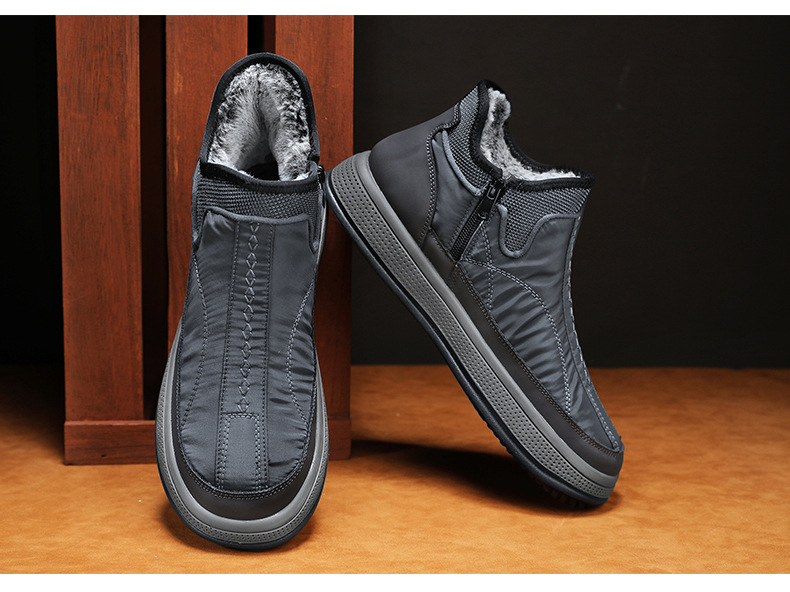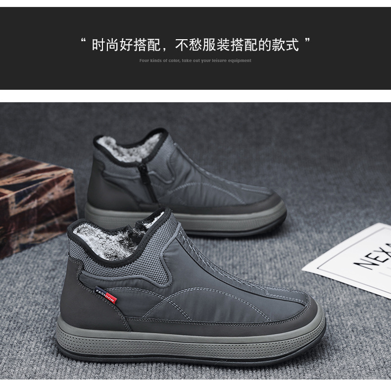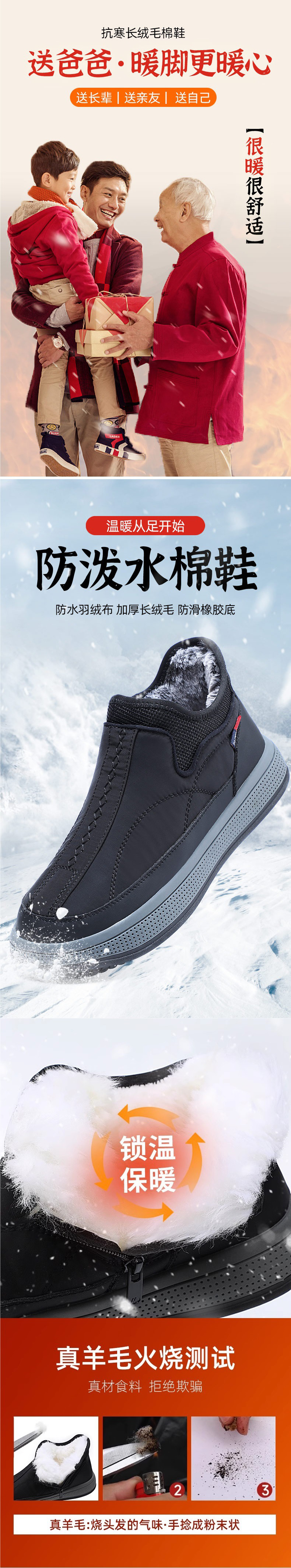 Old Beijing Cotton Shoes for Men, Winter Fleece-Lined, Thickened, Non-Slip, Warm Slip-On Shoes for the Elderly, Middle-Aged and Older Men's Shoes