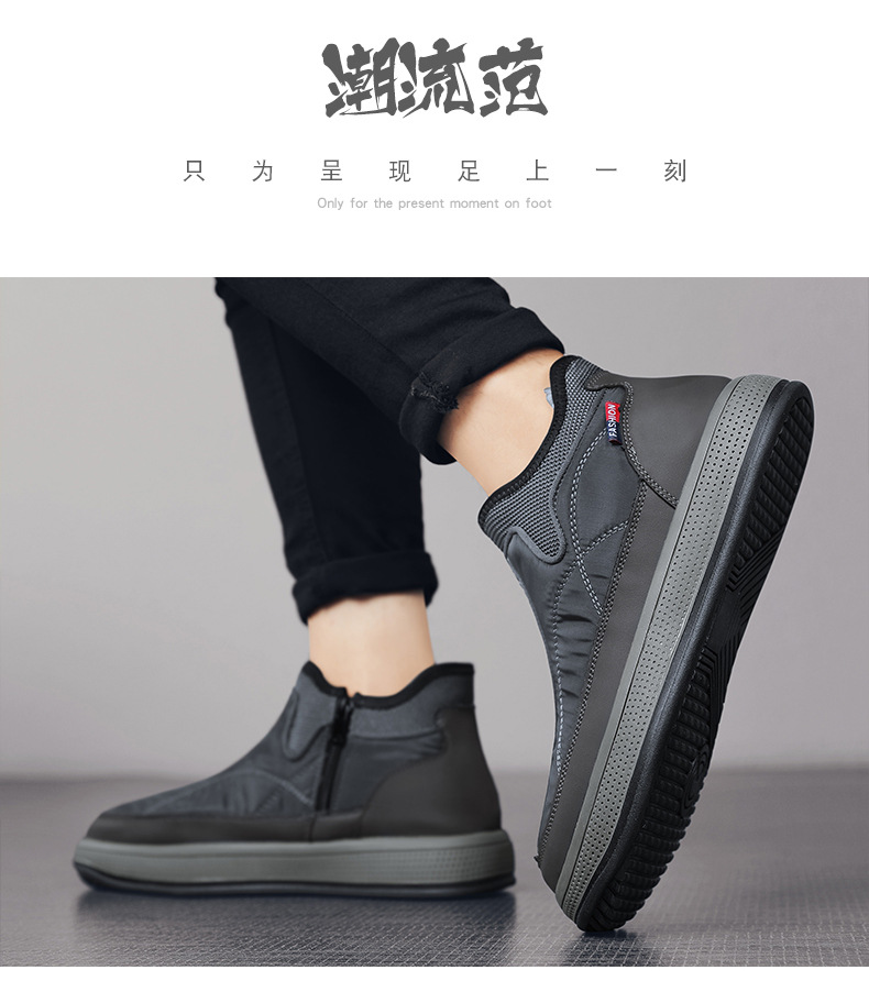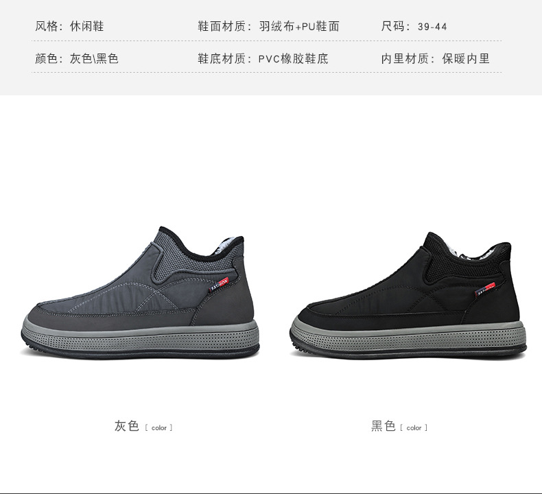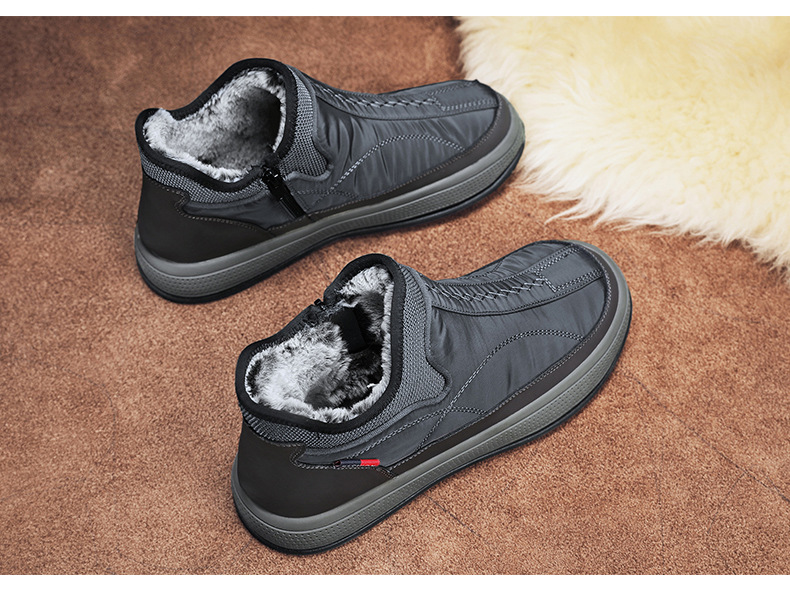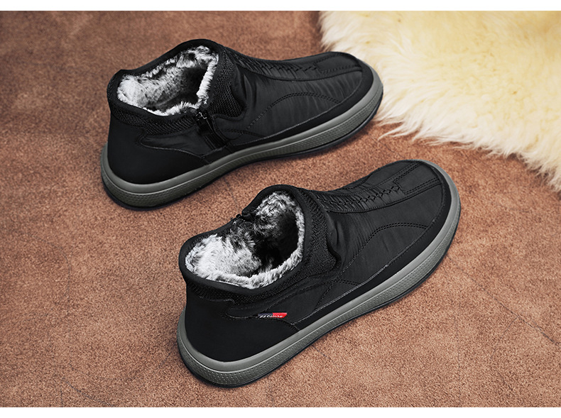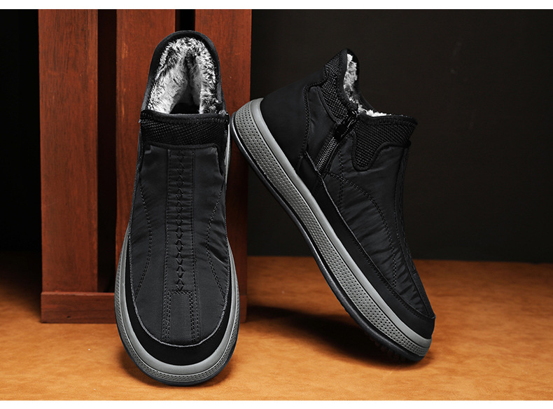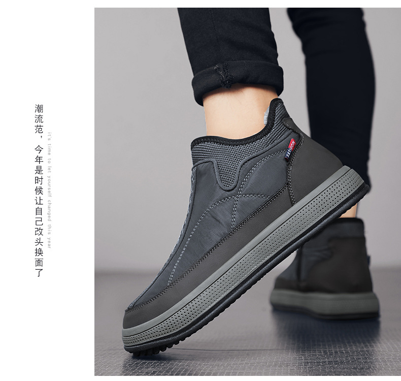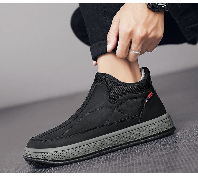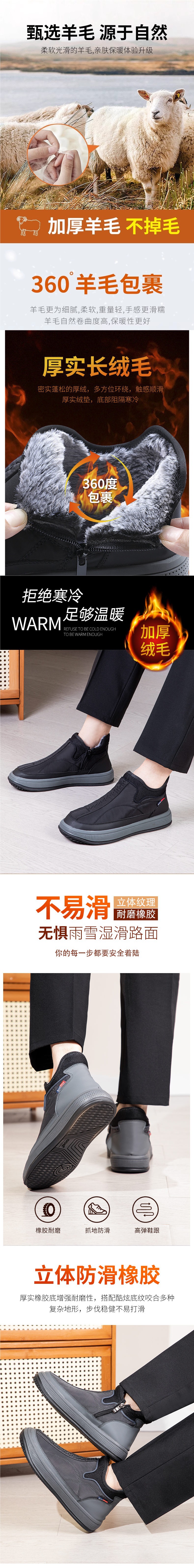 Old Beijing Cotton Shoes for Men, Winter Fleece-Lined, Thickened, Non-Slip, Warm Slip-On Shoes for the Elderly, Middle-Aged and Older Men's Shoes