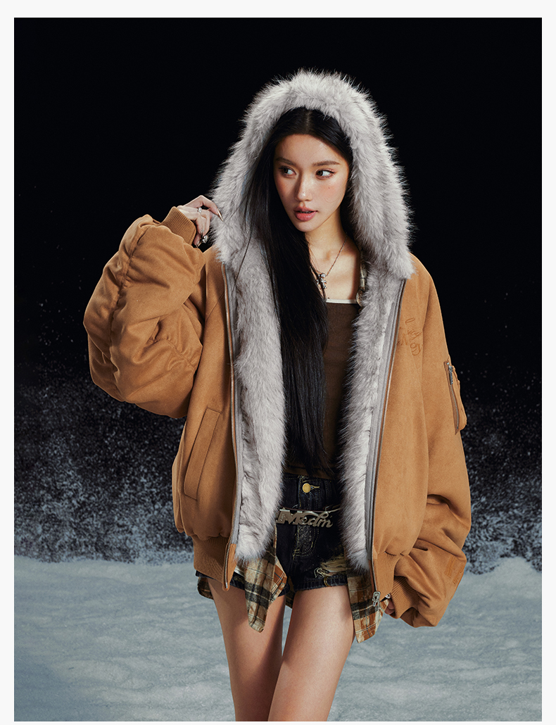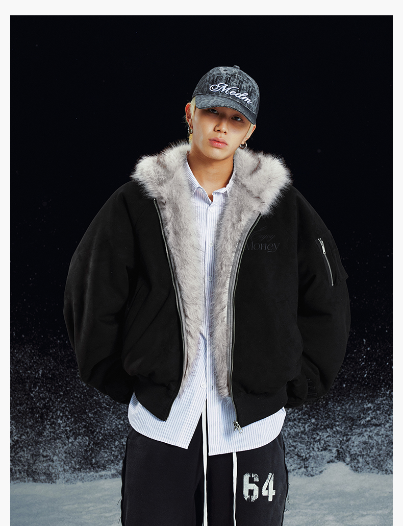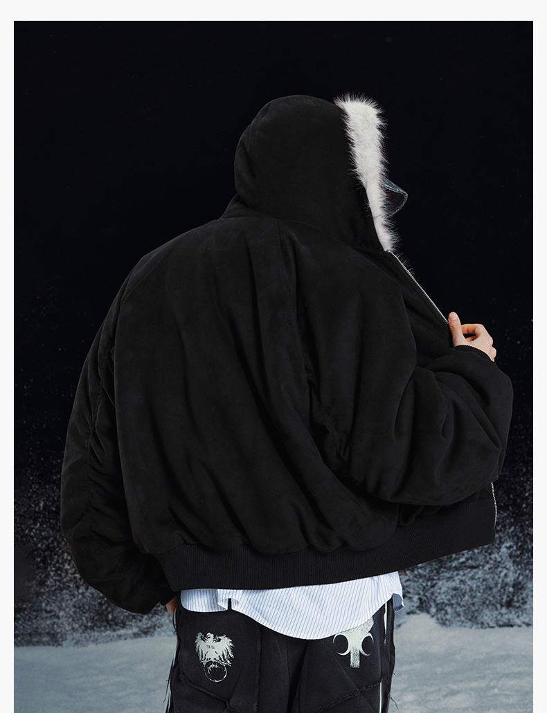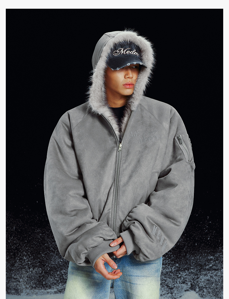 Medm Suede Double-Sided Flight Jacket for Men, Winter Thickened and Warm, Zuishan Diao Cleanfit Hooded Coat