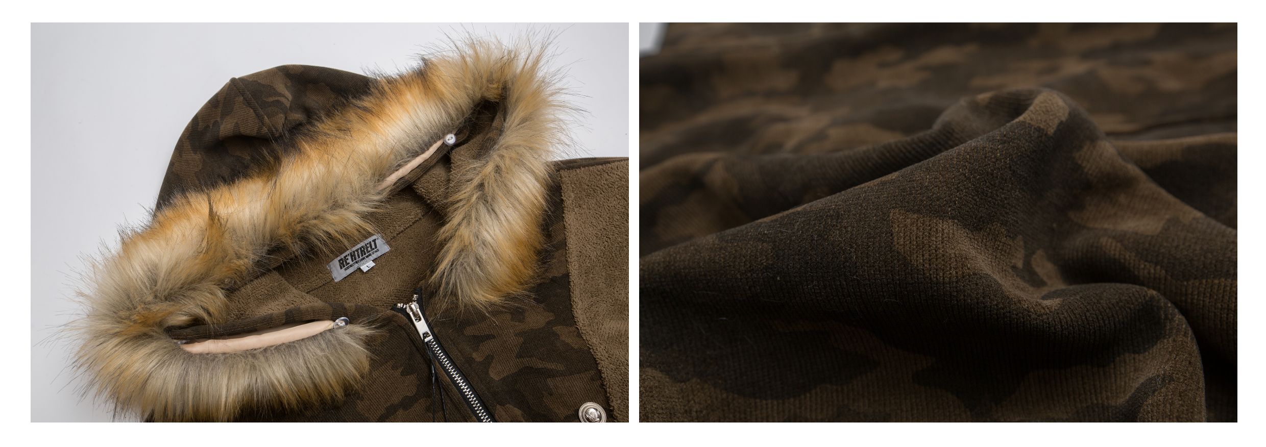 X Is Not a Good Person American Street Camouflage Patchwork Fur Collar Jacket for Women Winter Warm Fleece-Lined Short Couple Jacket