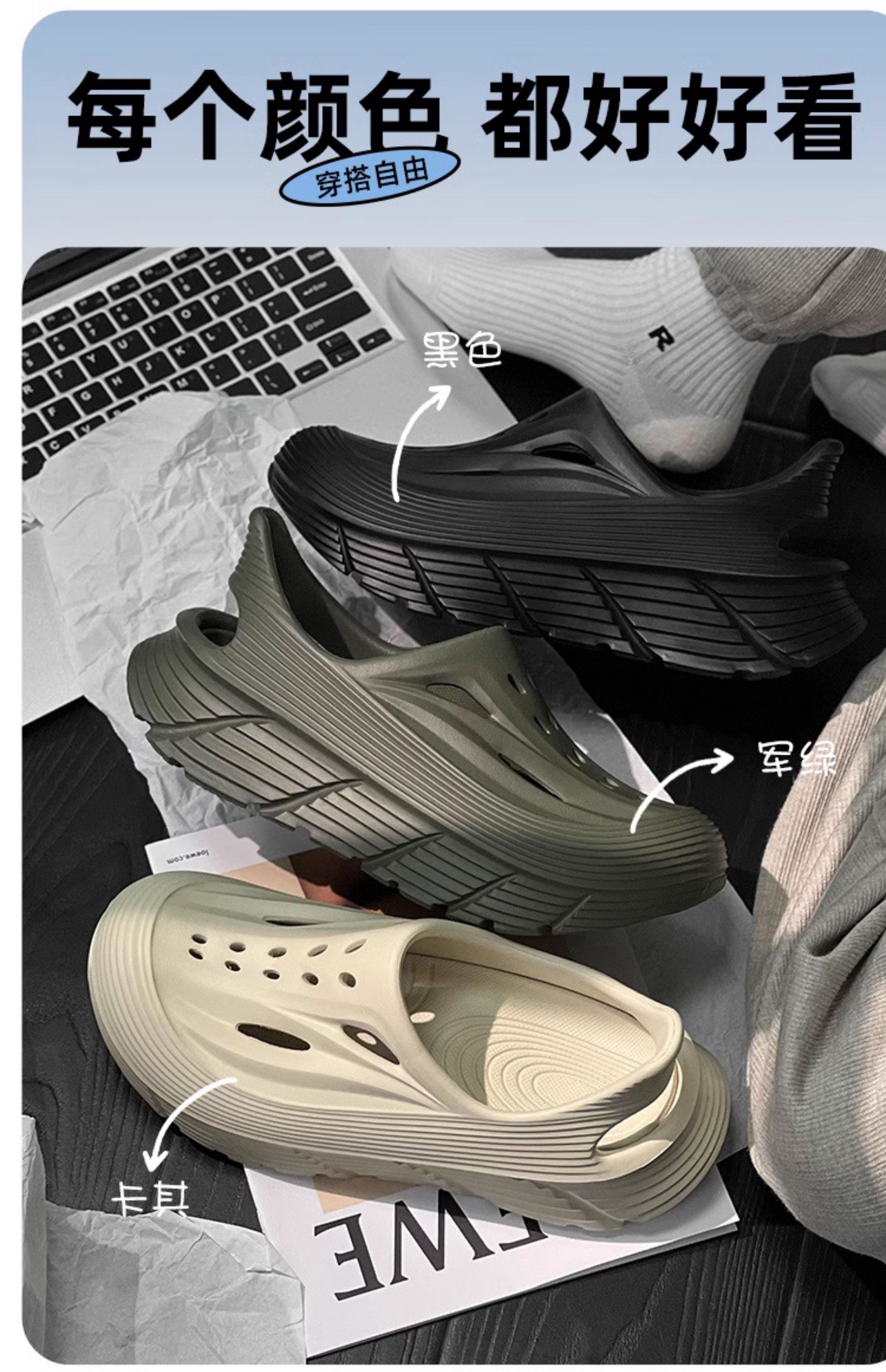 Men's Clogs 2025 New Trendy Cool Comfortable Closed-Toe Slippers for Men, Suitable for Indoor and Outdoor Wear, Non-Slip, Wear-Resistant, Thick-Soled Sandals
