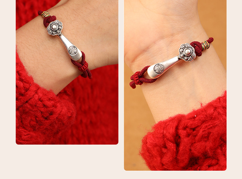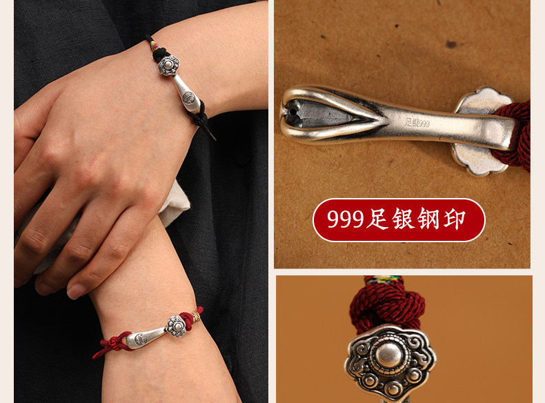 2025 New Woven Red String Bracelet 999 Pure Silver Ruyi Red String Couple's Zodiac Year Good Luck Bracelet