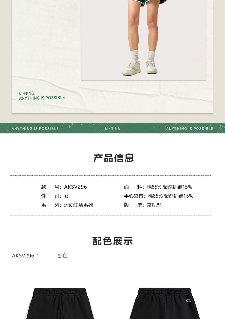 Li-Ning Women's Shorts Summer New Casual Pants Women's Shorts Loose Breathable Knee-Length Shorts Knitted Sports Pants