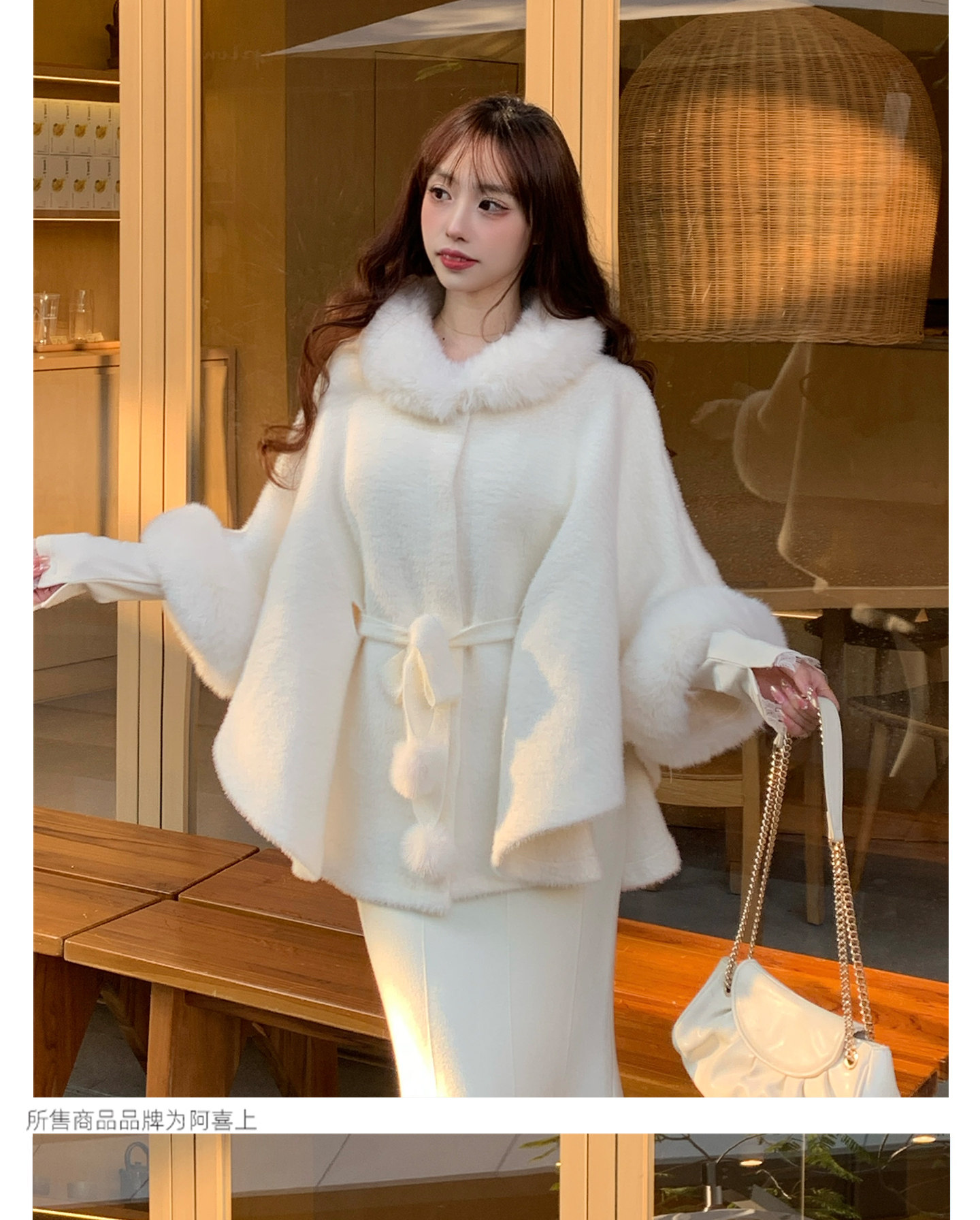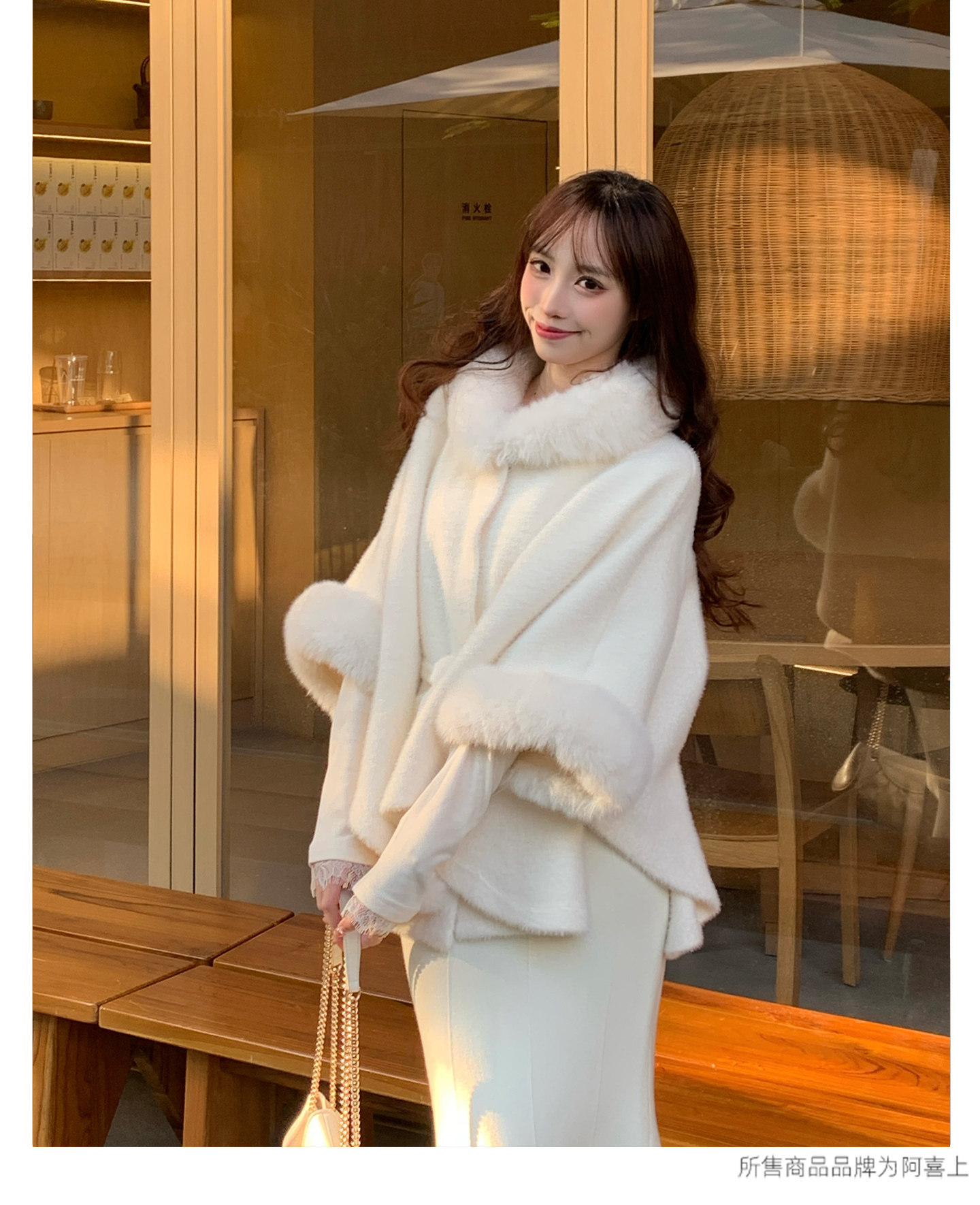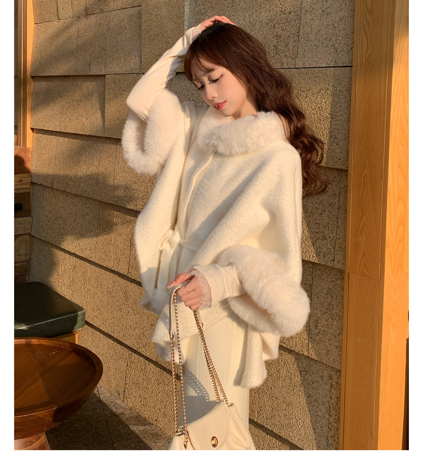 White Fur Collar Cape for Women, Winter, Rich Girl Style, High-End Look, Thickened Short Style, Super Pretty and Unique Coat