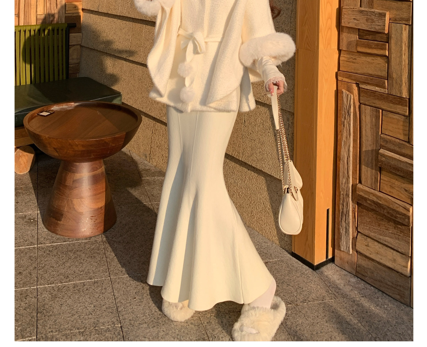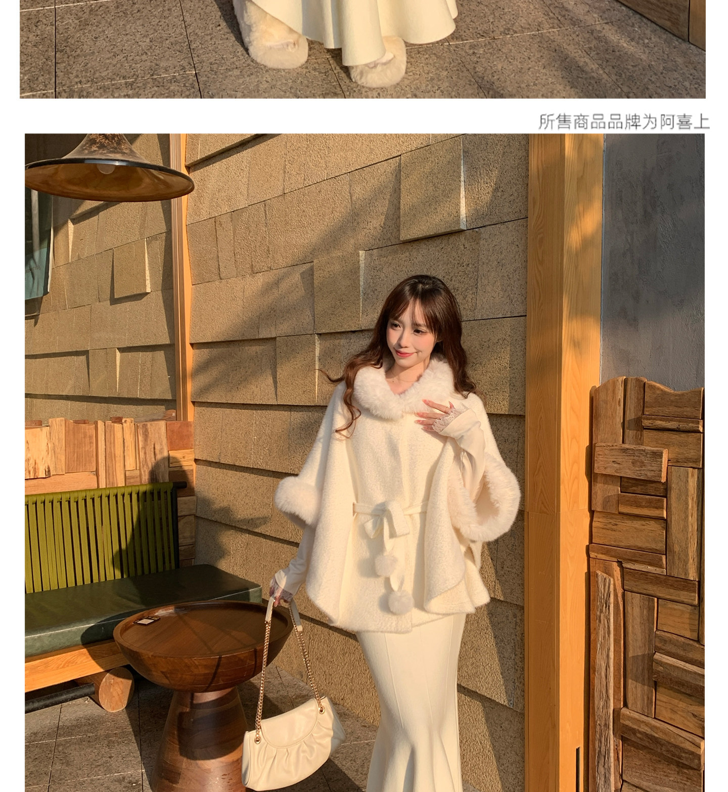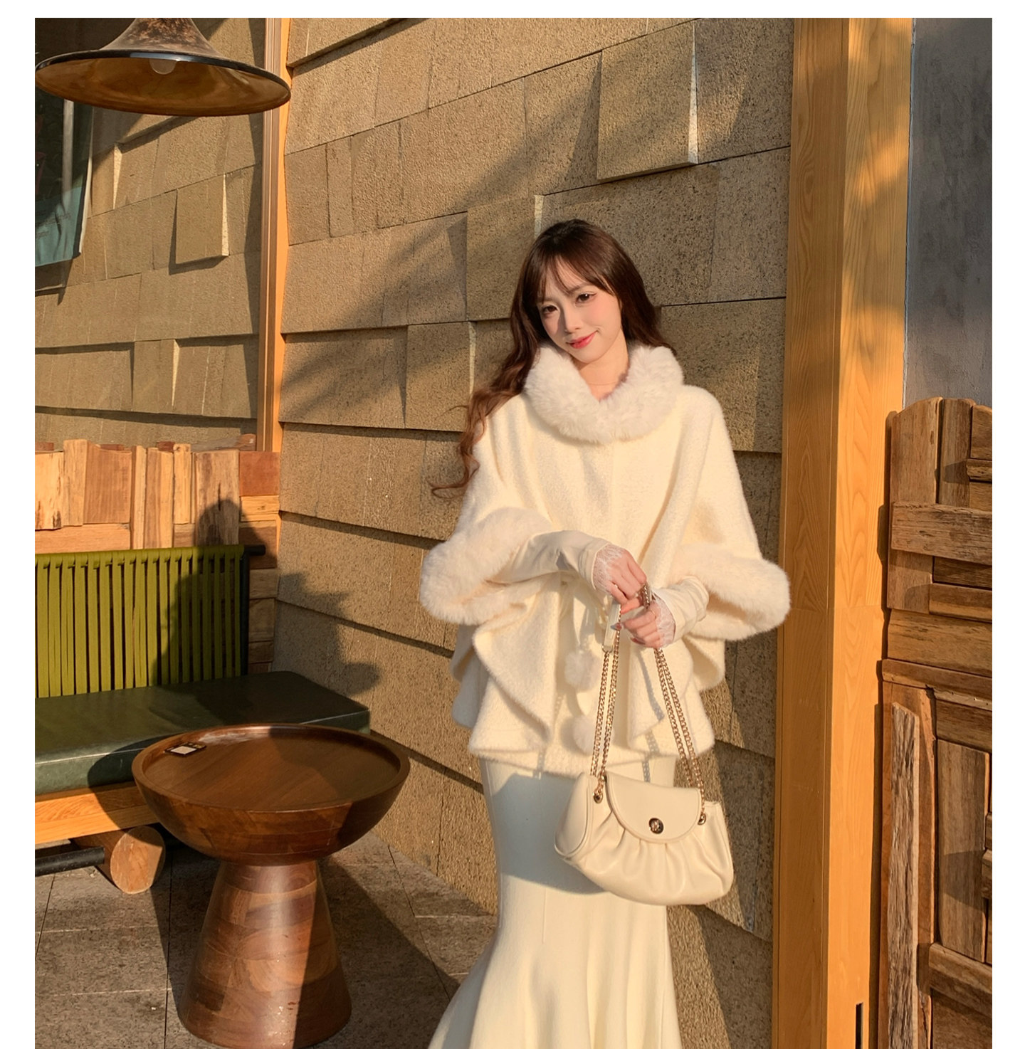 White Fur Collar Cape for Women, Winter, Rich Girl Style, High-End Look, Thickened Short Style, Super Pretty and Unique Coat