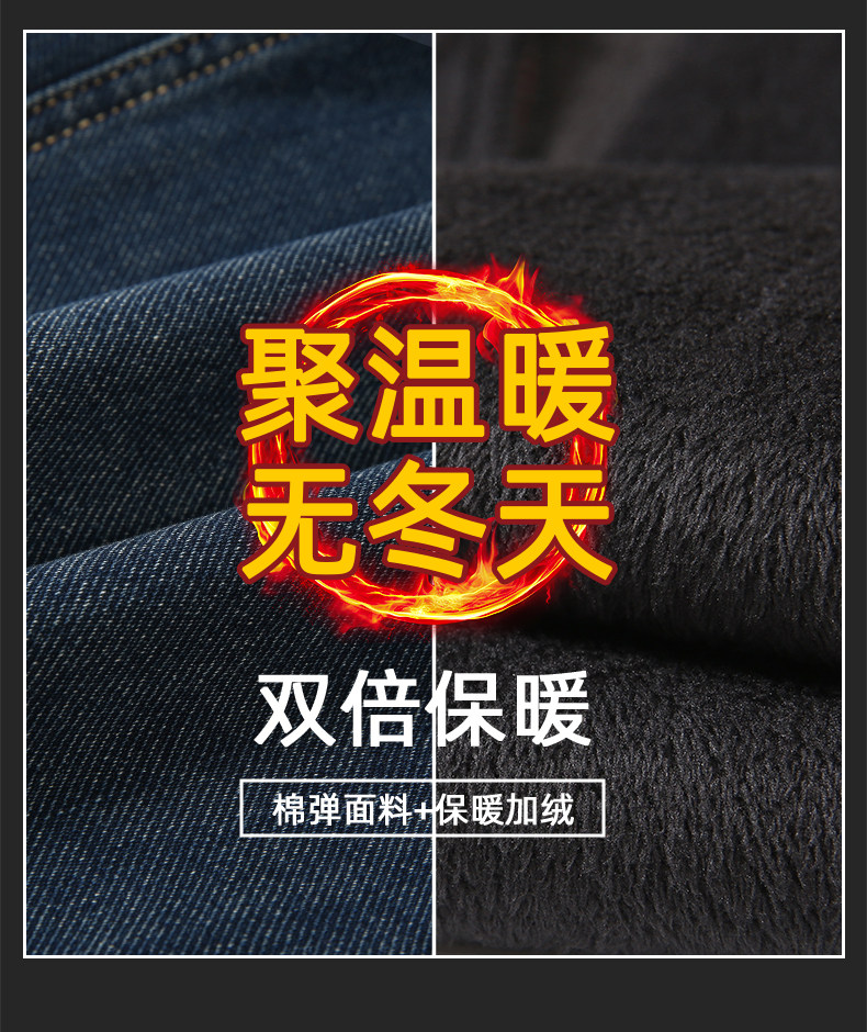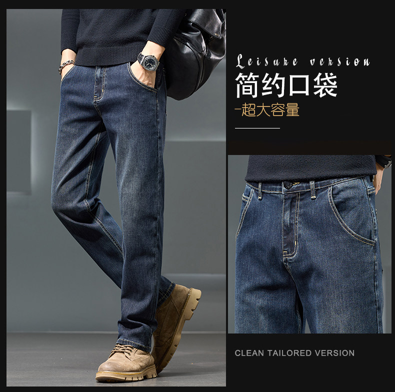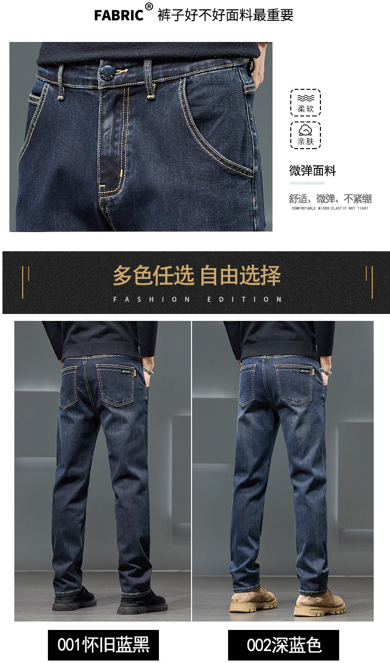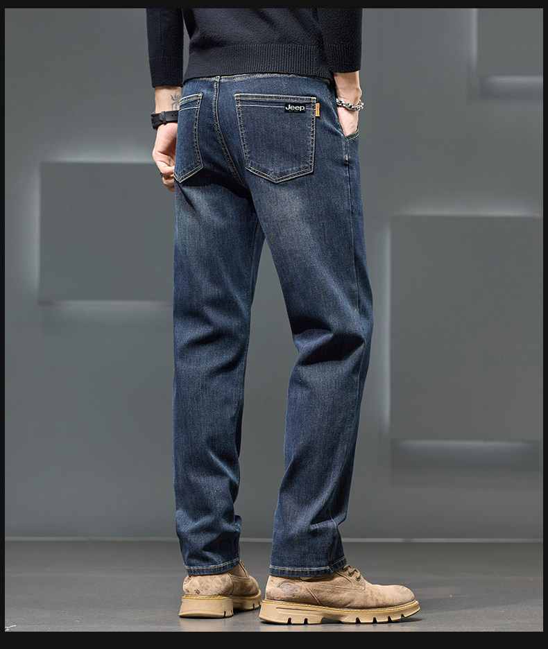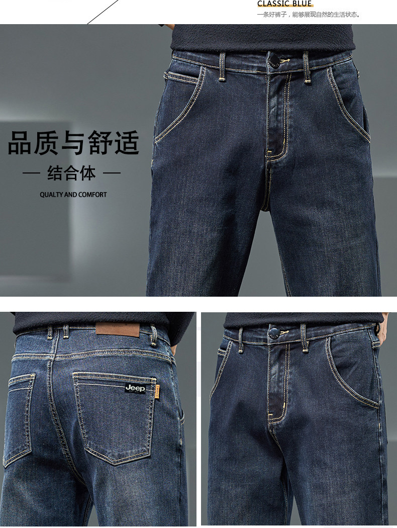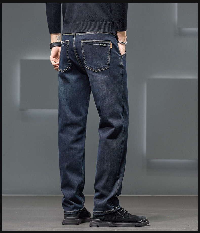 Jeep High-End Fleece-Lined Jeans for Men, Autumn and Winter Style, Loose Casual Men's Washed Straight-Leg Thickened Long Pants