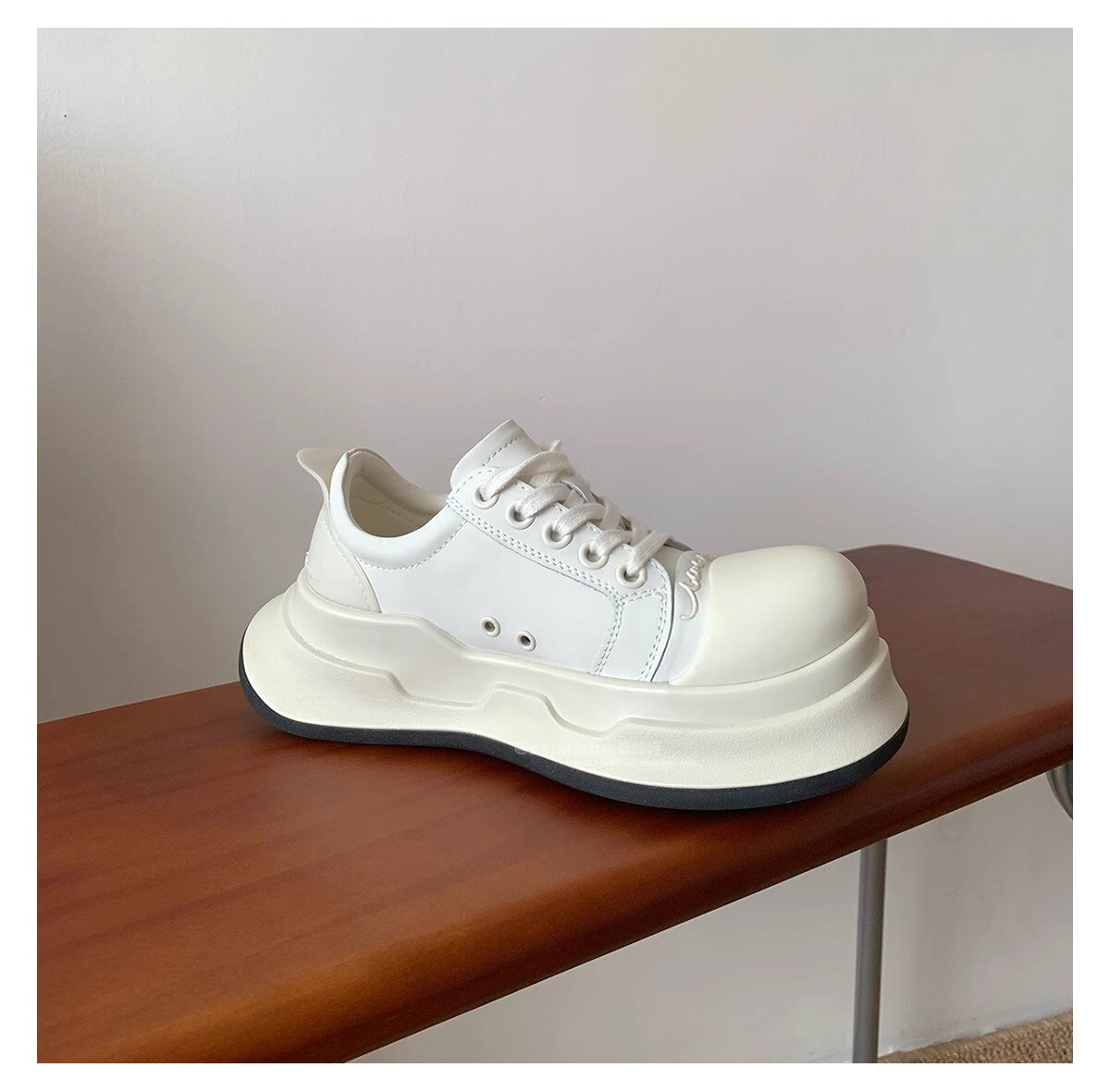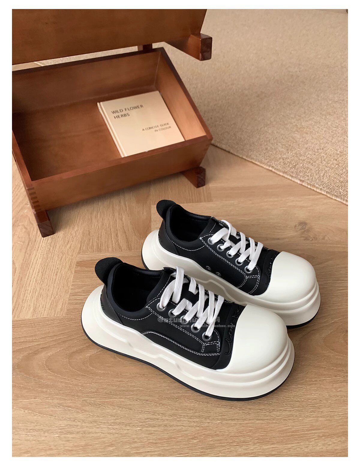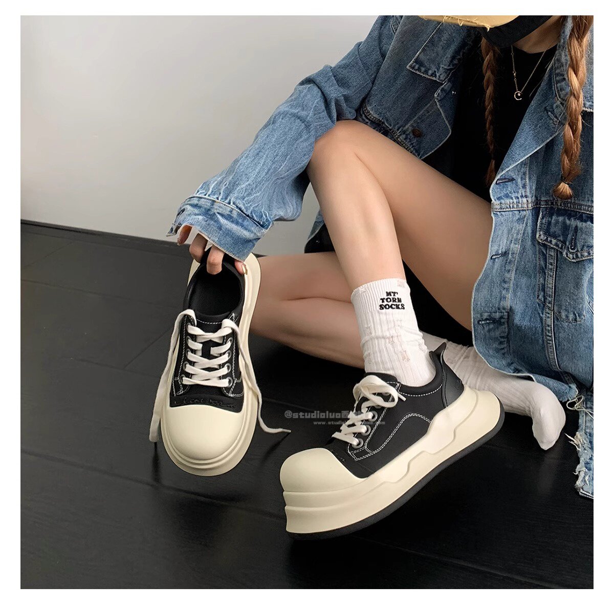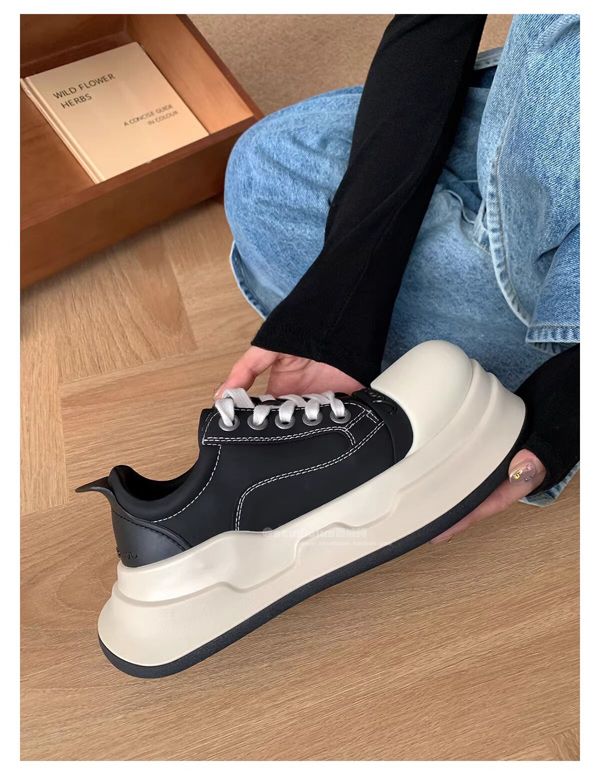 Italy Sanli~ Cute and Quirky Height-Increasing Black and White Chunky Shoes for Women, New Genuine Leather Versatile Casual Sneakers, Loafers