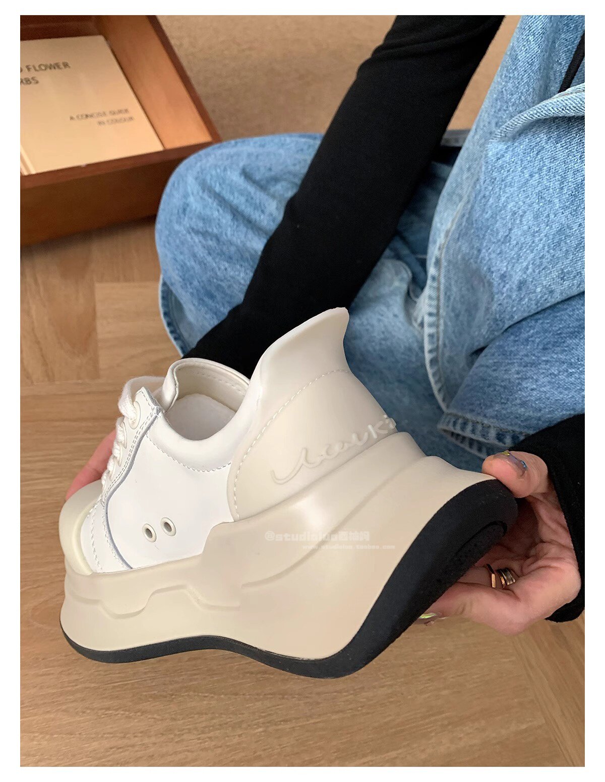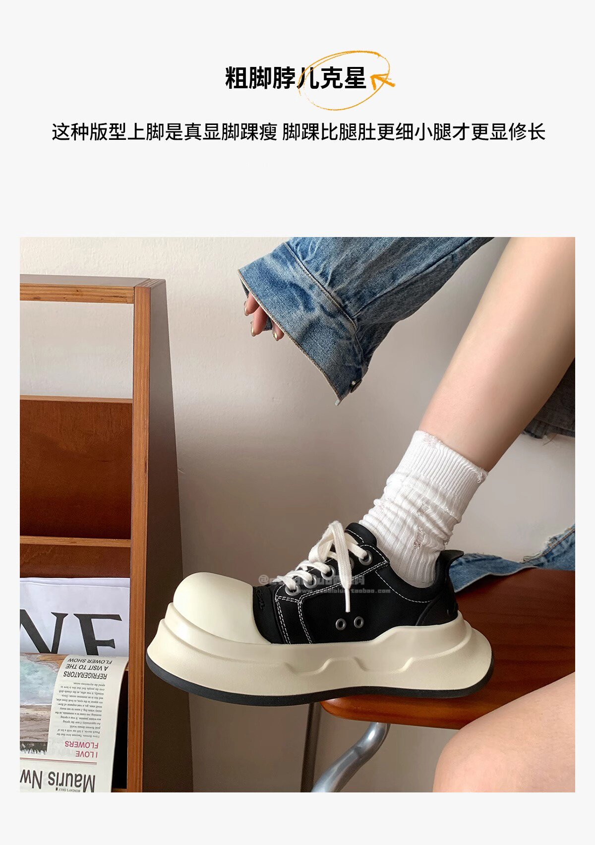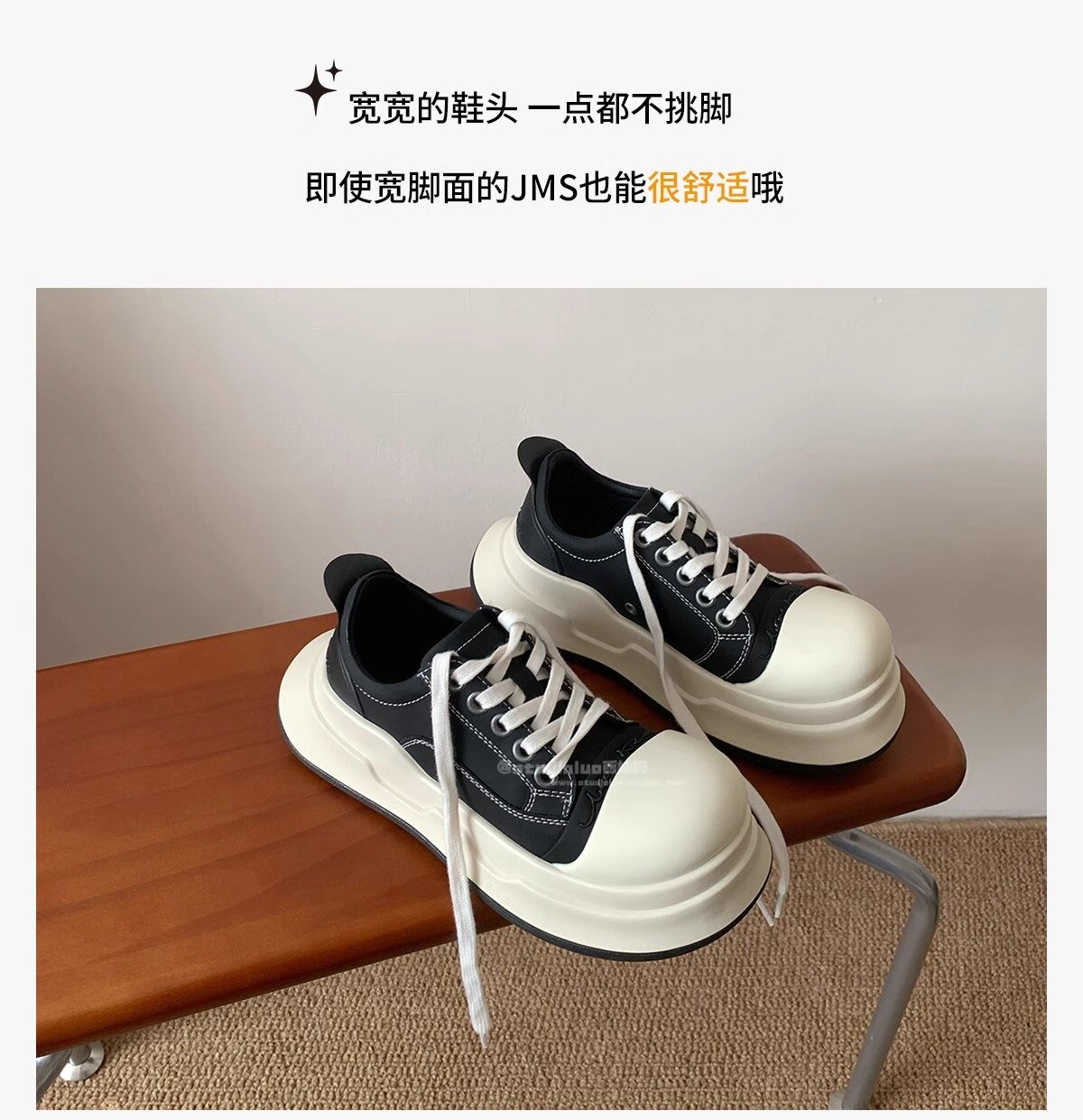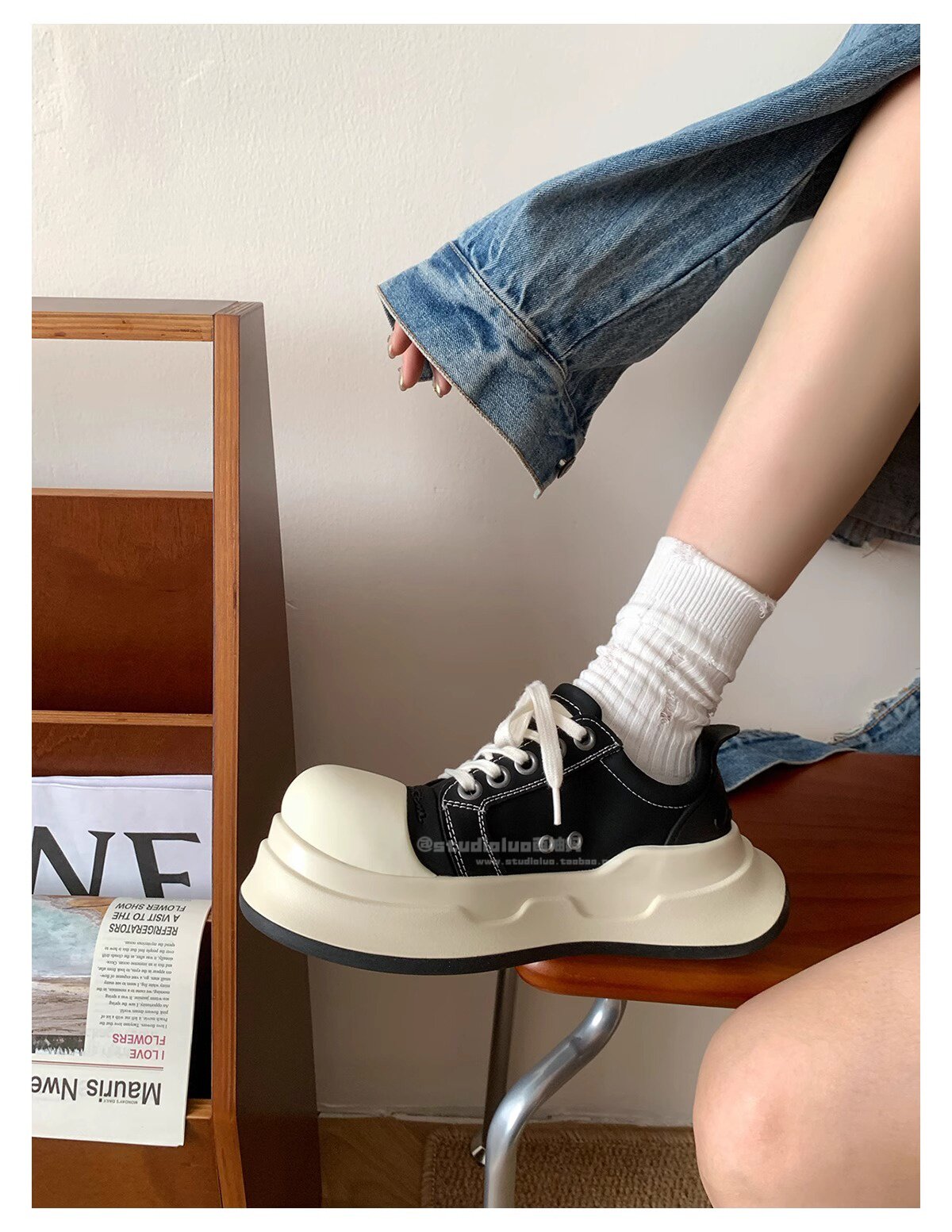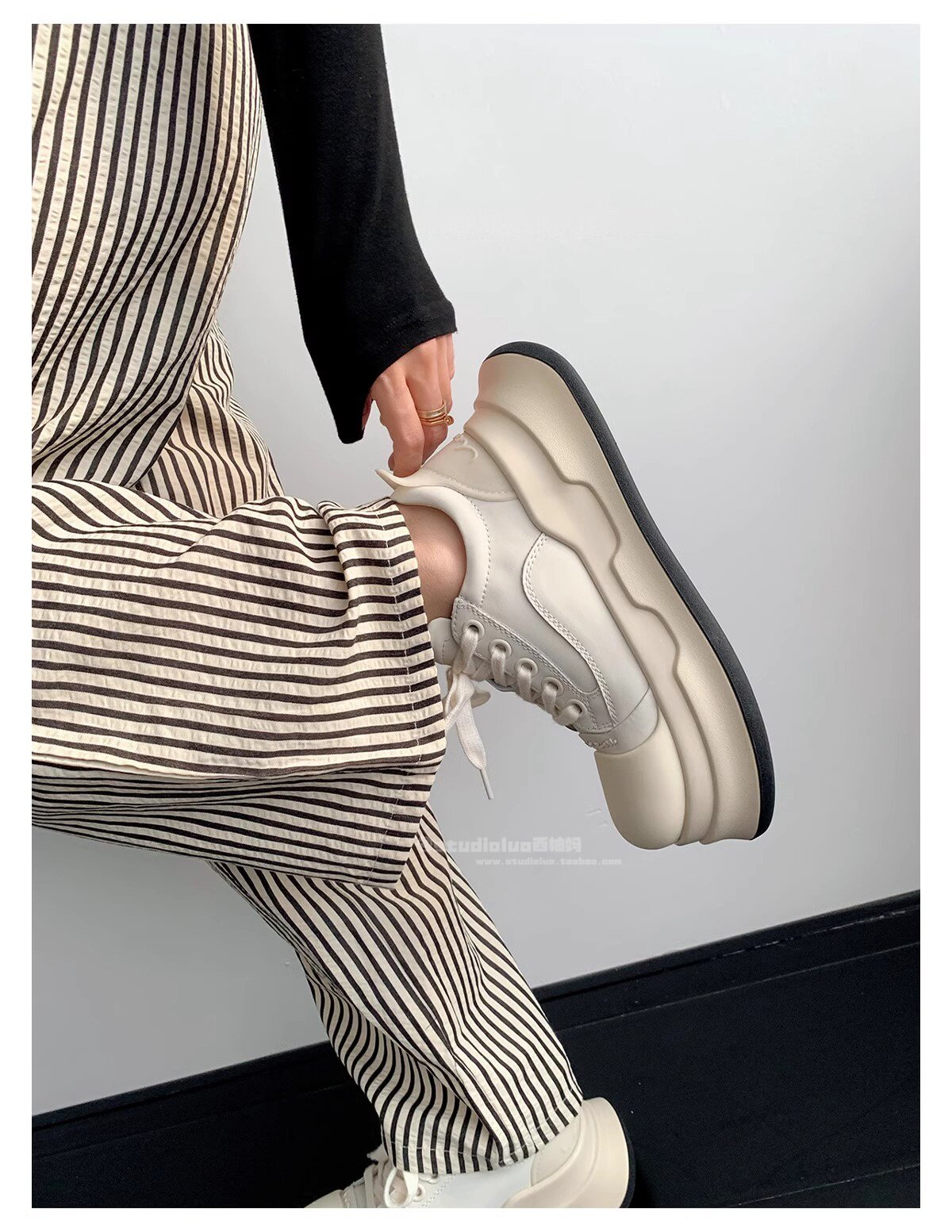 Italy Sanli~ Cute and Quirky Height-Increasing Black and White Chunky Shoes for Women, New Genuine Leather Versatile Casual Sneakers, Loafers