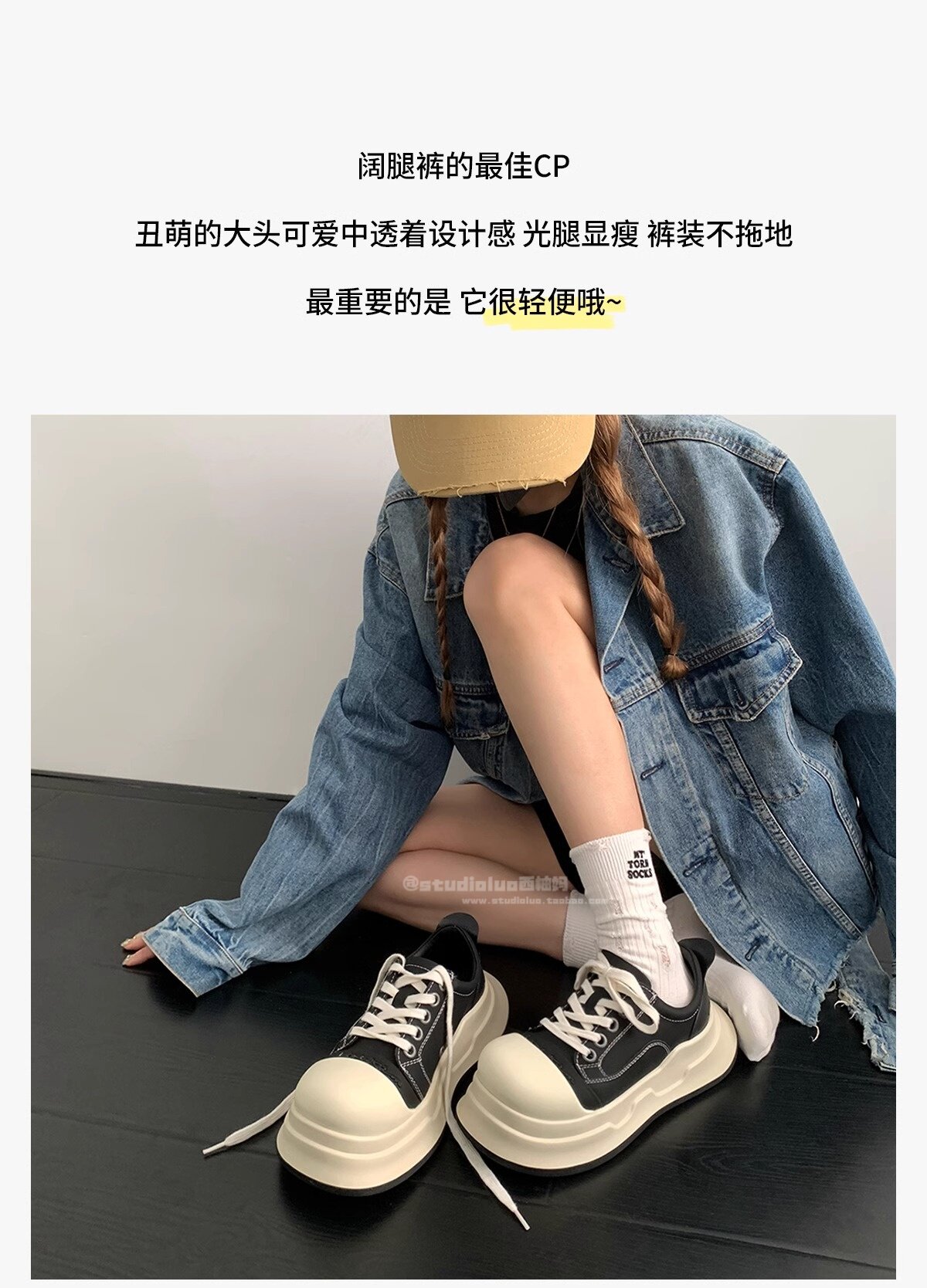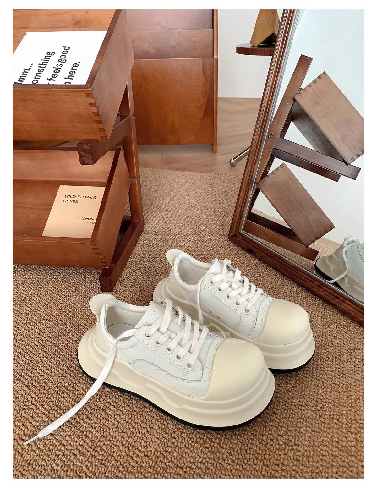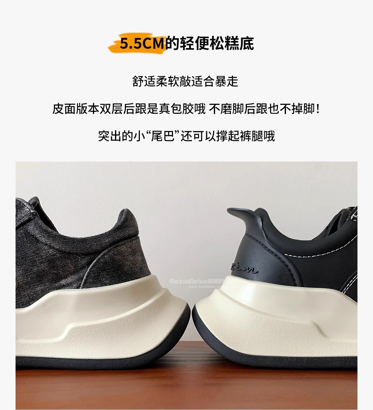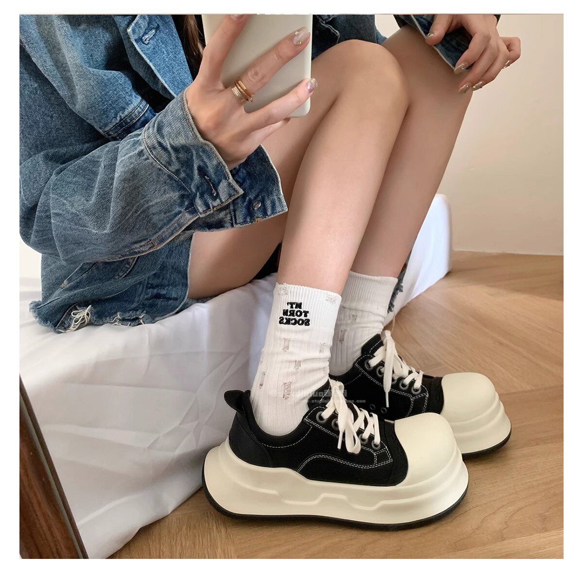 Italy Sanli~ Cute and Quirky Height-Increasing Black and White Chunky Shoes for Women, New Genuine Leather Versatile Casual Sneakers, Loafers