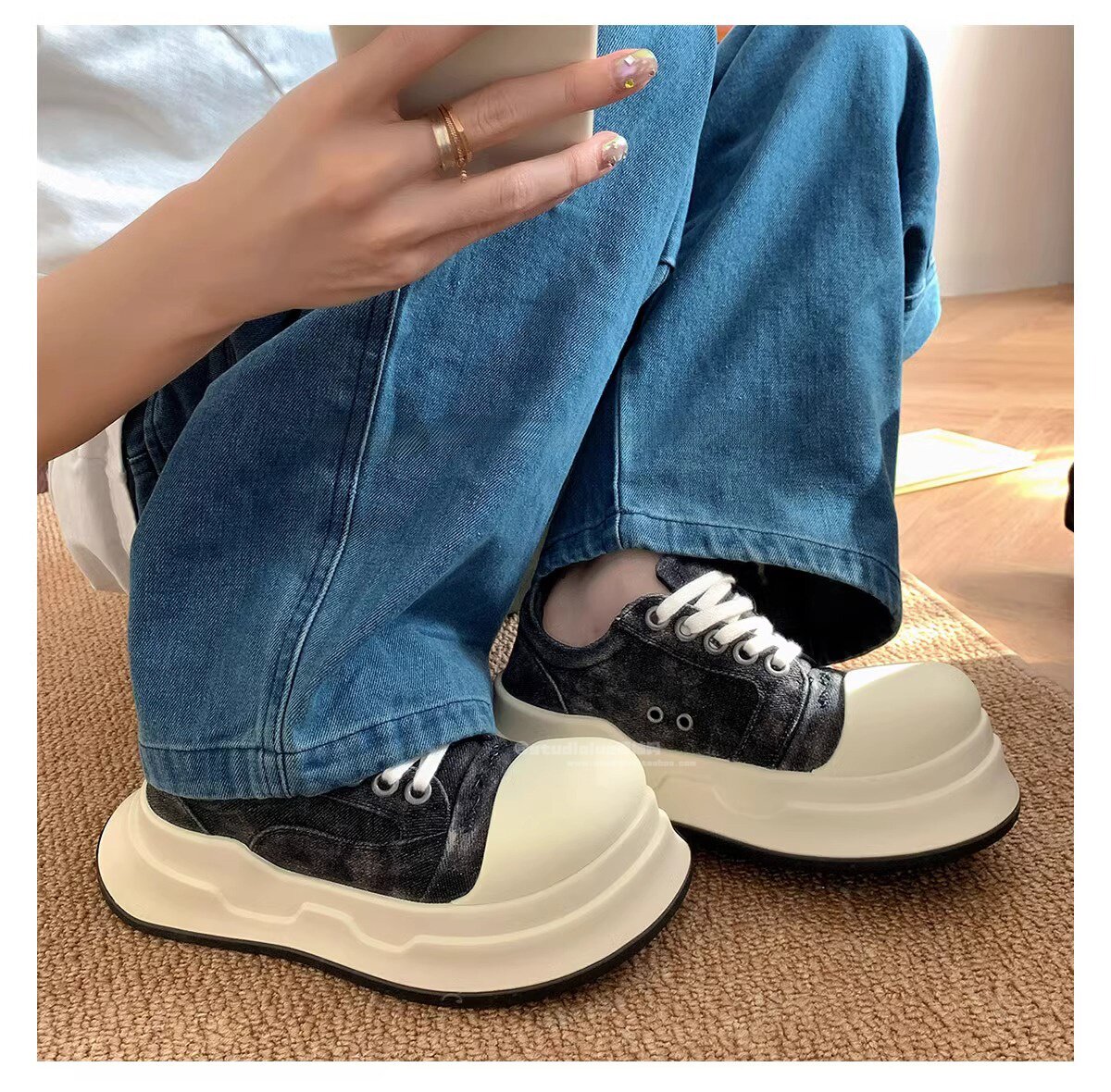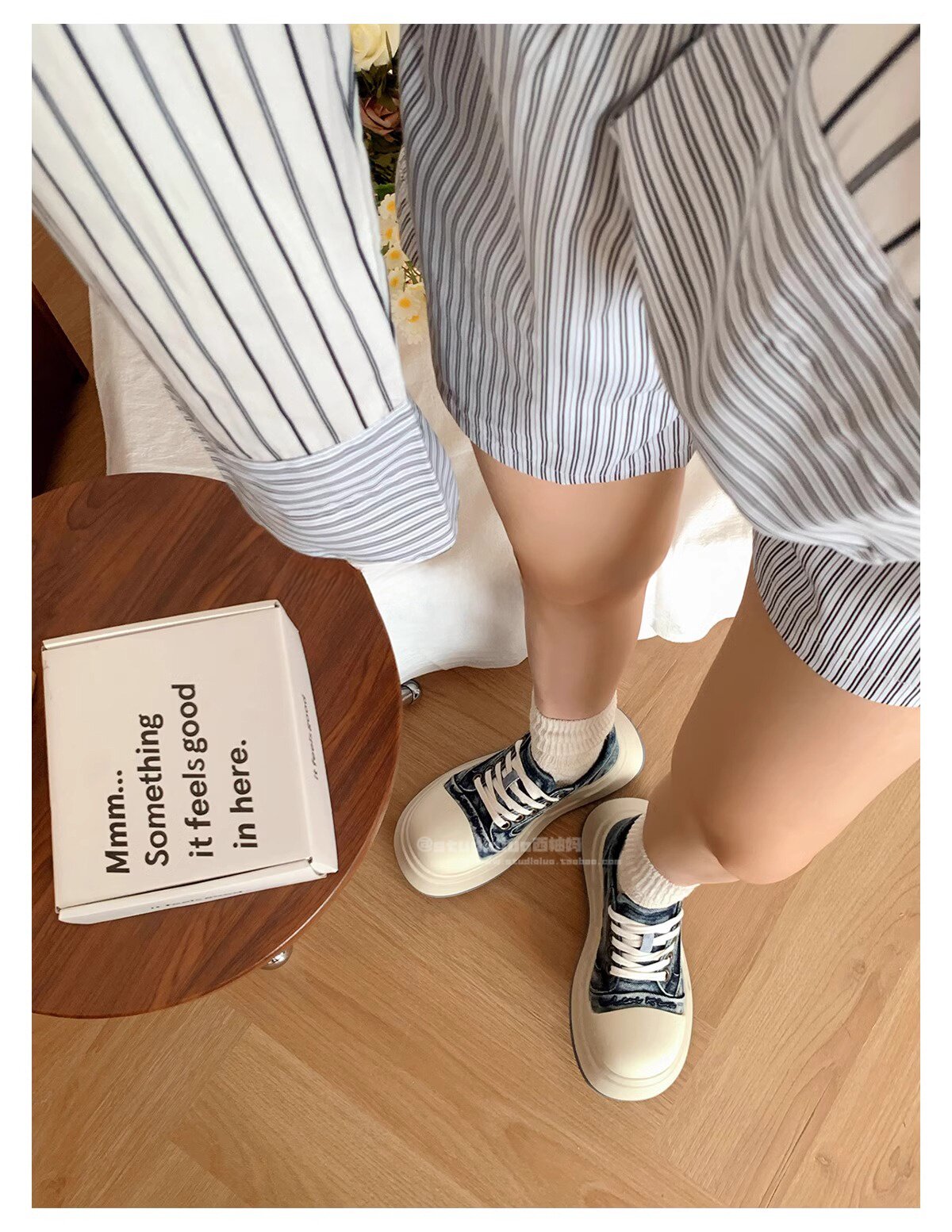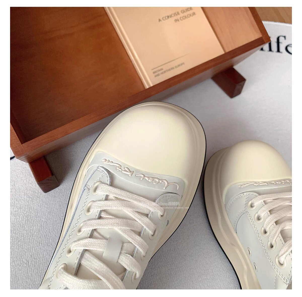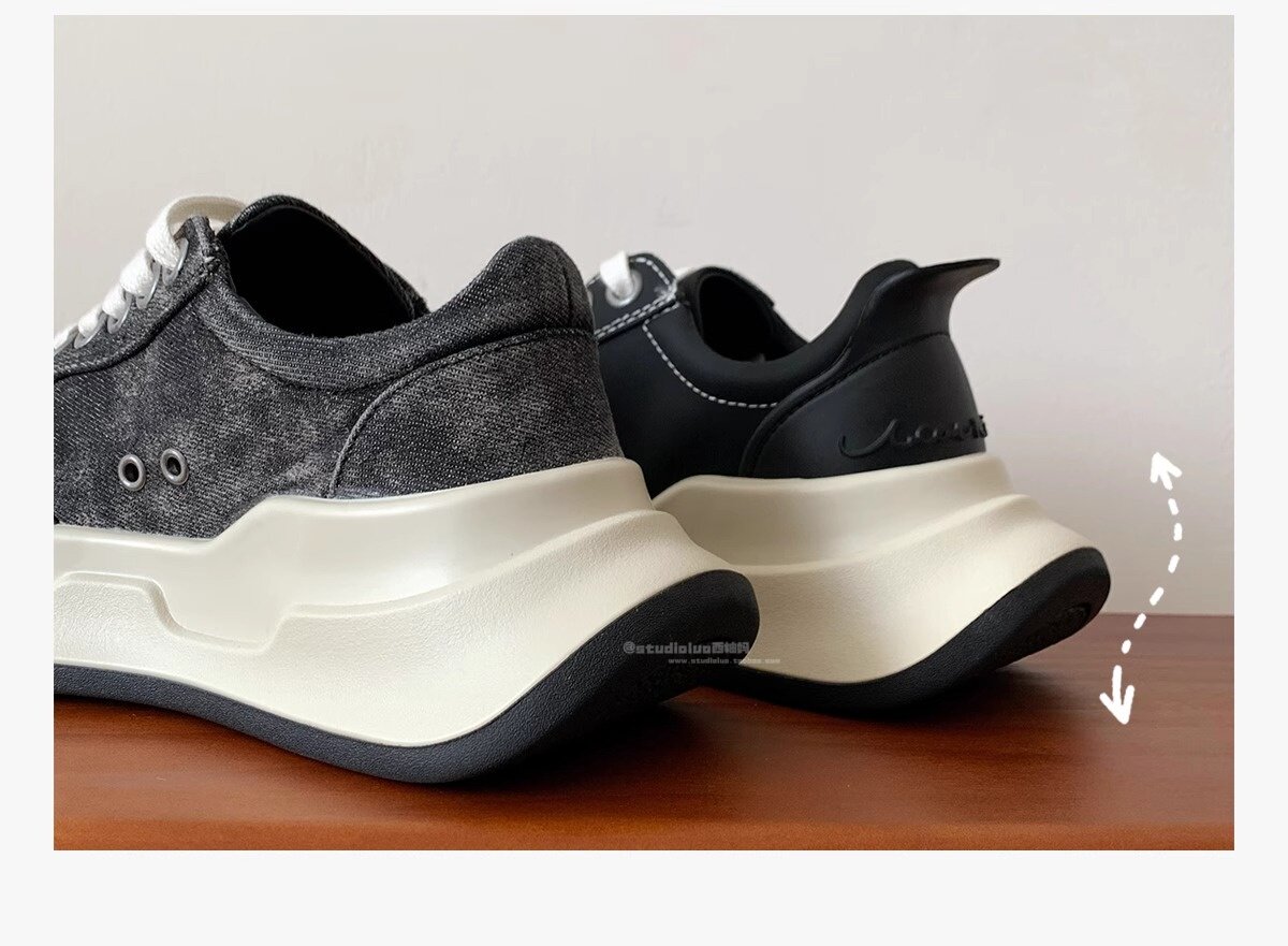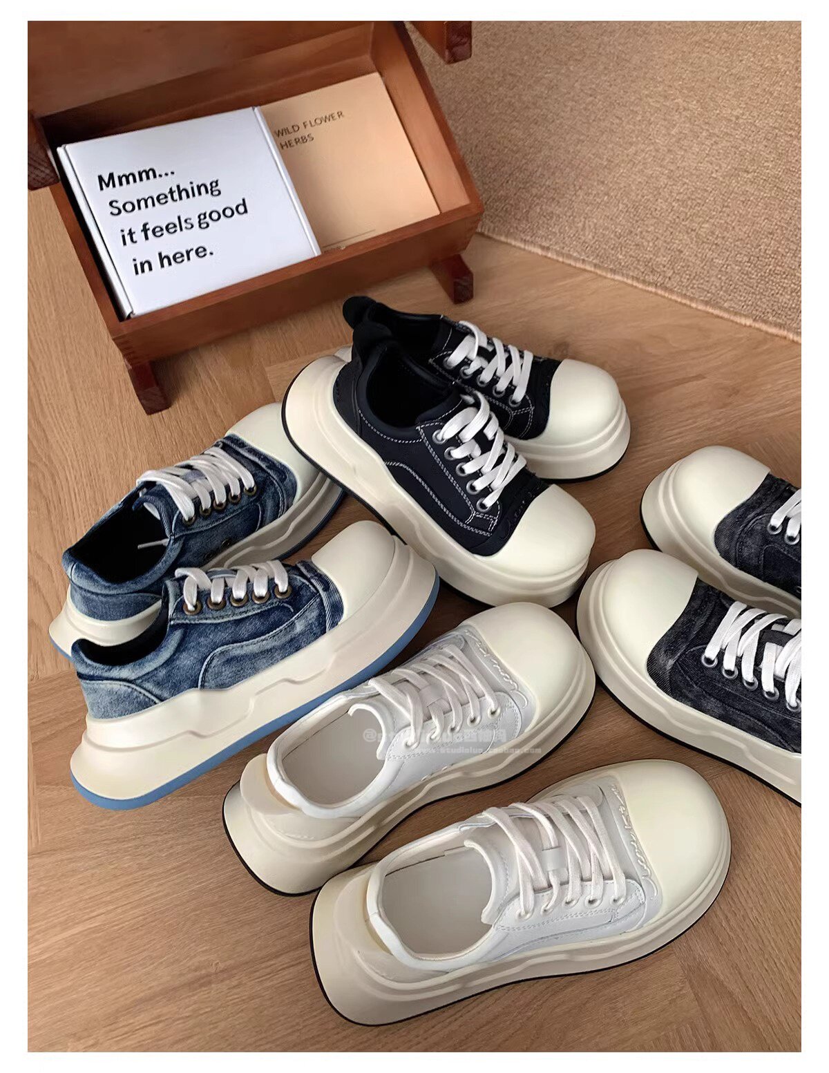 Italy Sanli~ Cute and Quirky Height-Increasing Black and White Chunky Shoes for Women, New Genuine Leather Versatile Casual Sneakers, Loafers