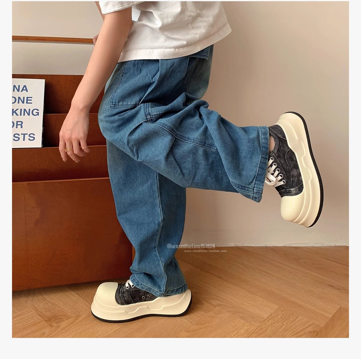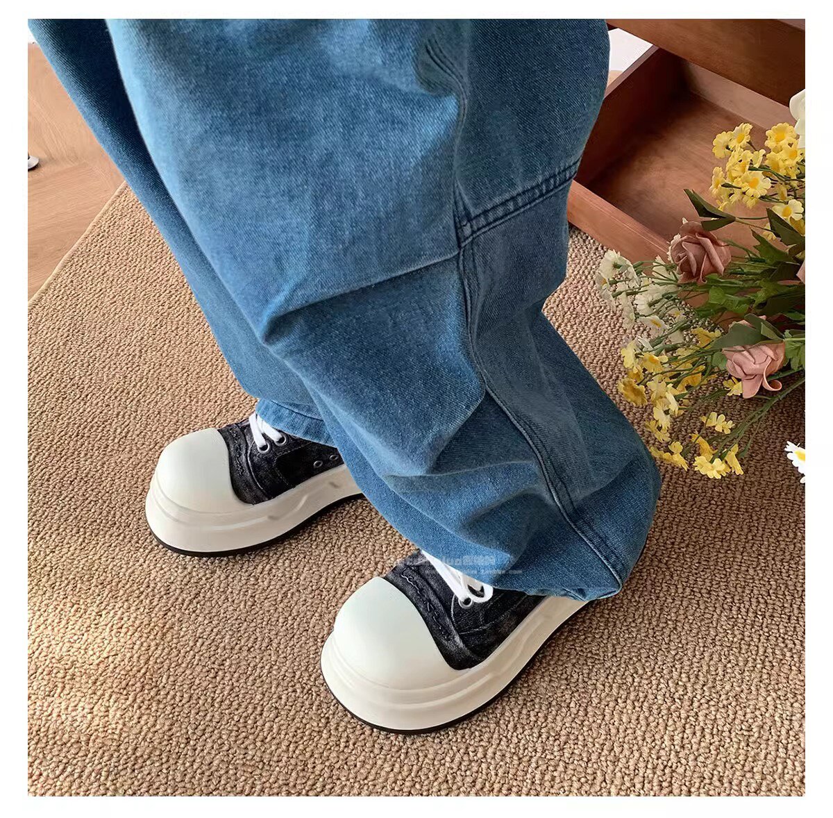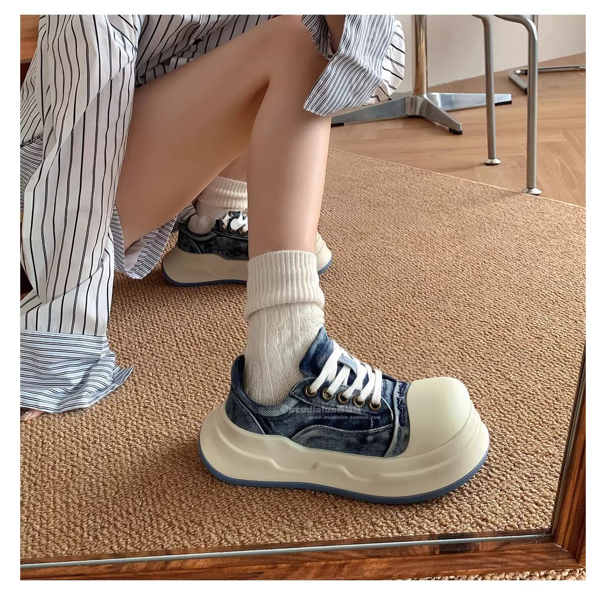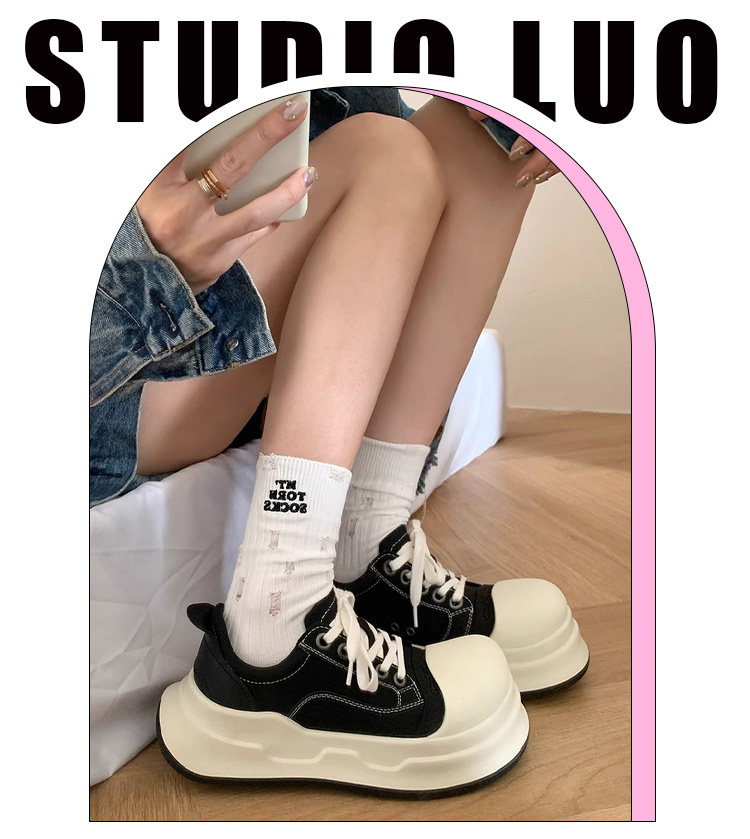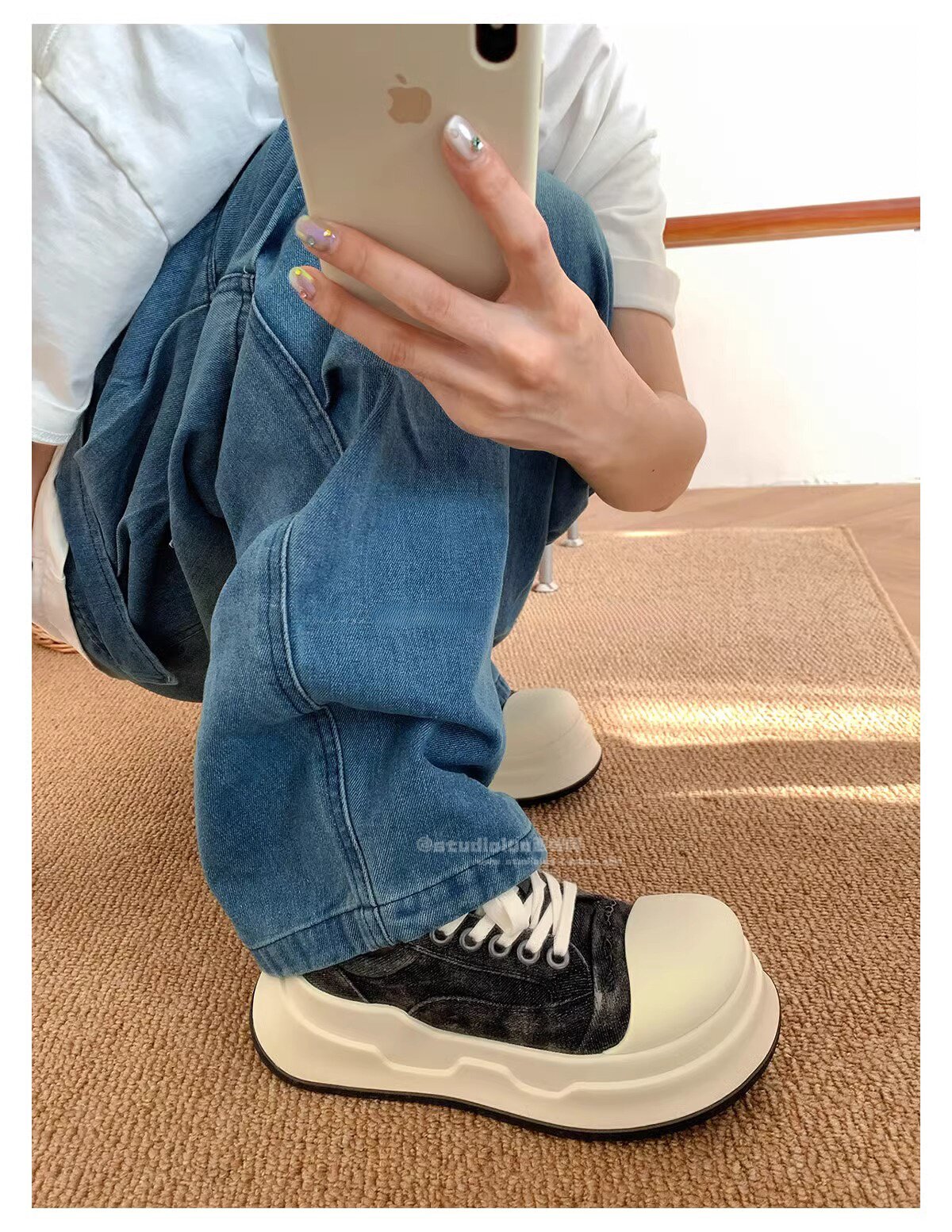 Italy Sanli~ Cute and Quirky Height-Increasing Black and White Chunky Shoes for Women, New Genuine Leather Versatile Casual Sneakers, Loafers