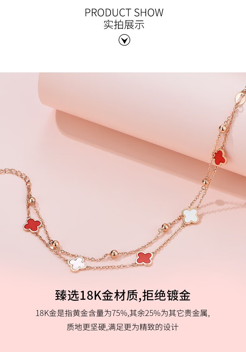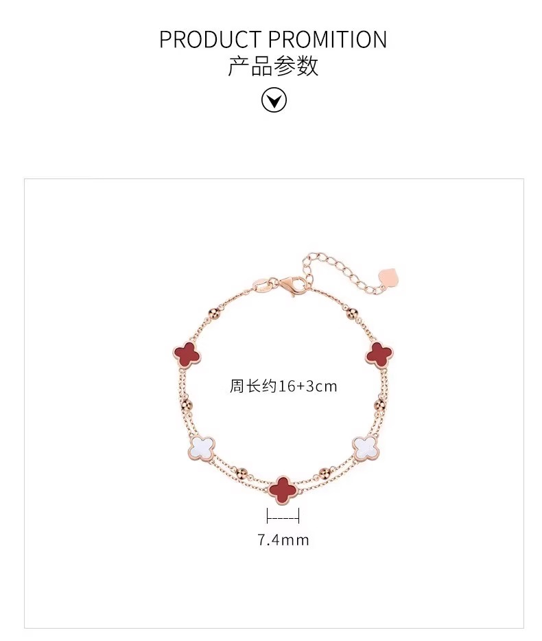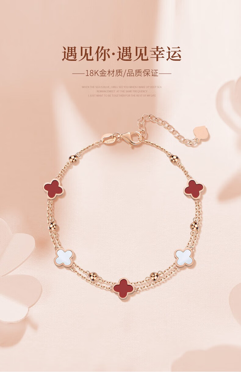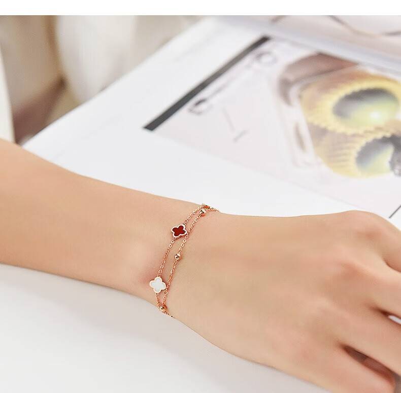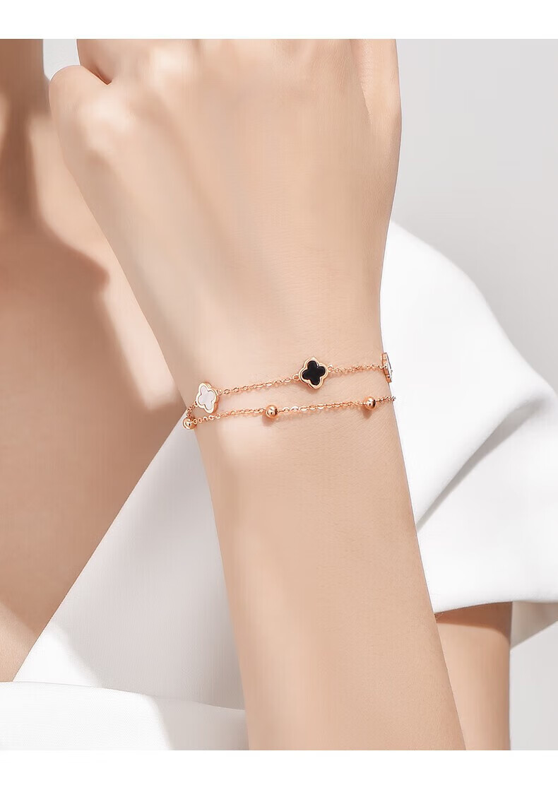 Genuine Givenchy 18K Gold-Plated Diamond Four-Leaf Clover Bracelet for Women, Qixi Valentine's Day Birthday Gift for Girlfriend