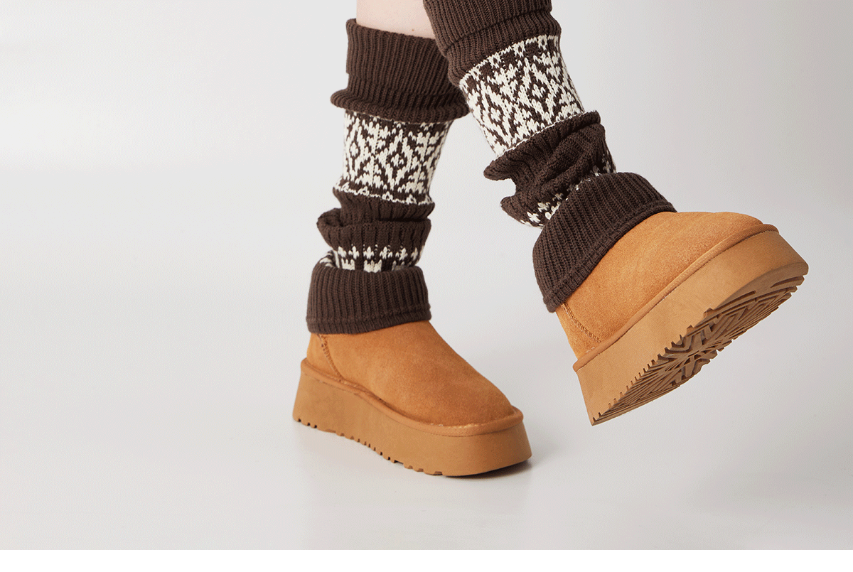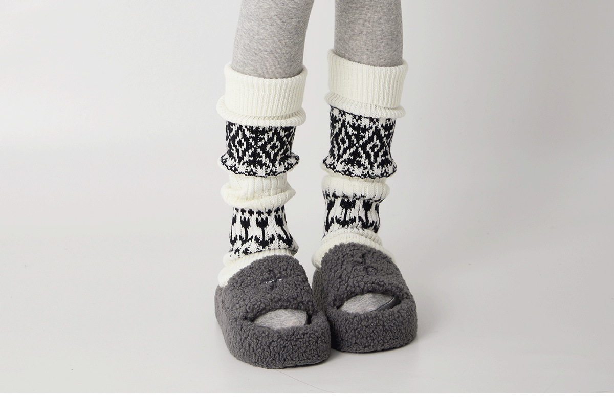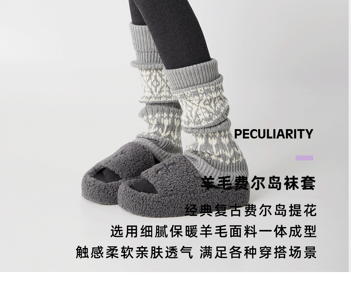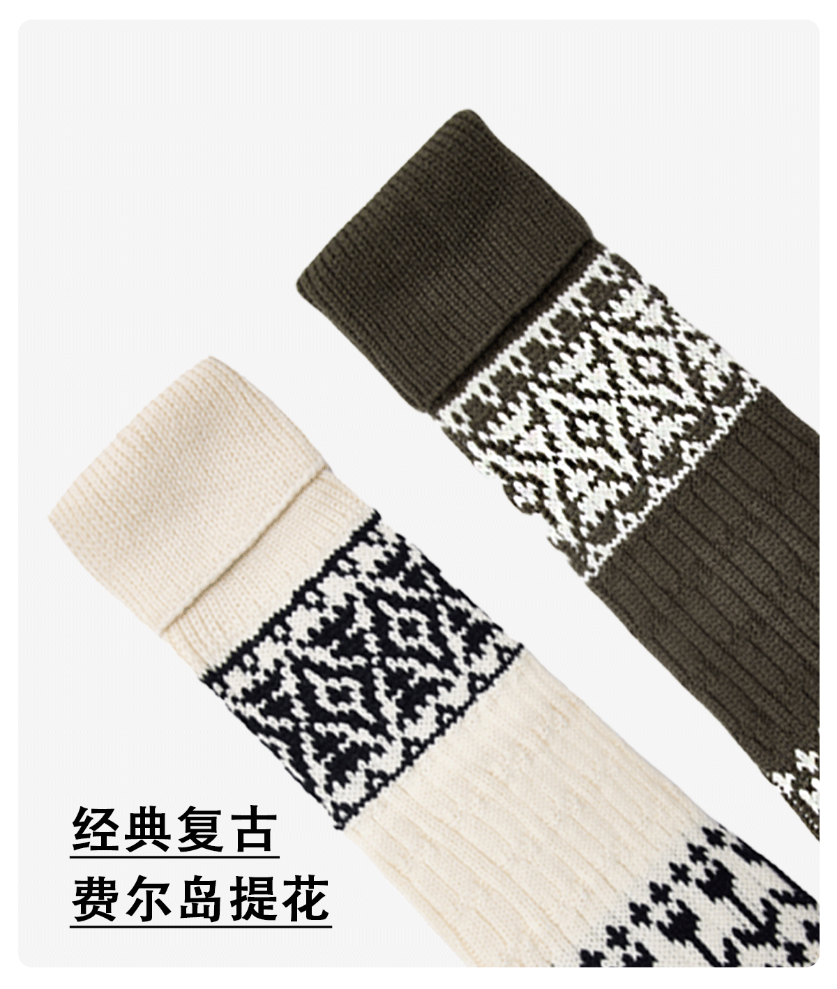Purpleguys Fair Isle Socks for Women, Autumn and Winter Thickened Warm Wool Snow Boots, Retro Stacked Calf Warmers