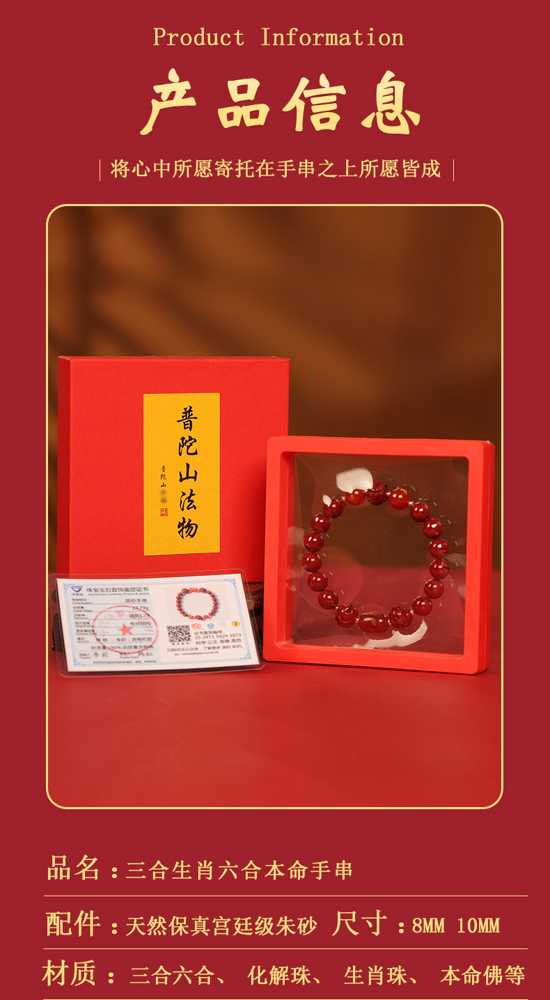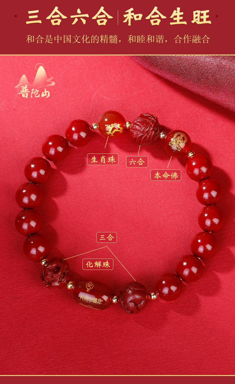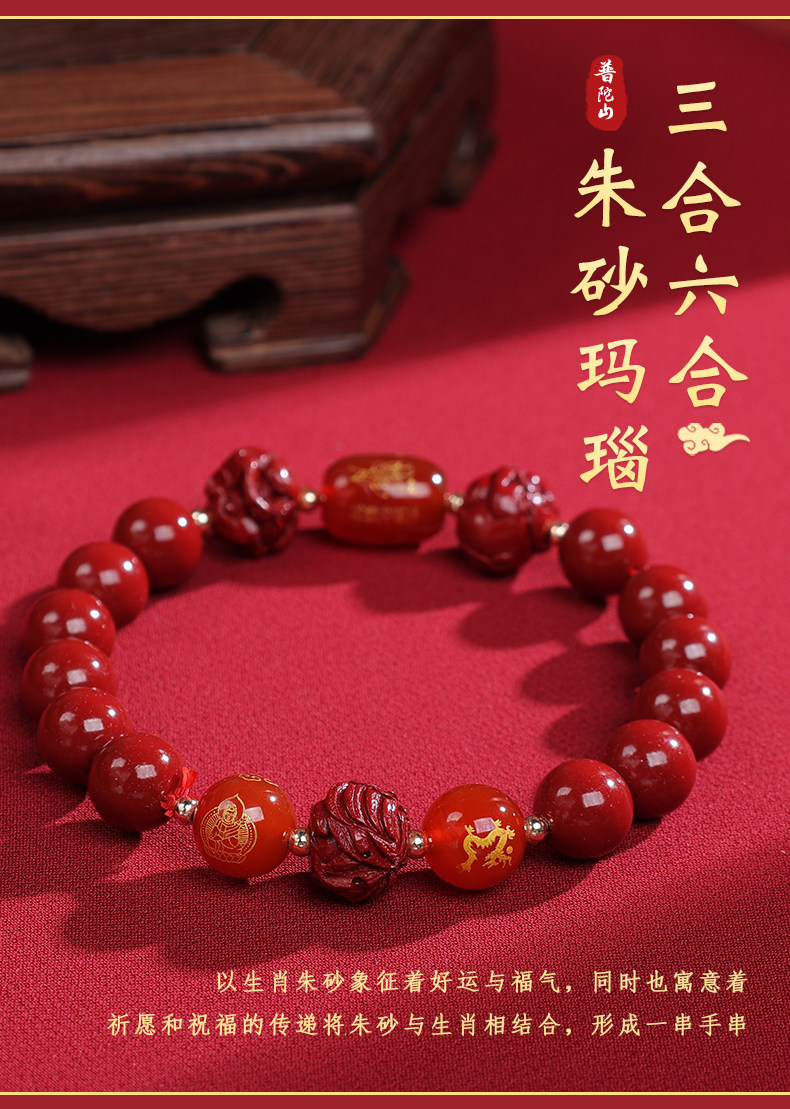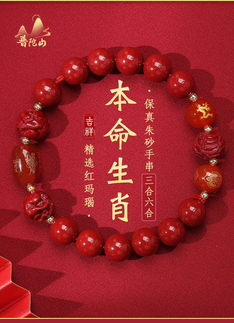 [Putuo Mountain Official] Cinnabar Bracelet with Fortune Beads for the Year of the Horse, Birth Year Amulet, Authentic Flagship Store