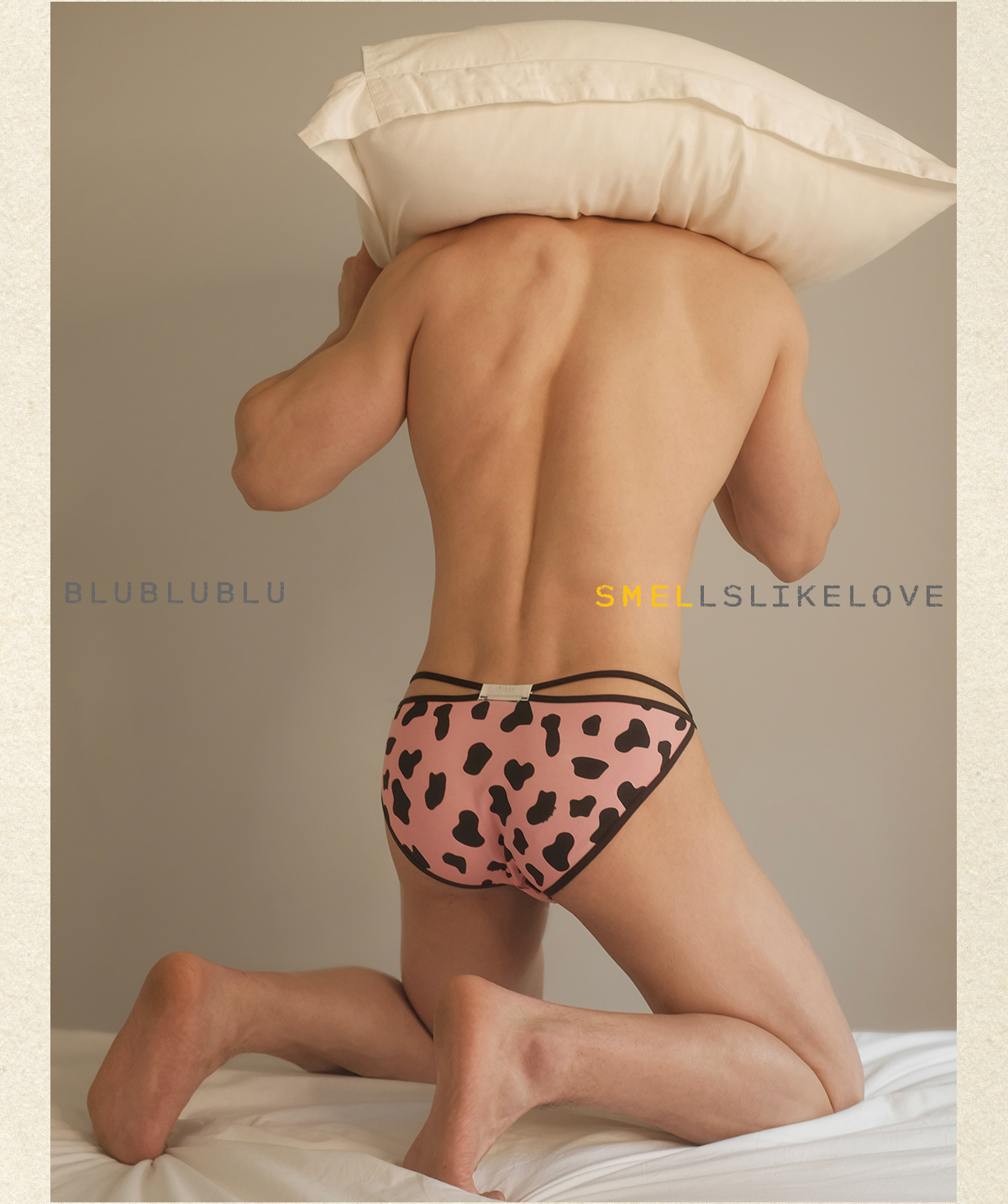 Blublublu Pink Cow Couple Sexy Underwear Men's Low-Waist High-Cut Triangle Design Thong Men's Underwear