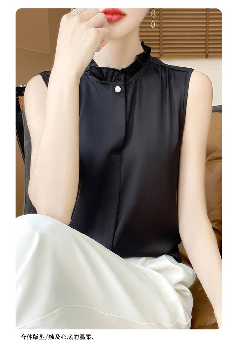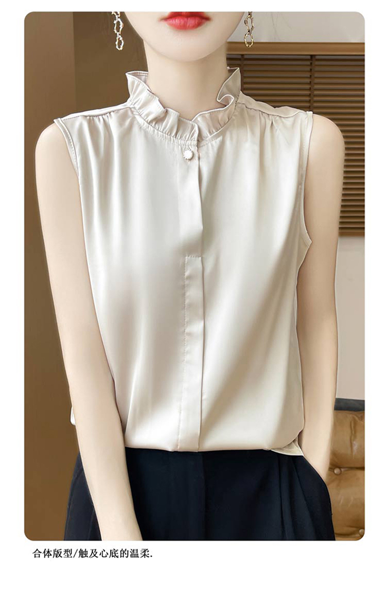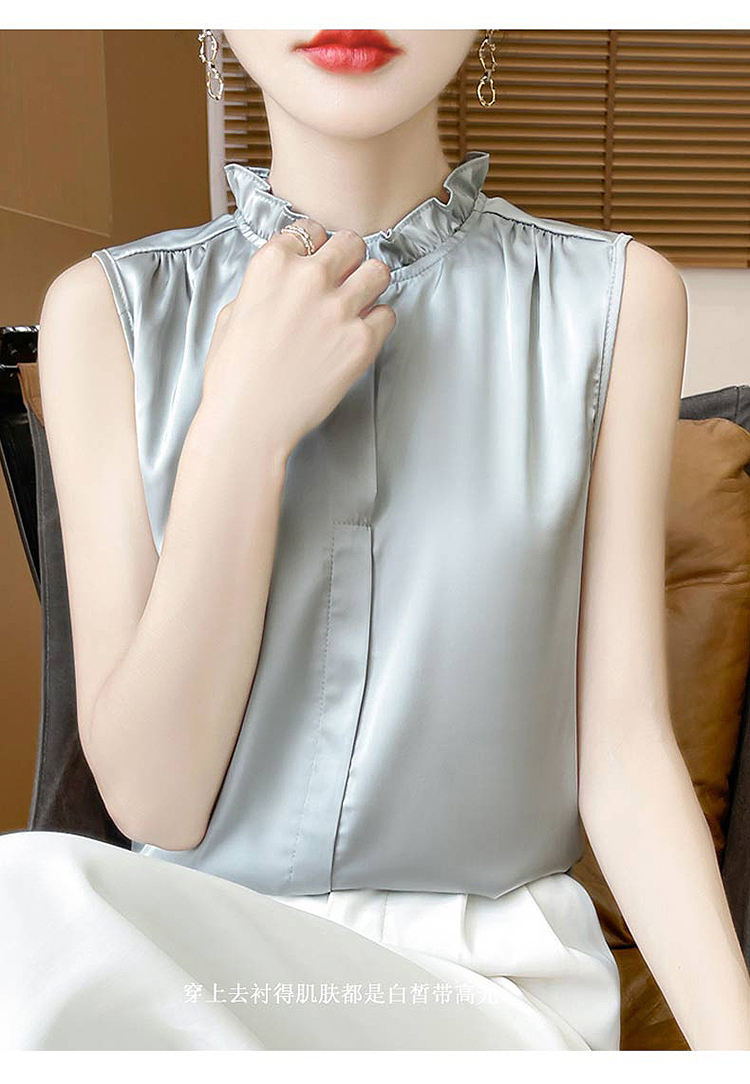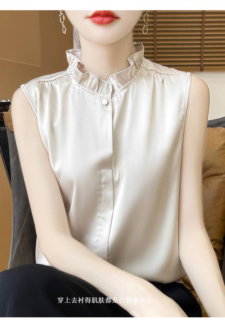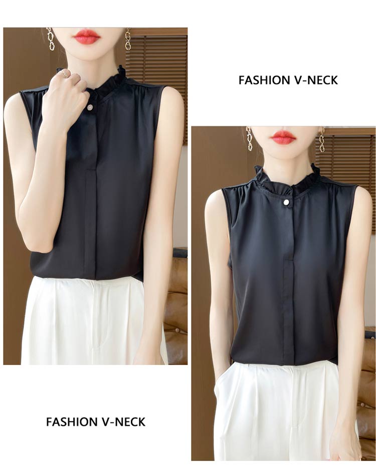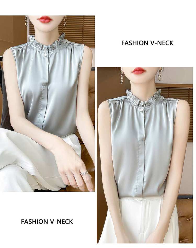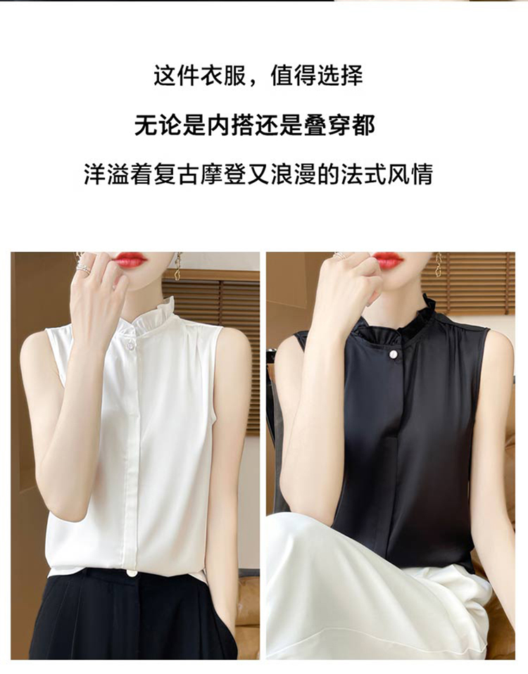 French-Style Ruffled Collar Sleeveless Shirt for Women, 2025 Model, Silk Satin Lace Ruffle Collar Base Layer Tank Top Inner Wear